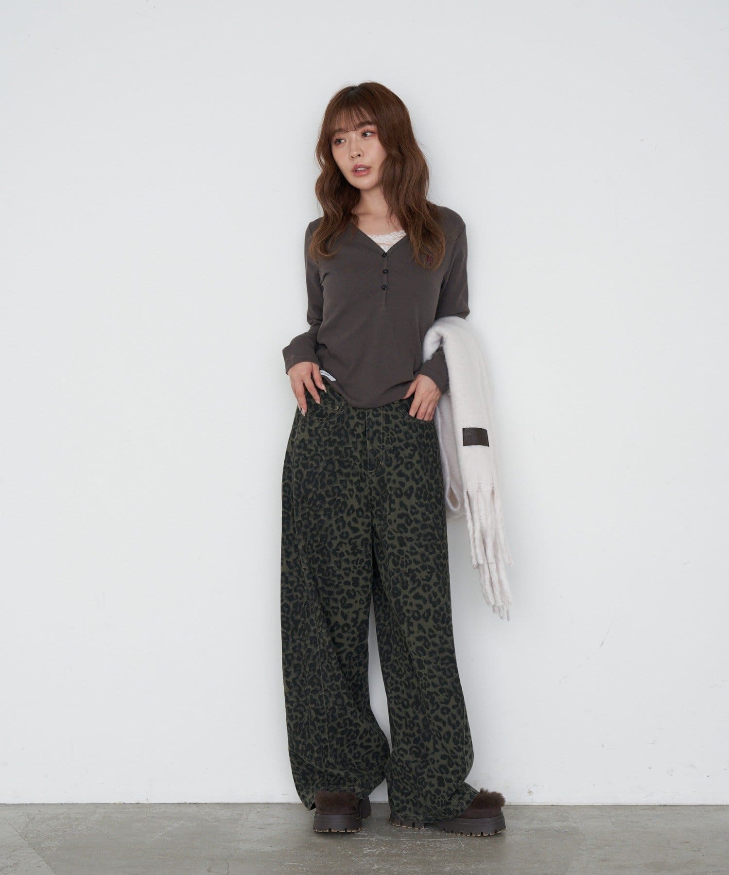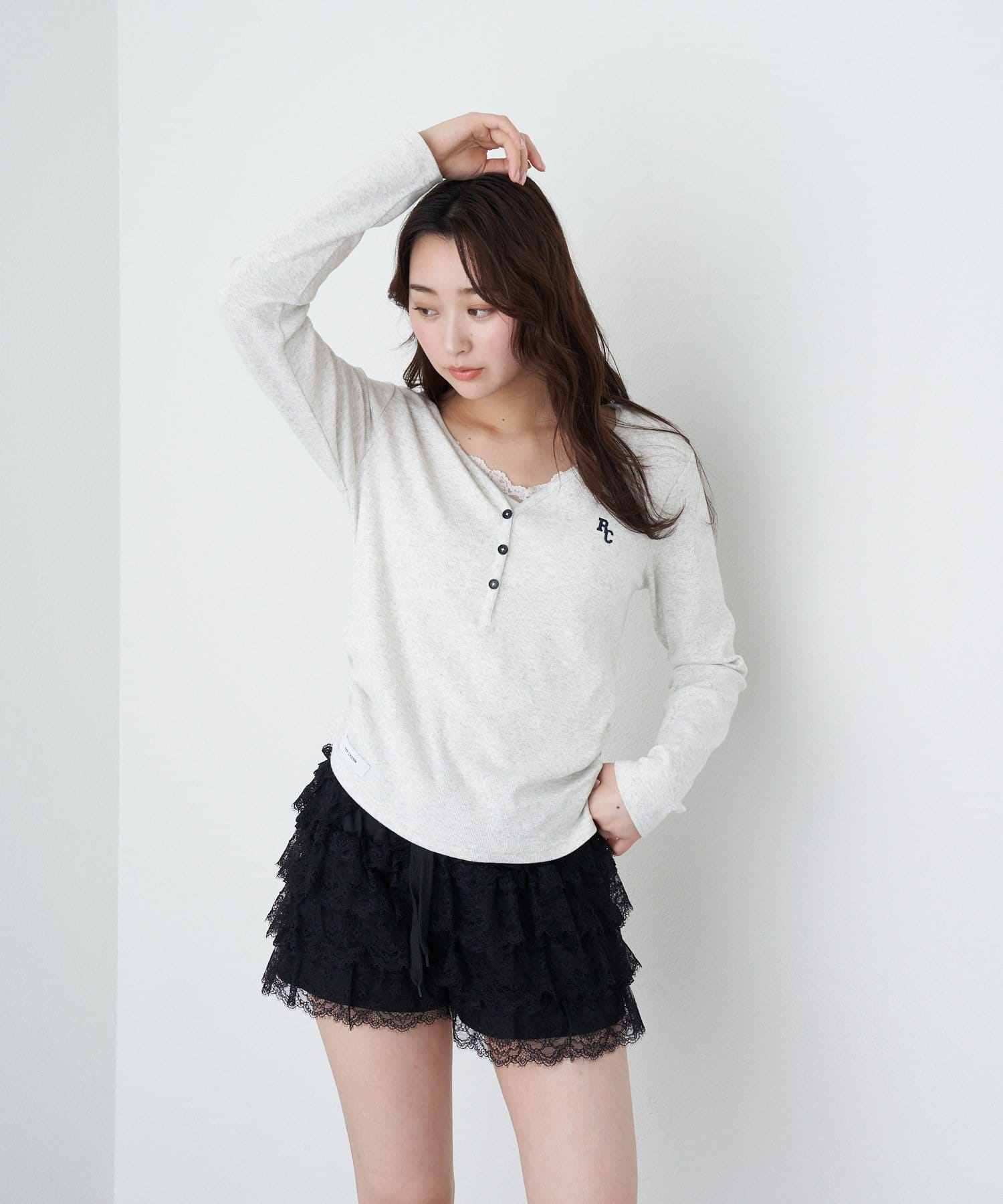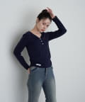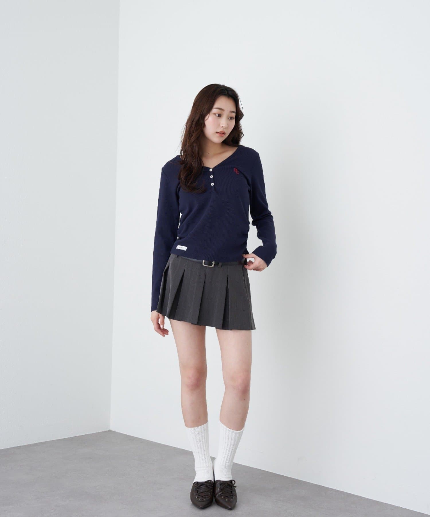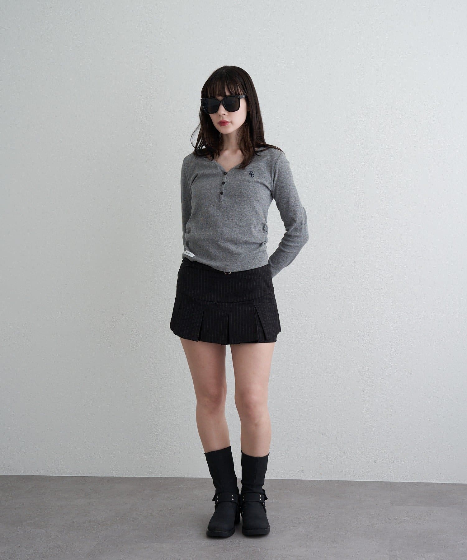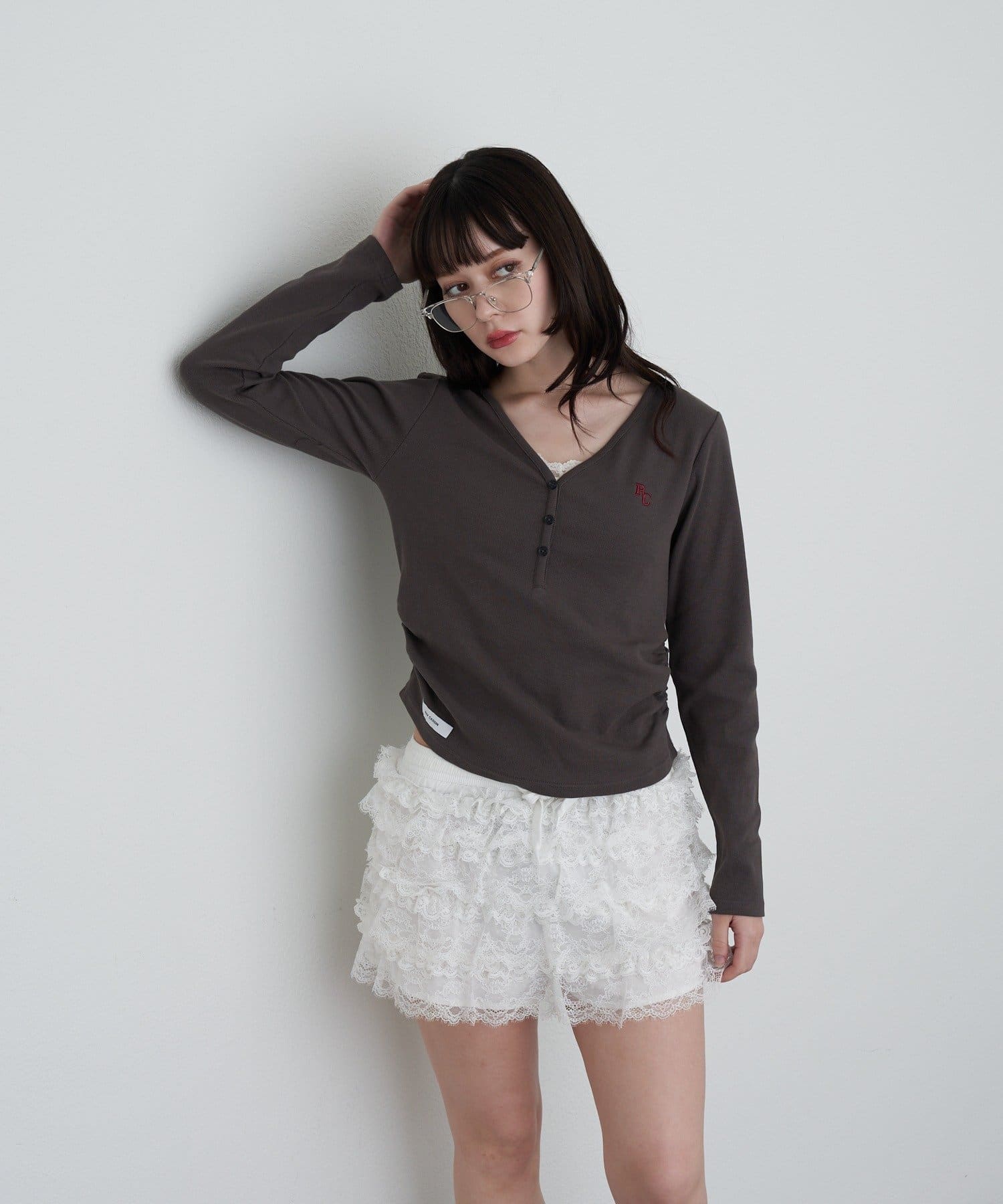 海外ファッション / ヘンリーネック / ロンT / 刺繍デザイン