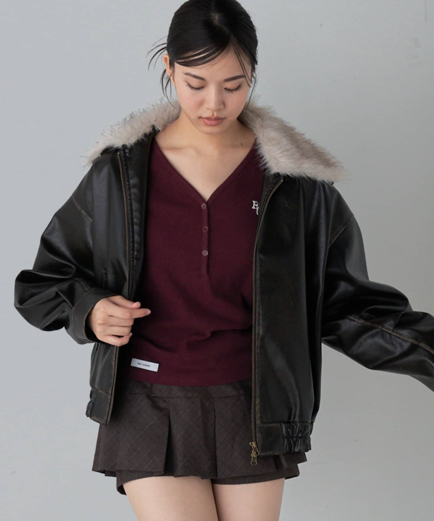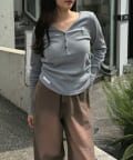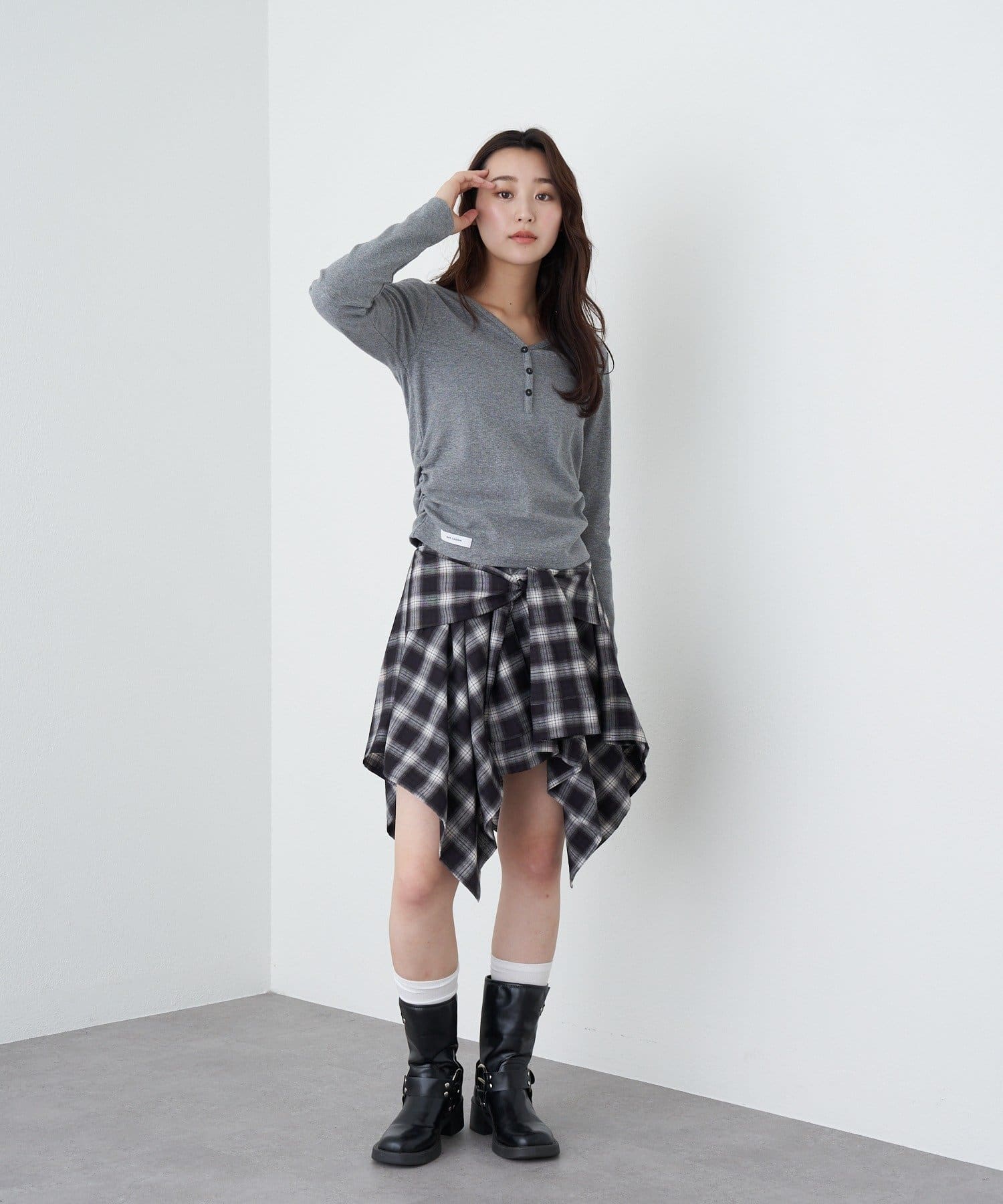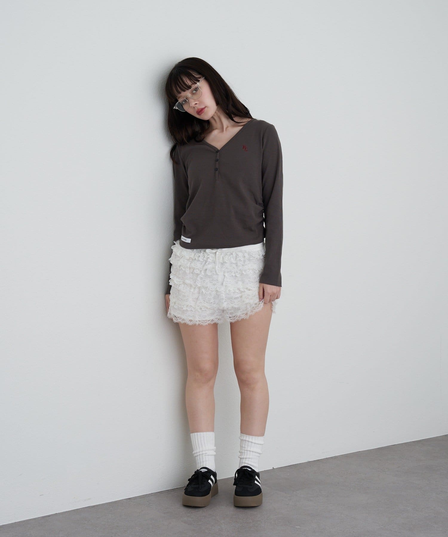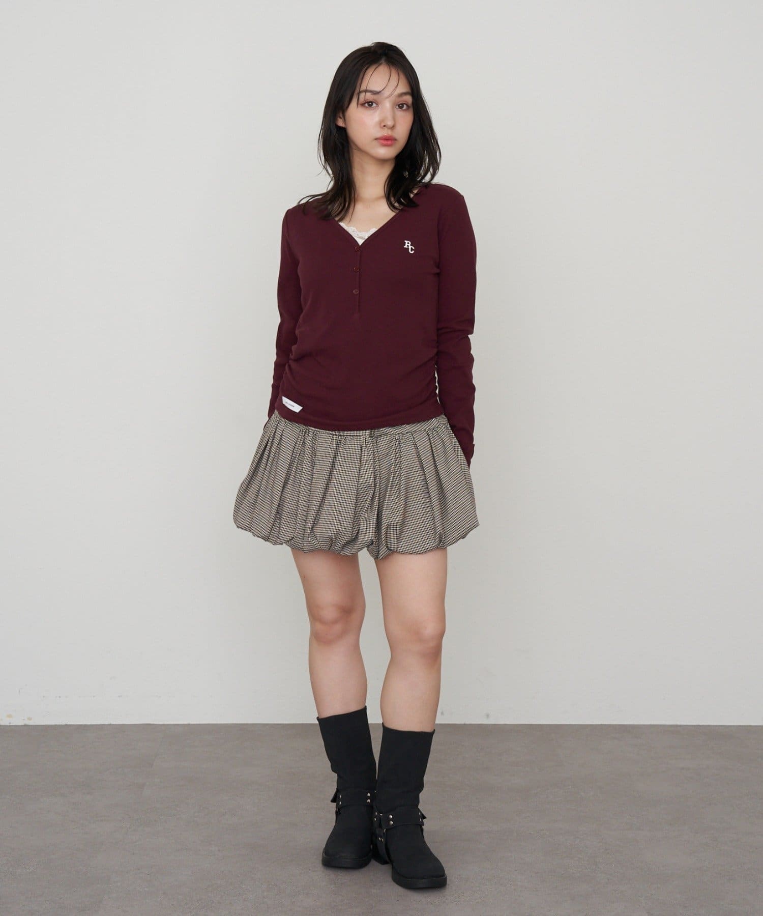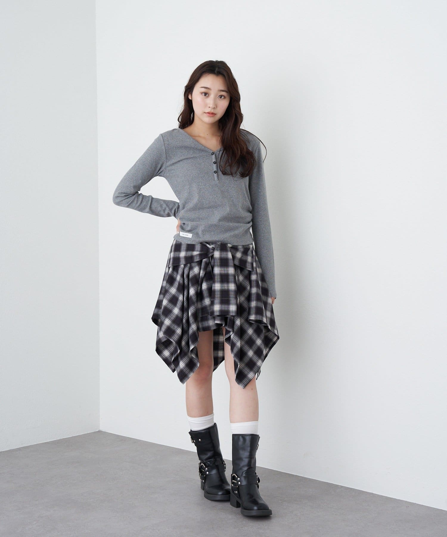 海外ファッション / ヘンリーネック / ロンT / 刺繍デザイン