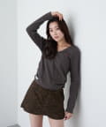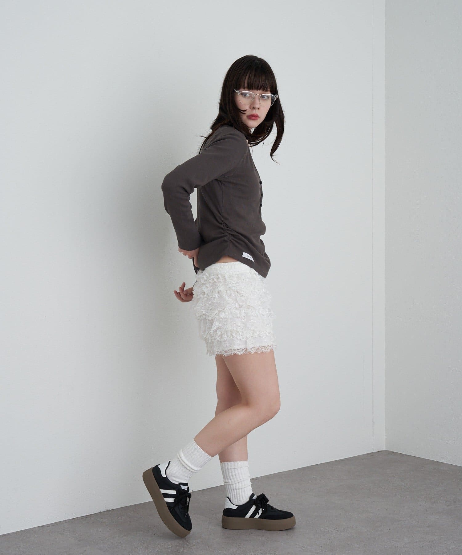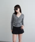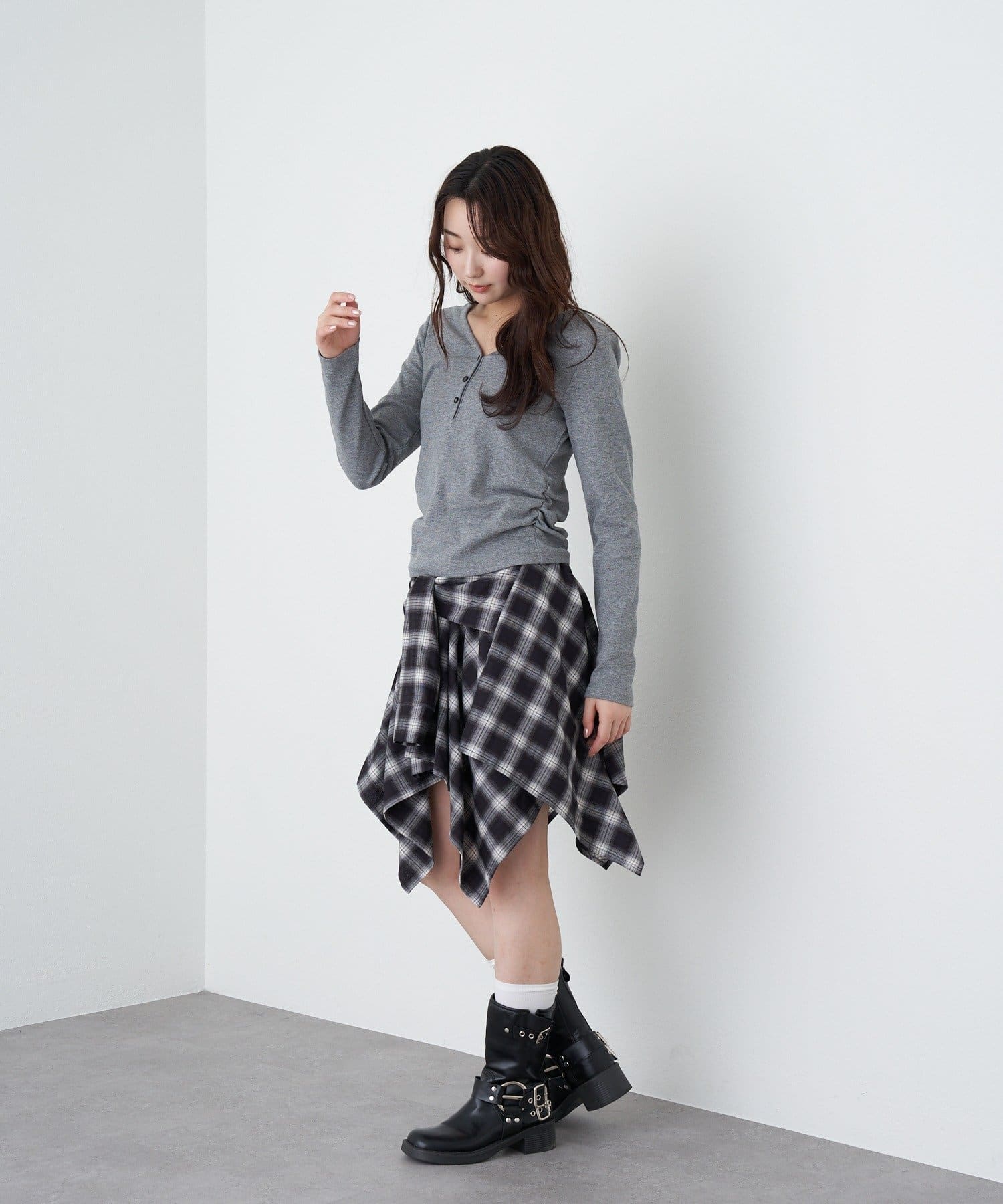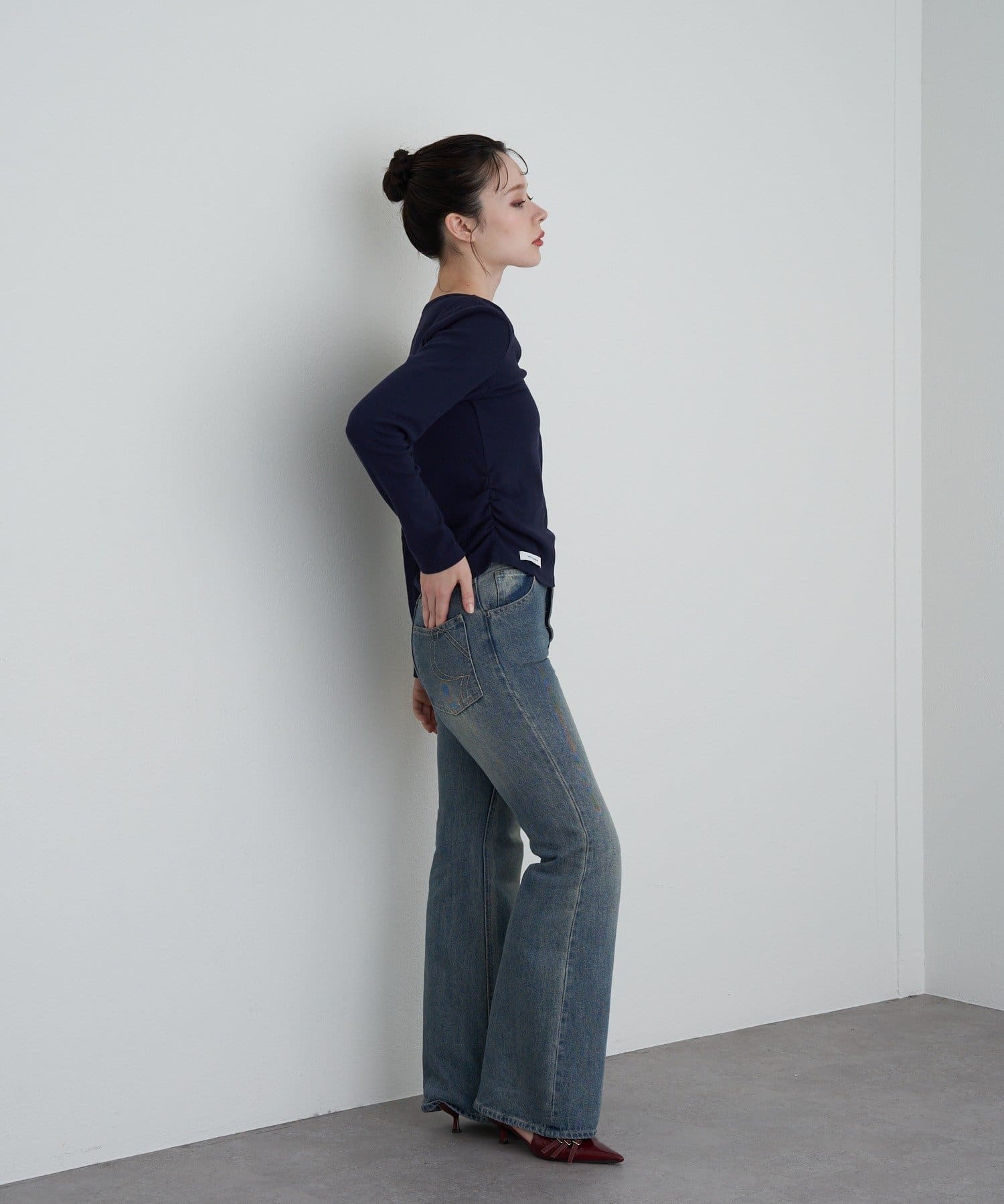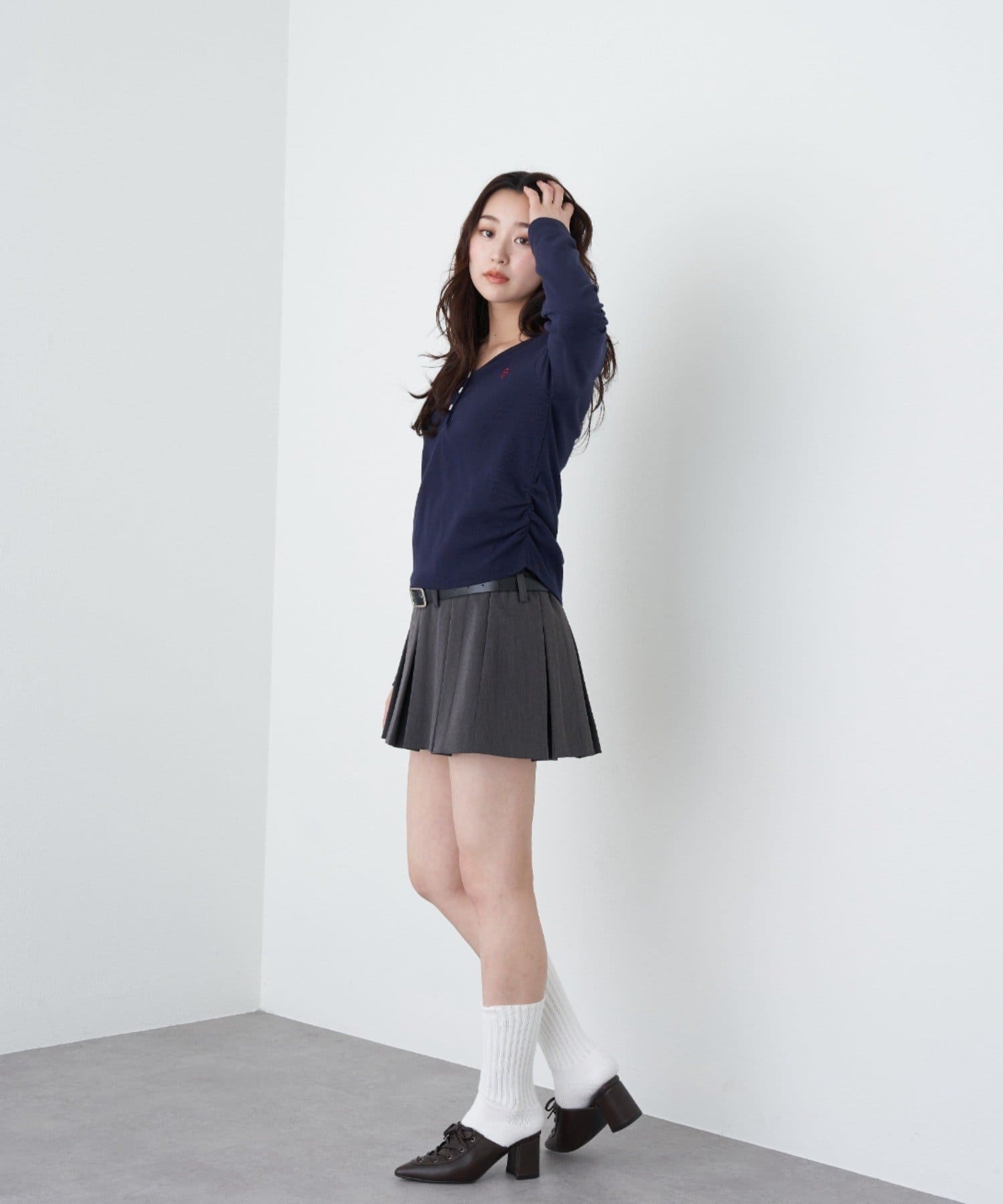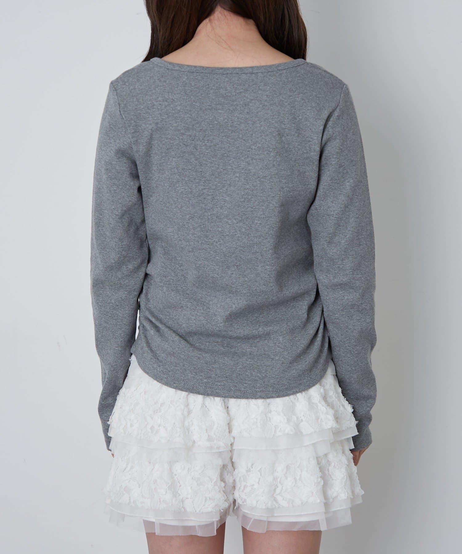首元の空いたデザインと、サイドにあるギャザーが骨スト細見えポイント◎