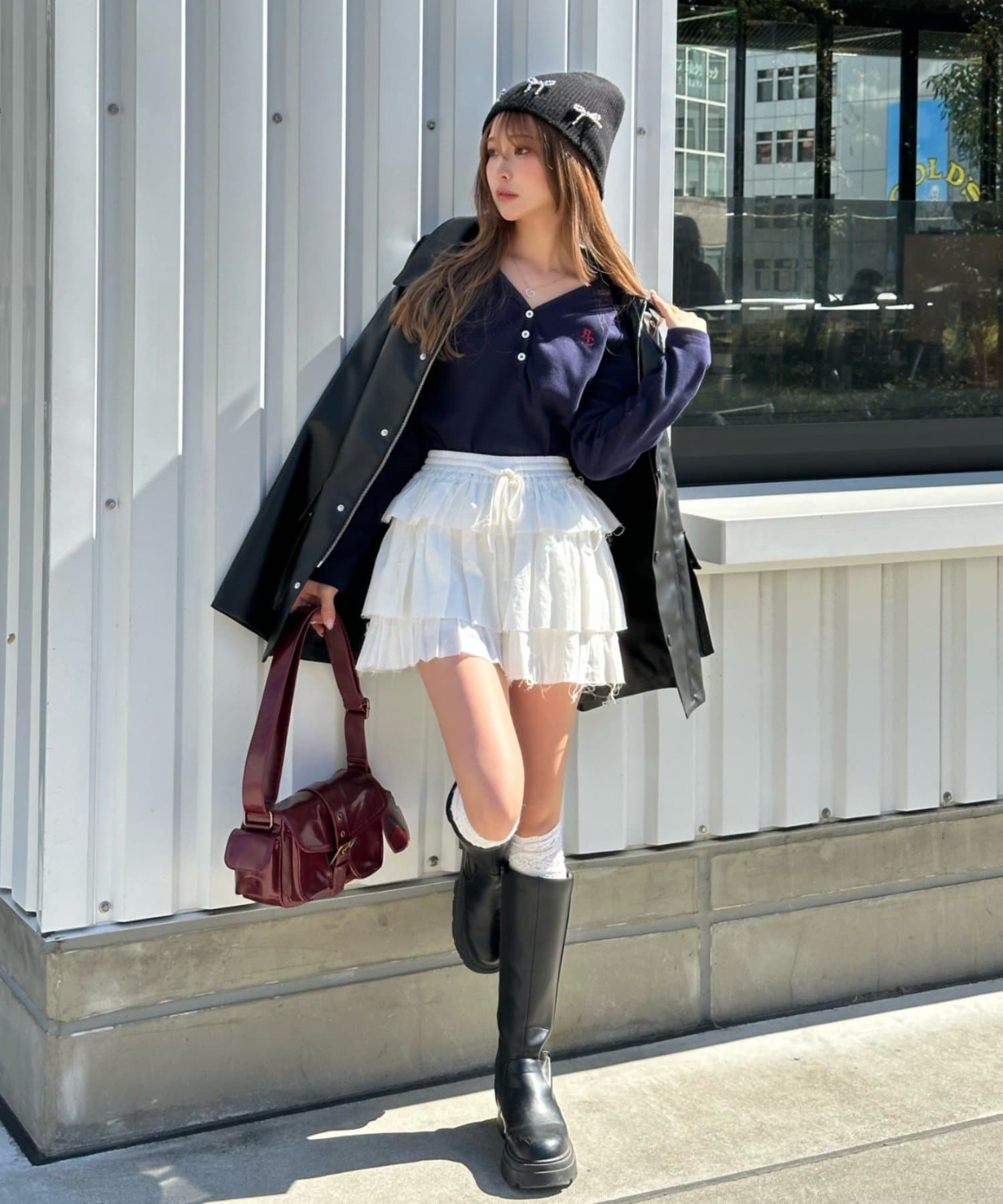 ・フェミニン : ミニボトム×ブーツの王道スタイリングも◎