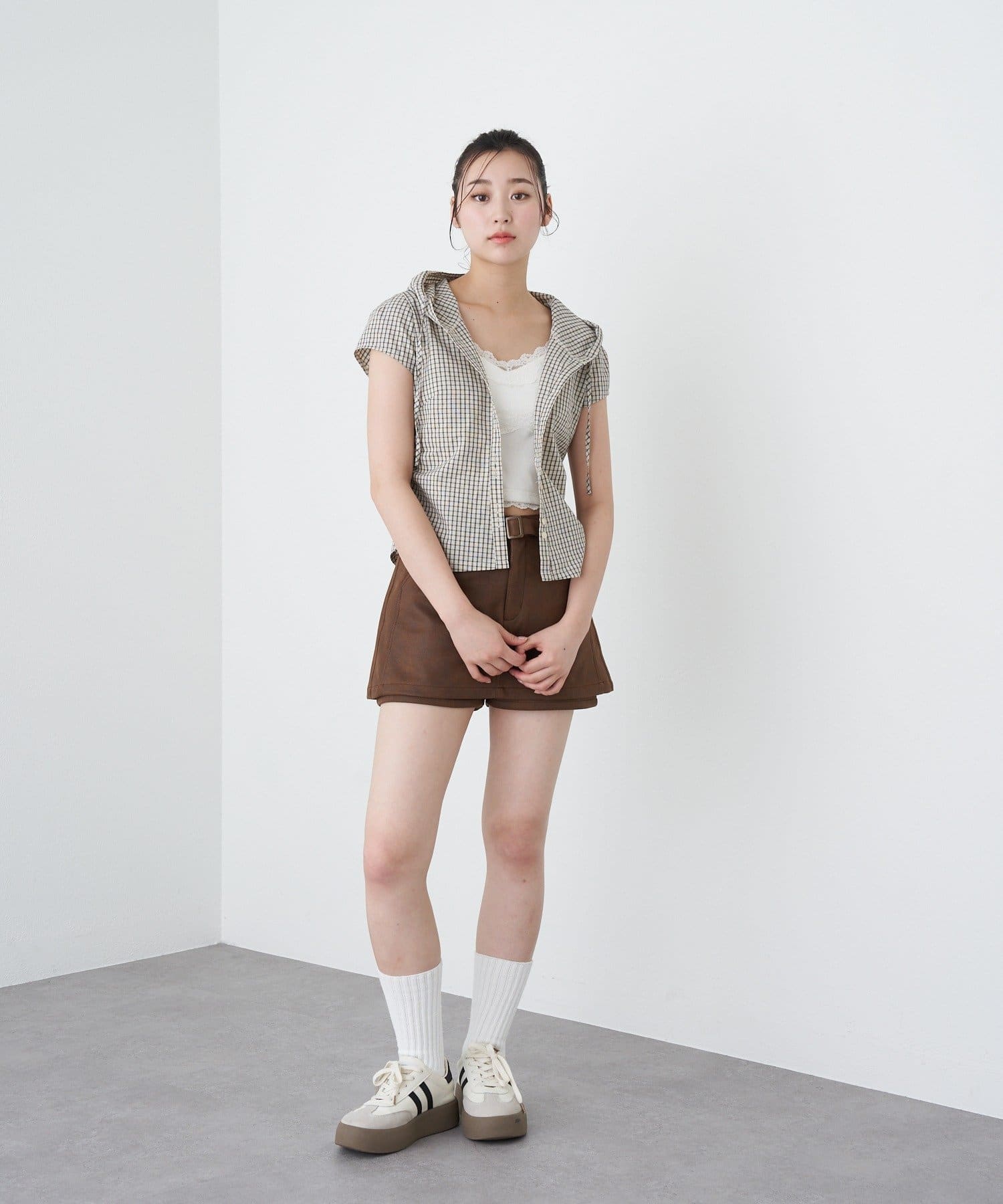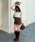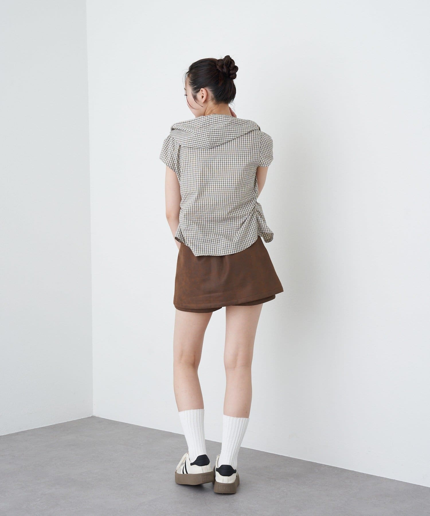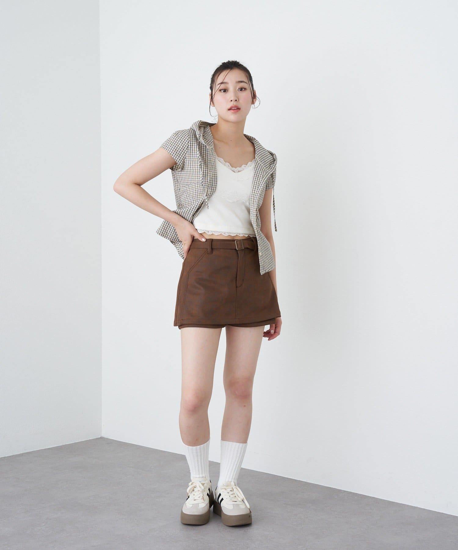 ・ショートパンツとミニスカートのレイヤード風のシルエットがお尻周りをしっかりカバー◎ (ショートパンツは取り外し不可)