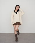 シャギーフード半袖ニットプルオーバー