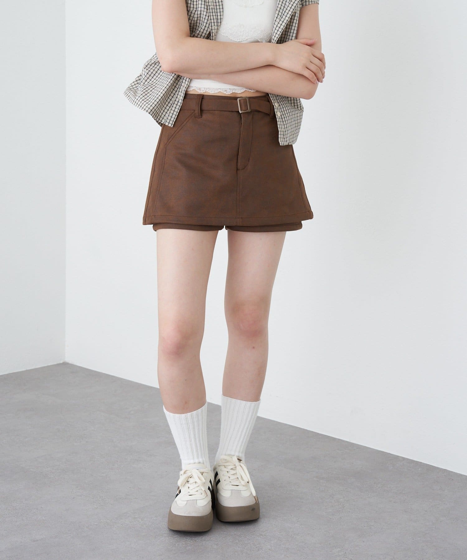 ベルト付スエードマイクロミニスカパン