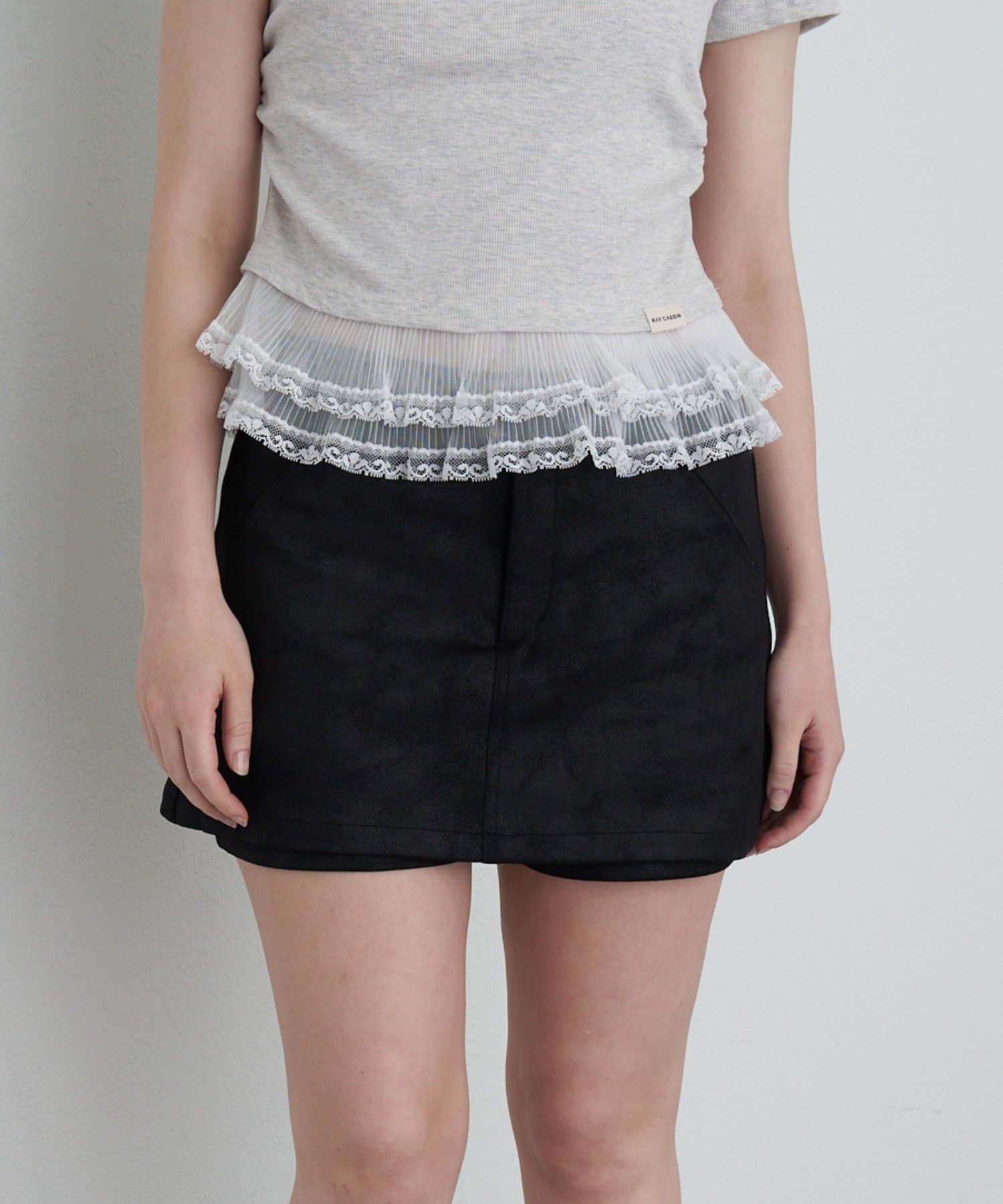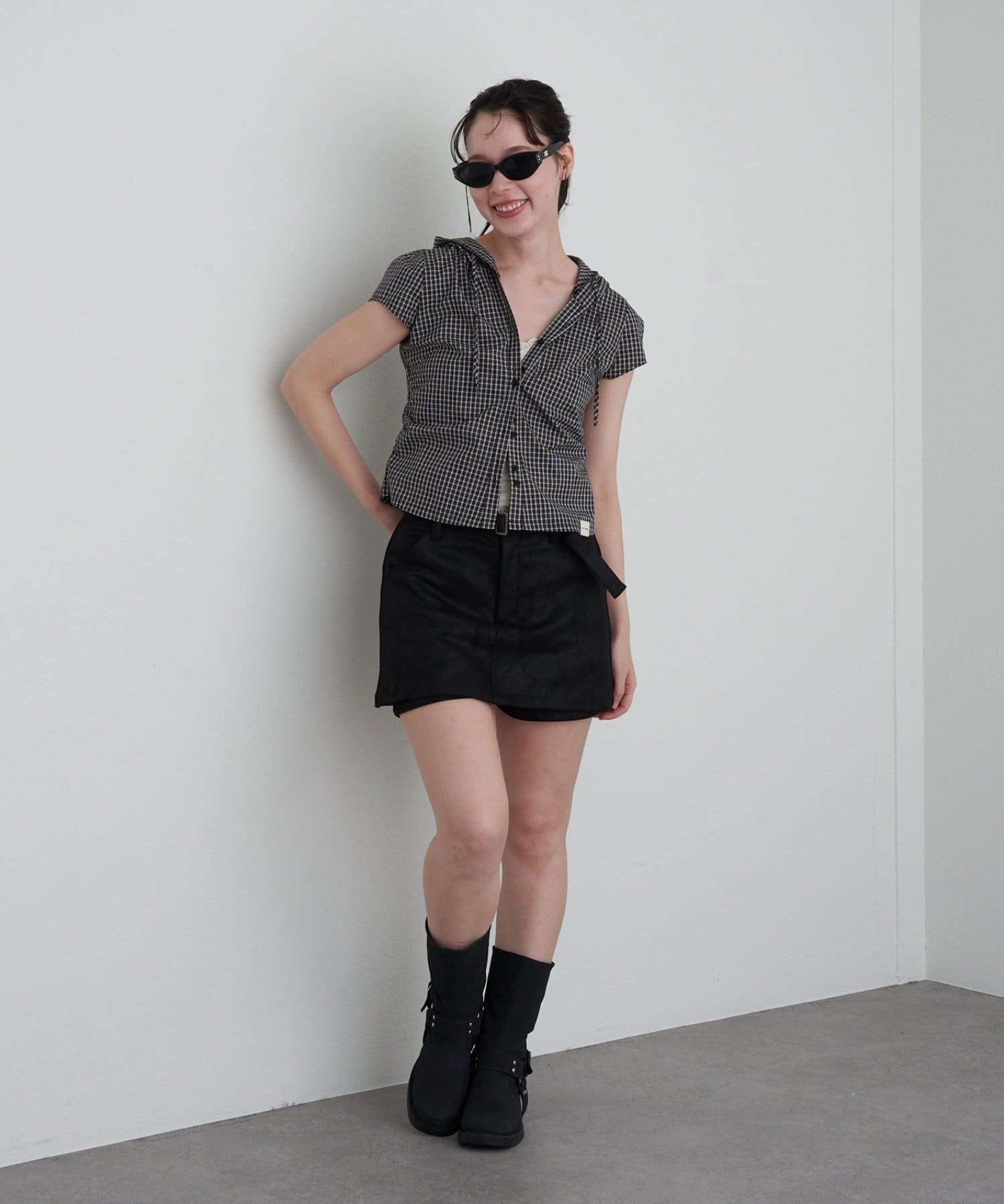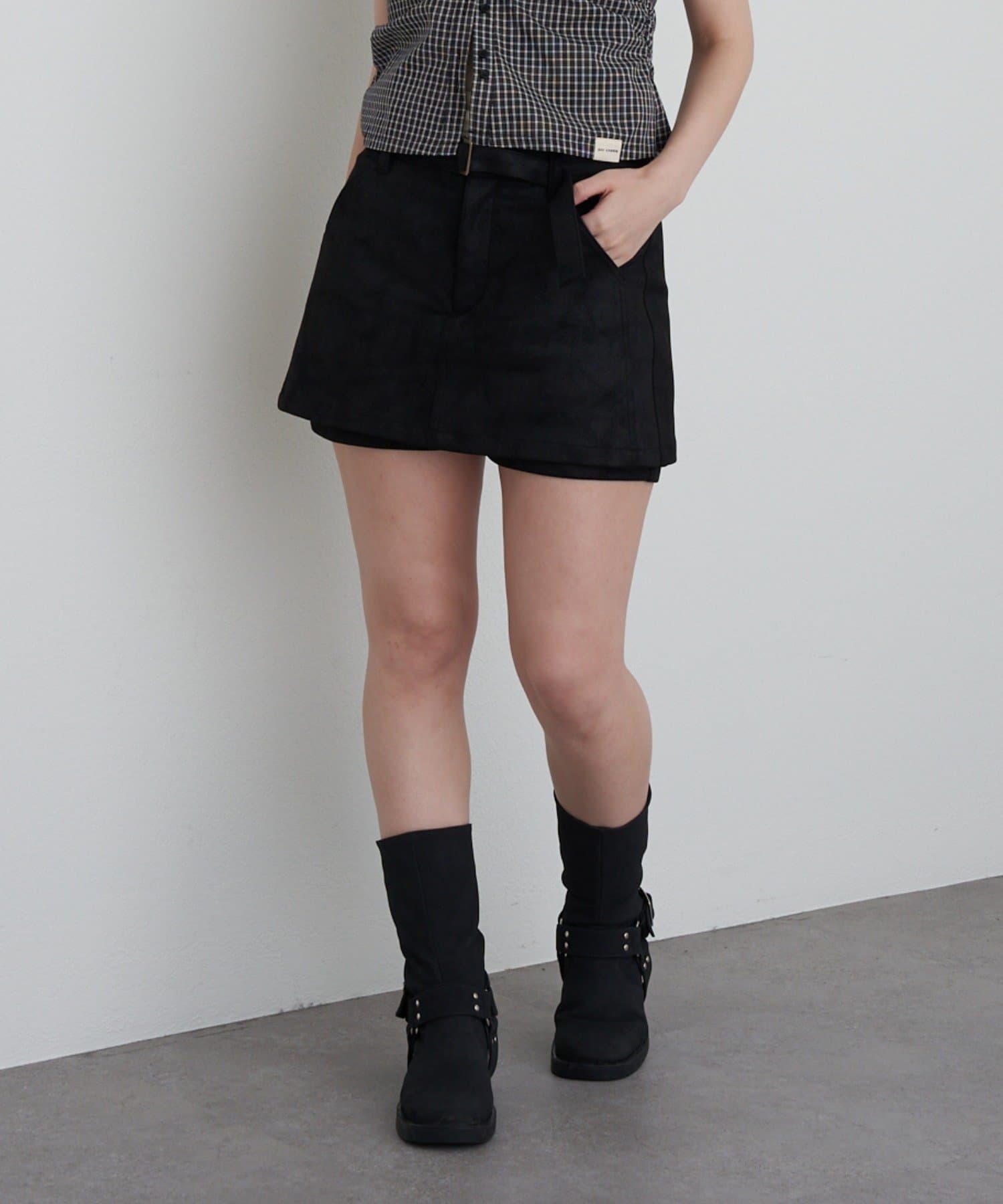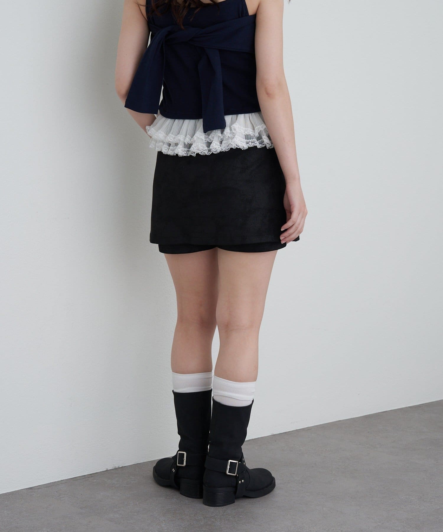 ・ショートパンツとミニスカートのレイヤード風のシルエットがお尻周りをしっかりカバー◎ (ショートパンツは取り外し不可)