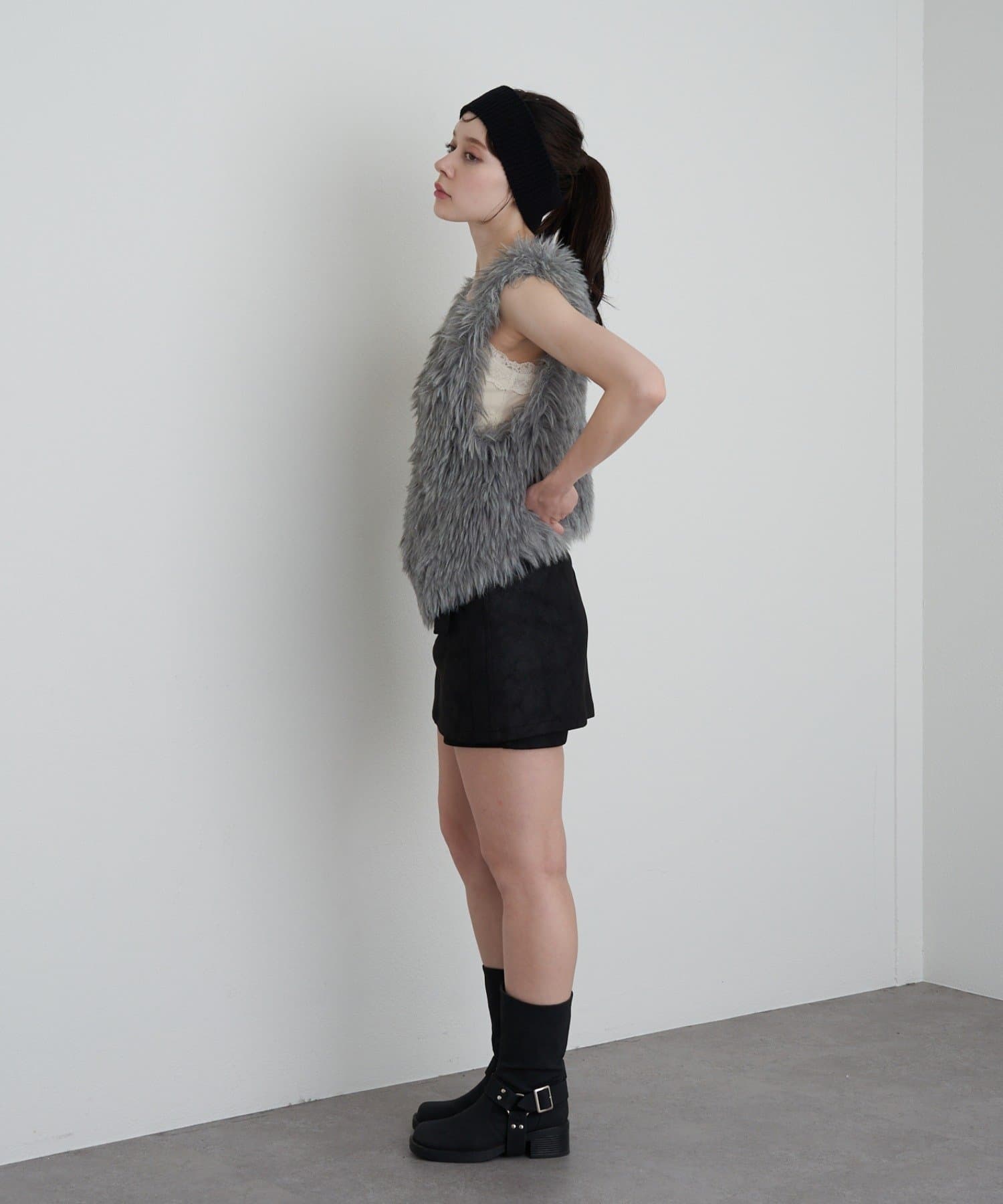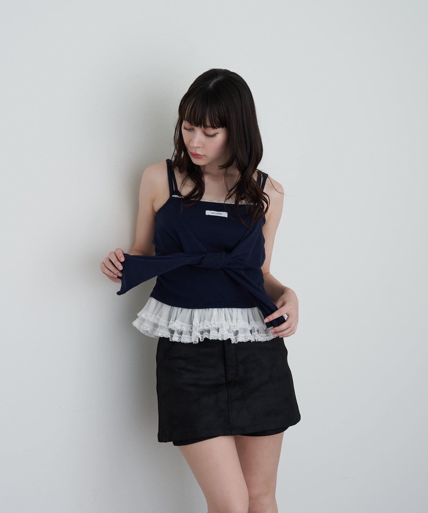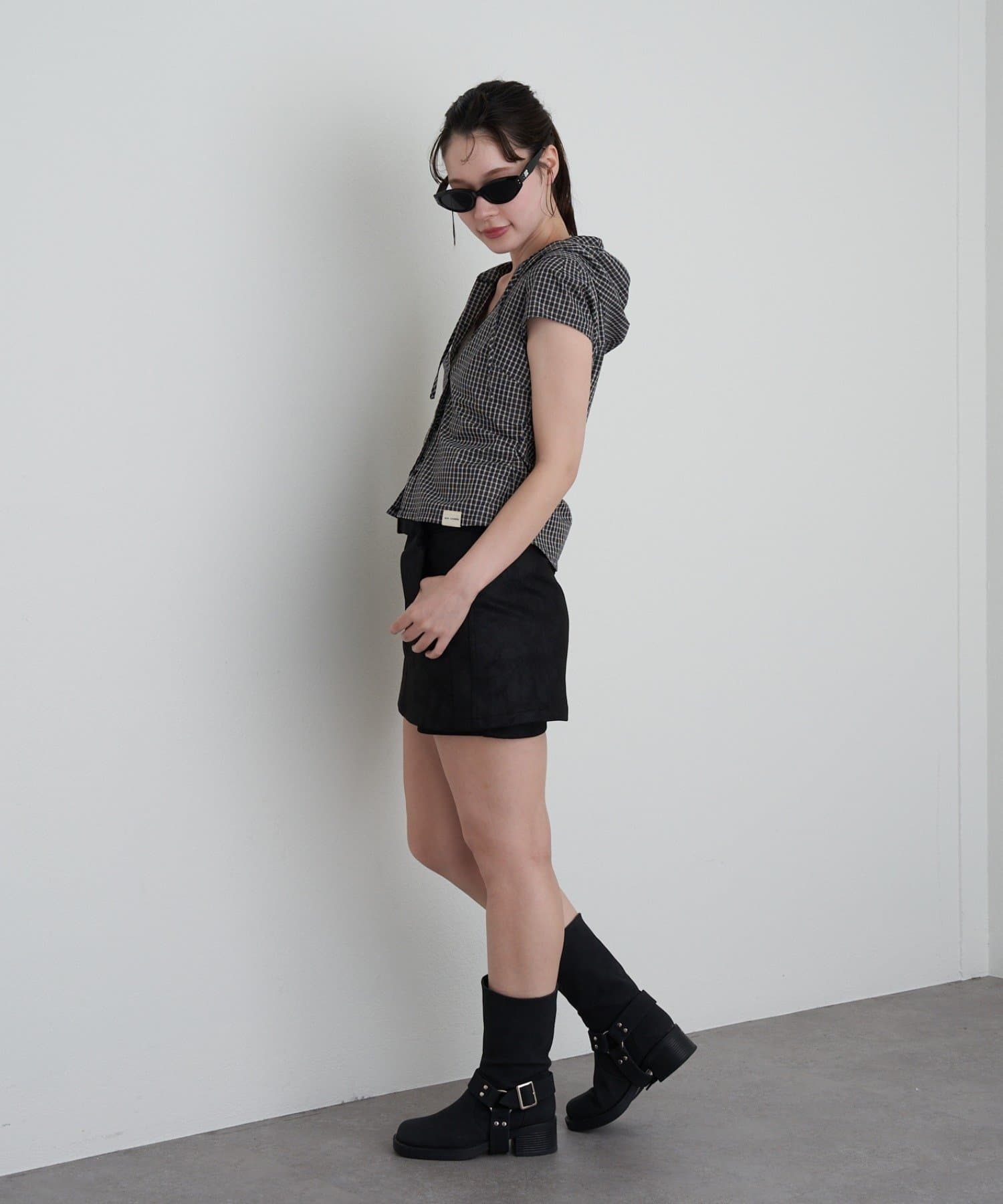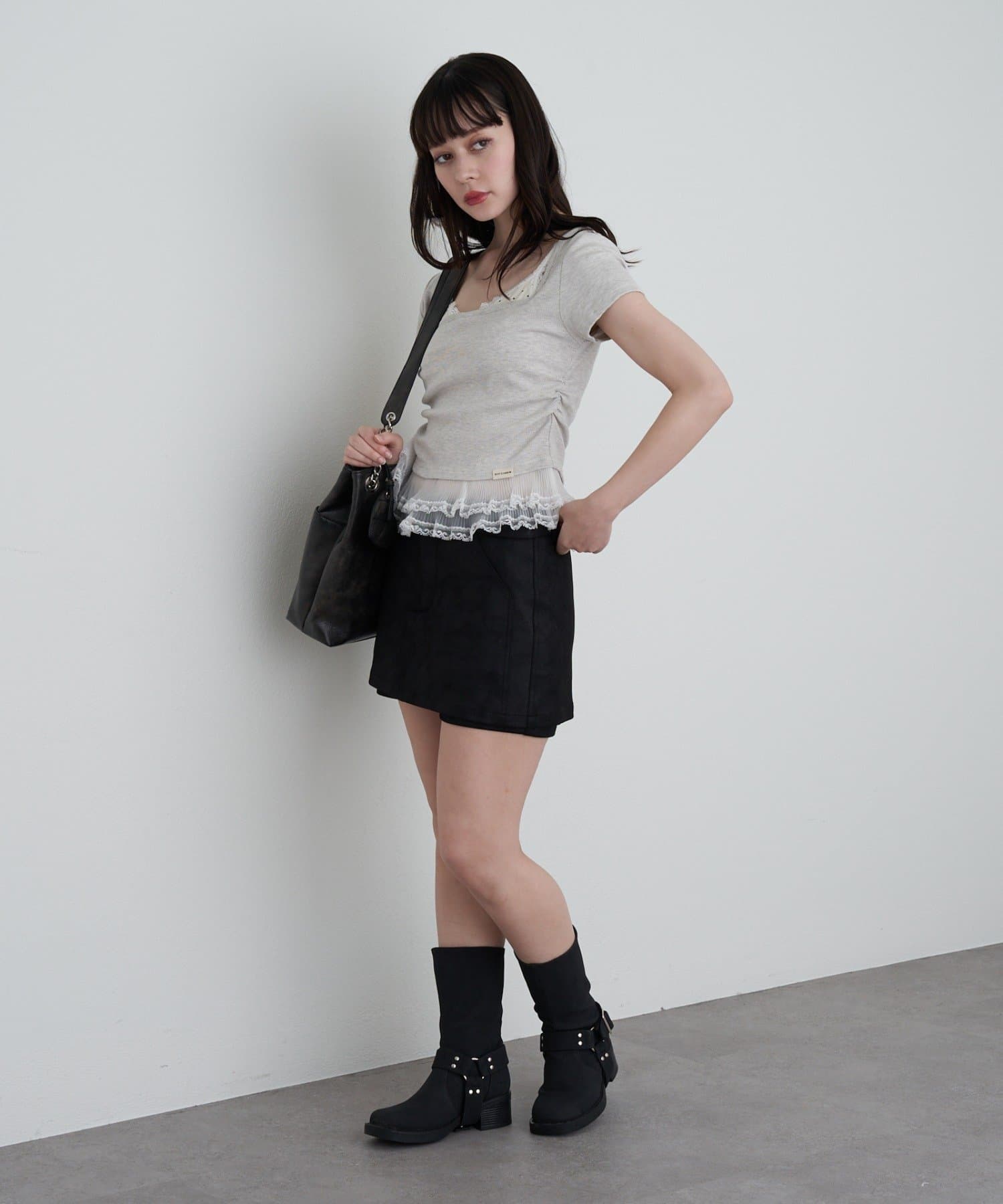 ・ショートパンツとミニスカートのレイヤード風のシルエットがお尻周りをしっかりカバー◎ (ショートパンツは取り外し不可)
