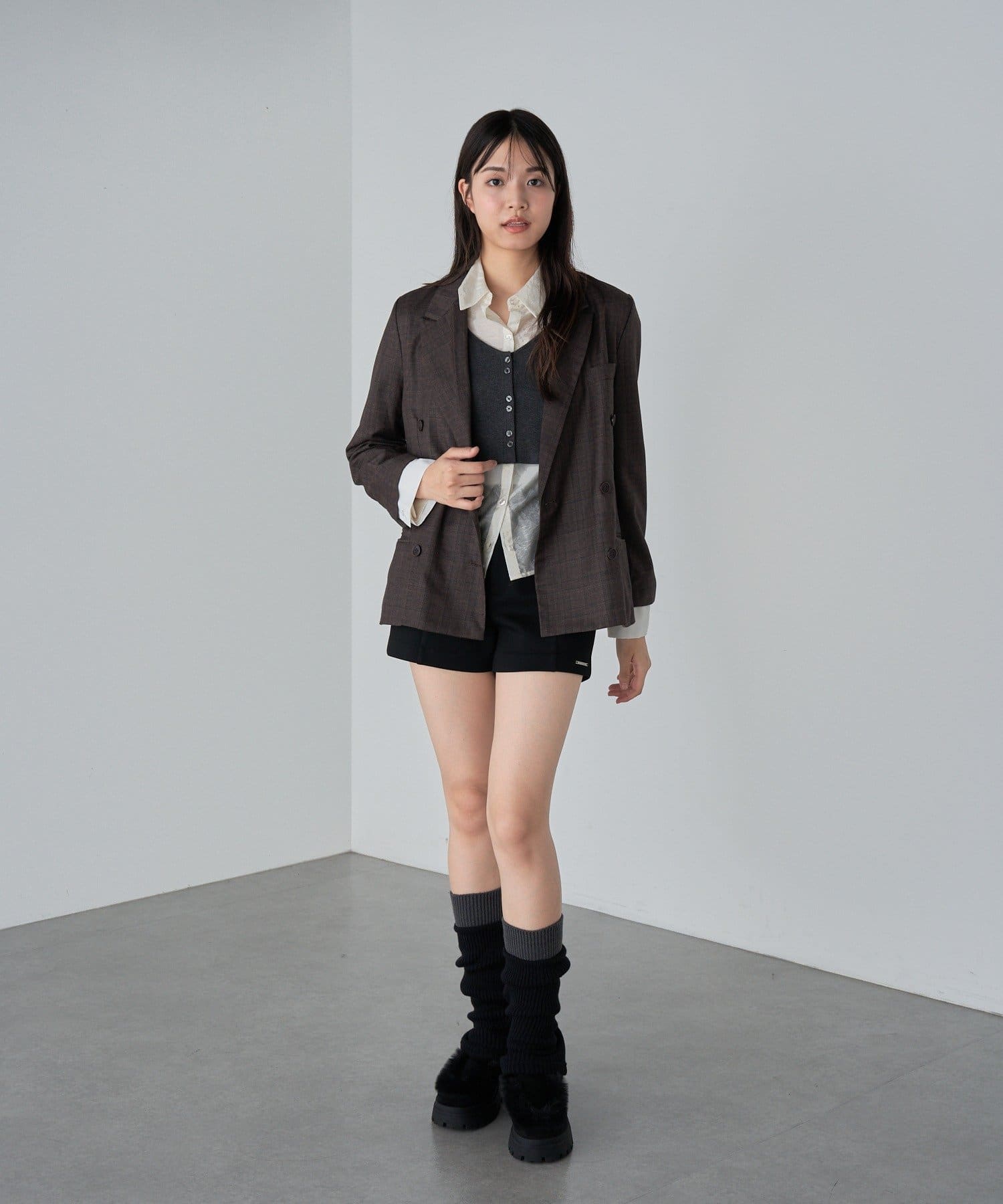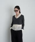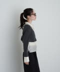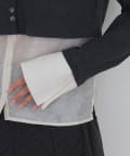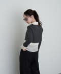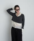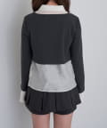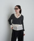 コンパクトなサイズ感で、シャツとレイヤードされているデザインのトップス