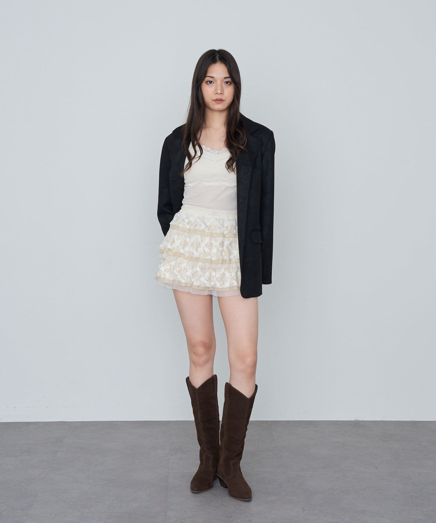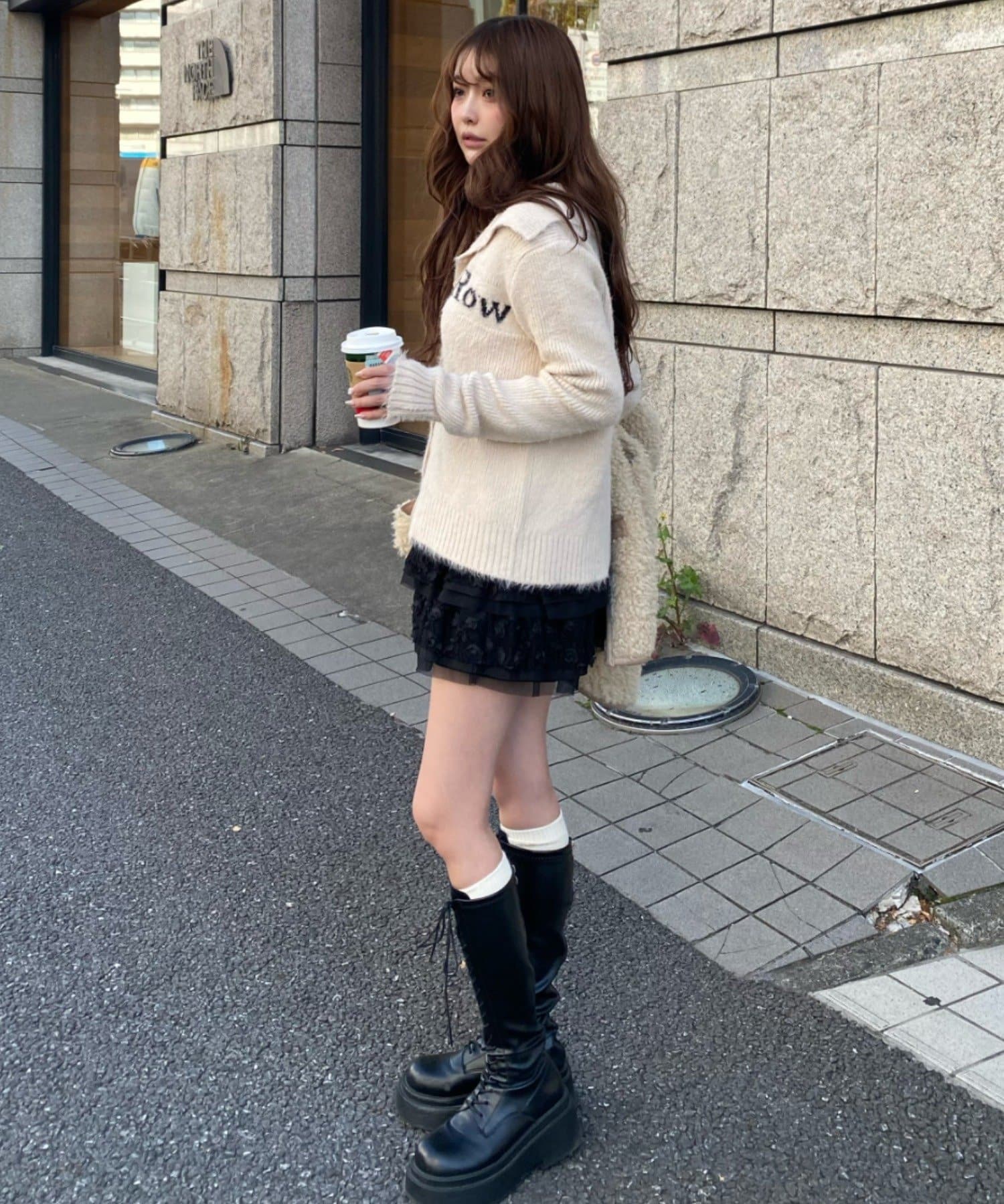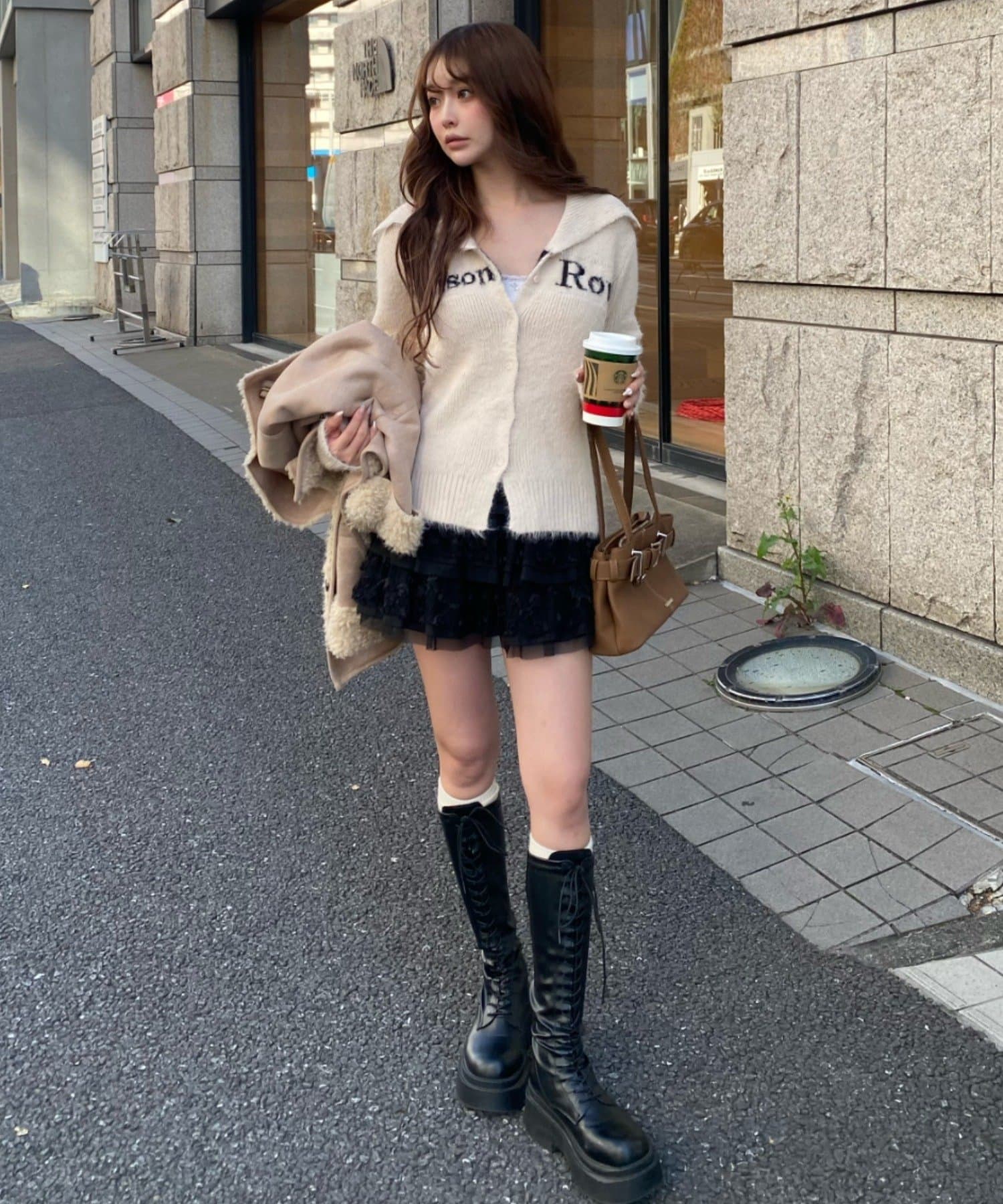 ・レザーアウターと合わせた“甘×辛”なスタイリングがオススメ