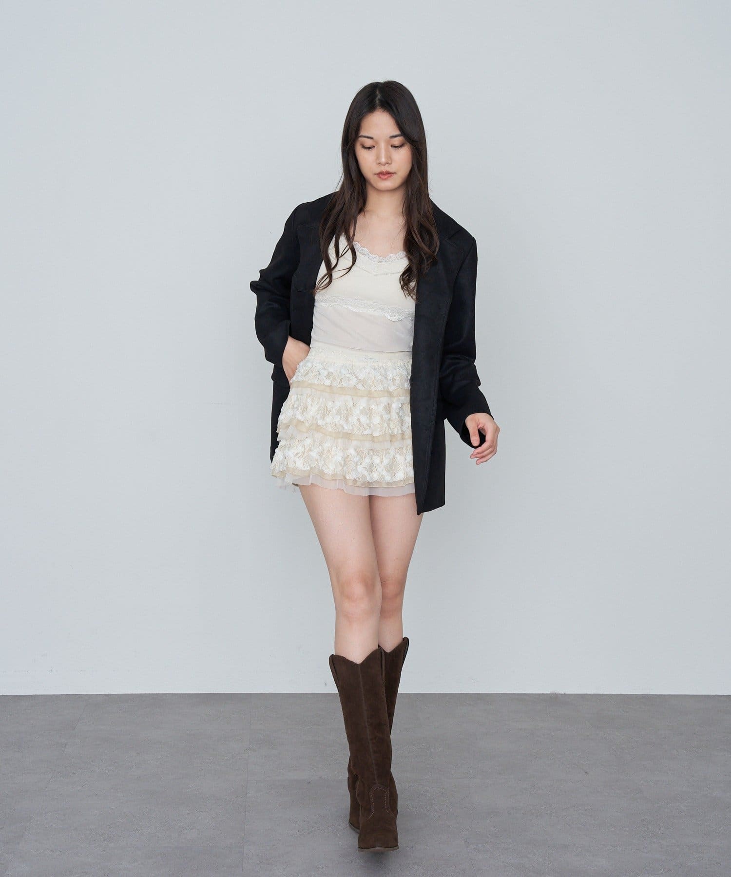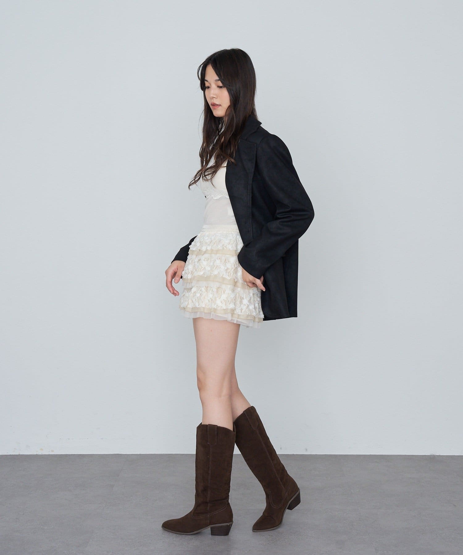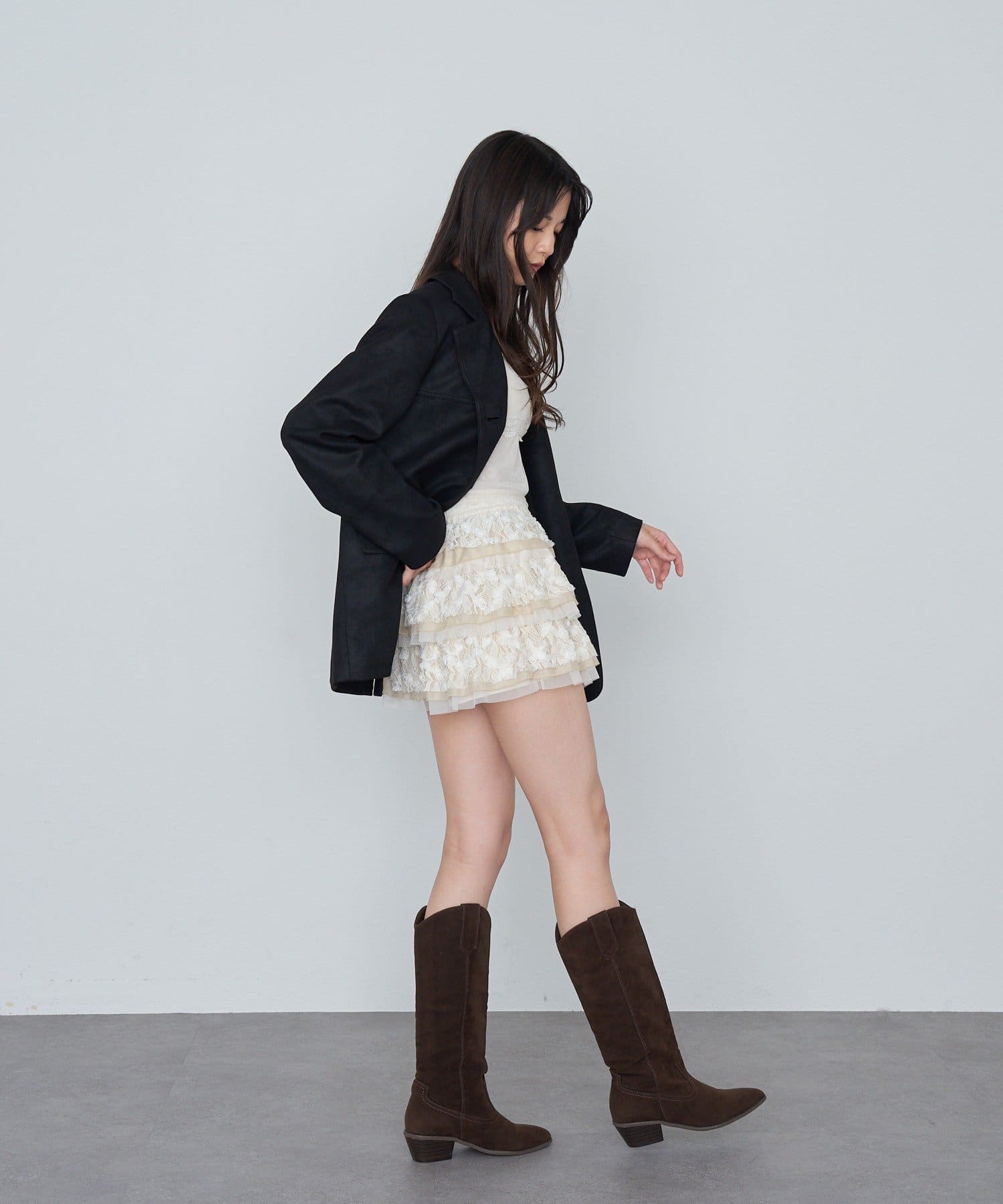・レザーアウターと合わせた“甘×辛”なスタイリングがオススメ