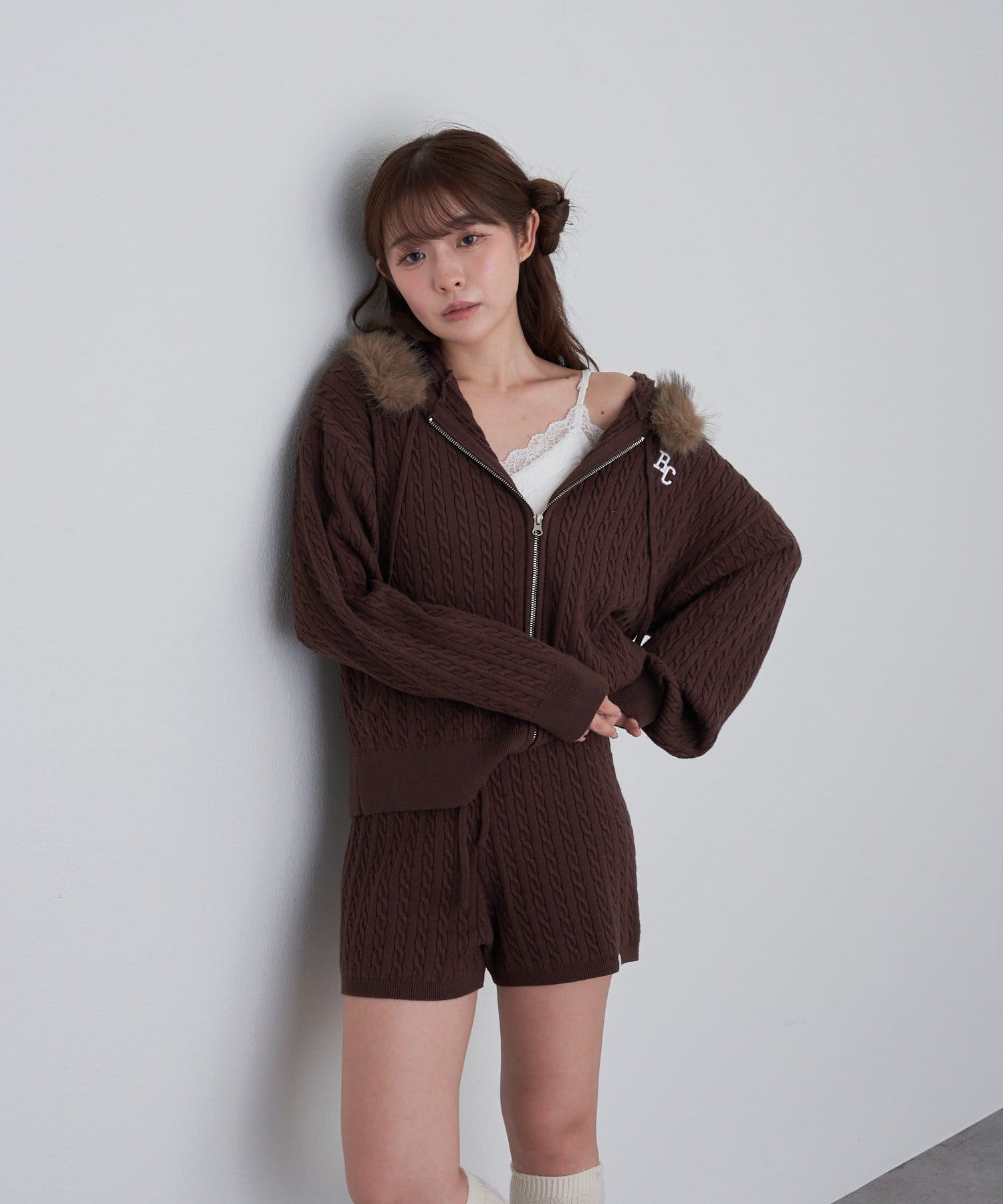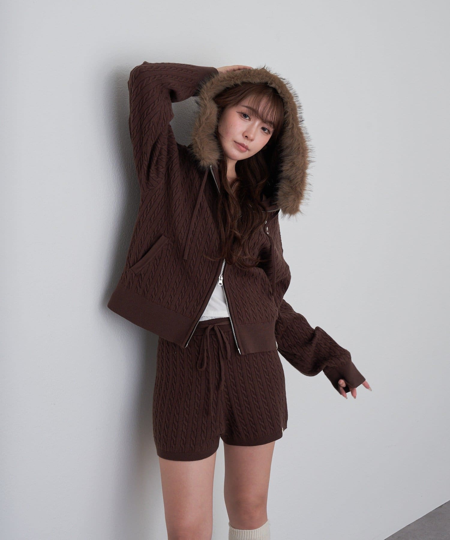 ・同素材のニットパーカーとセットアップで着用いただけます。