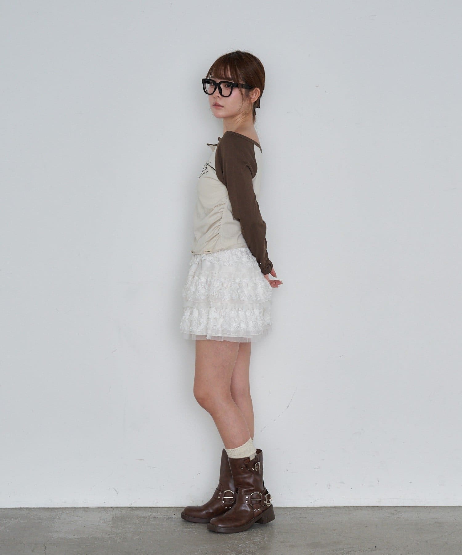 ・サイドのギャザーがウエストラインをキレイに見せてくれます。