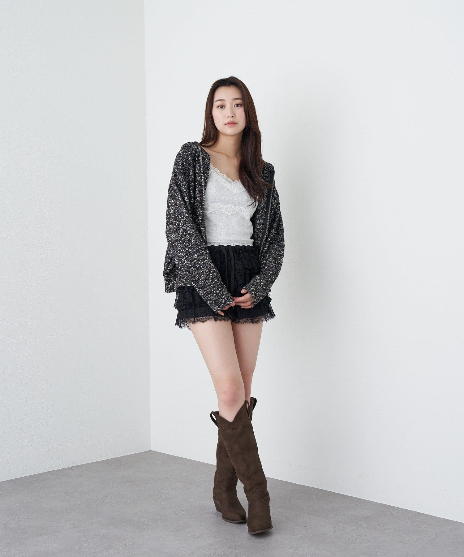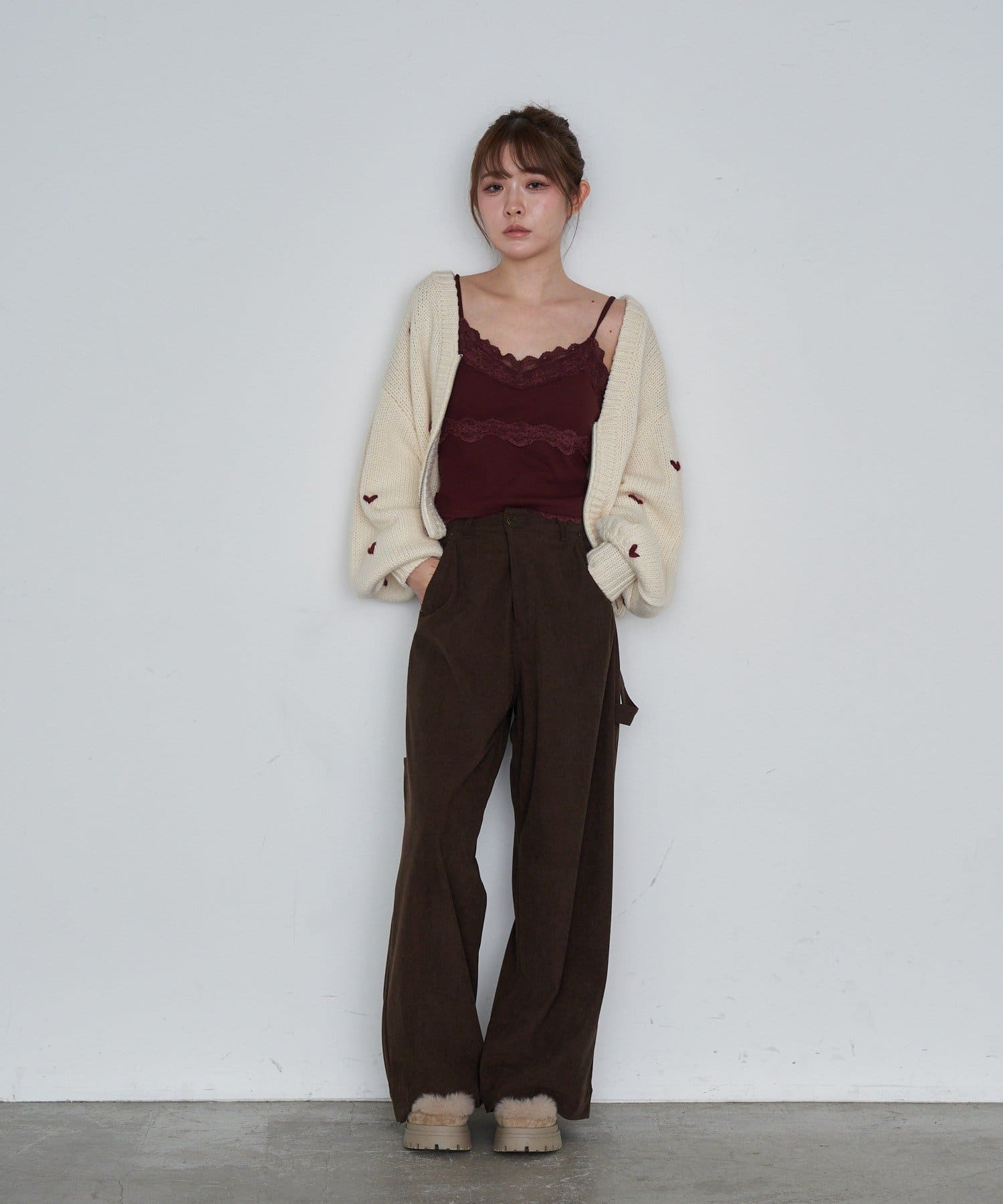 ・Vネックのニットやカーディガンと合わせてレースをチラ見せも◎