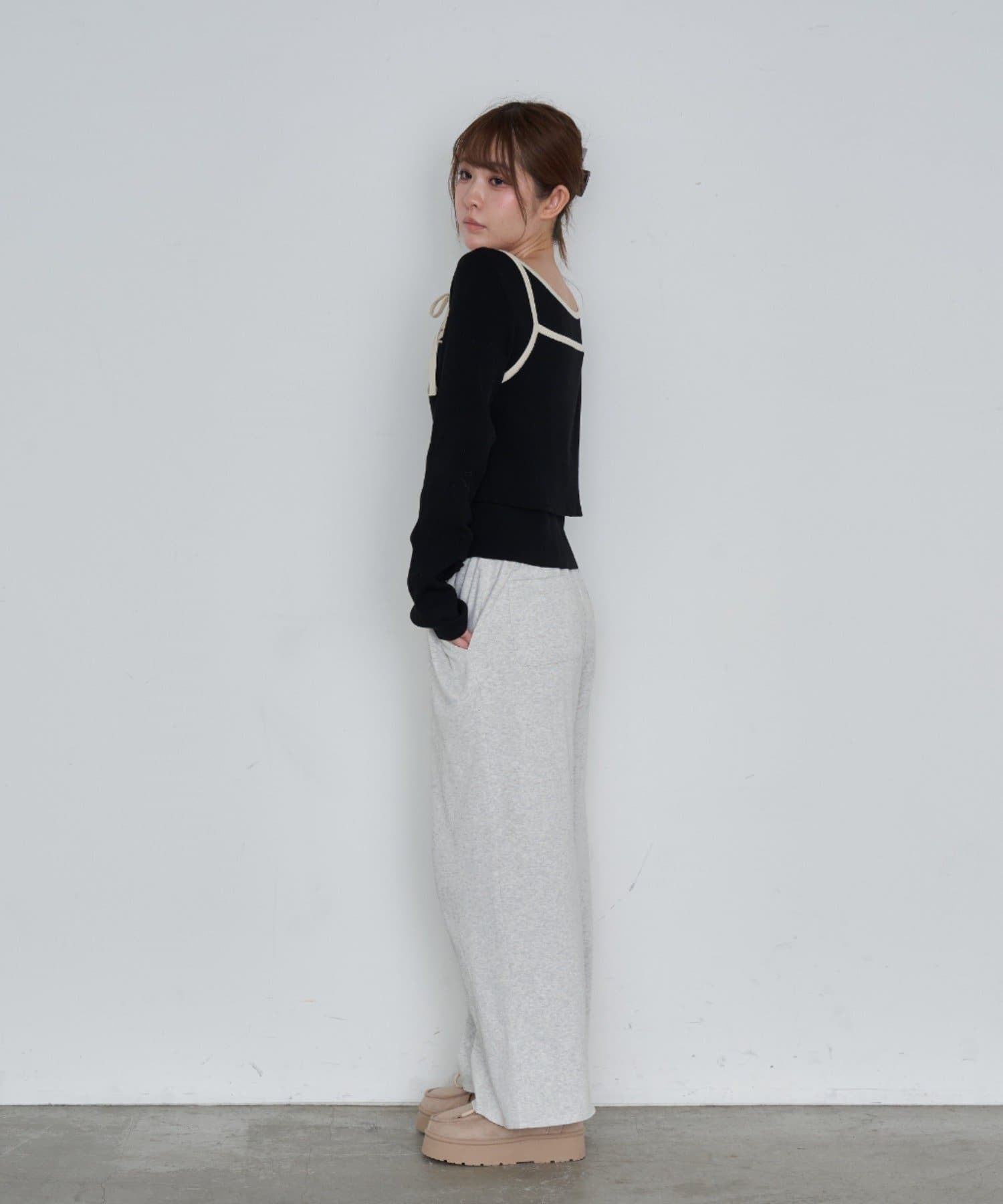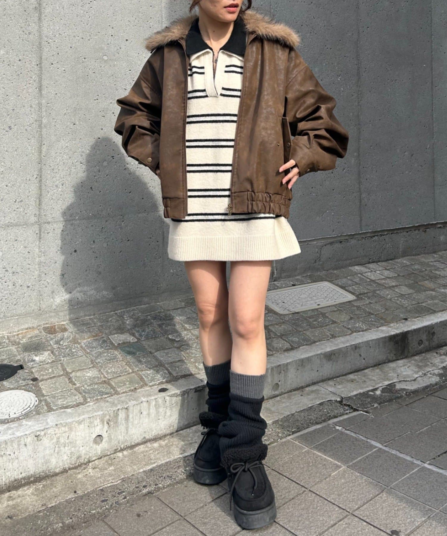 ・足元にボリュームが出るので、ミニ / ロングどちらのボトムとも相性抜群です。