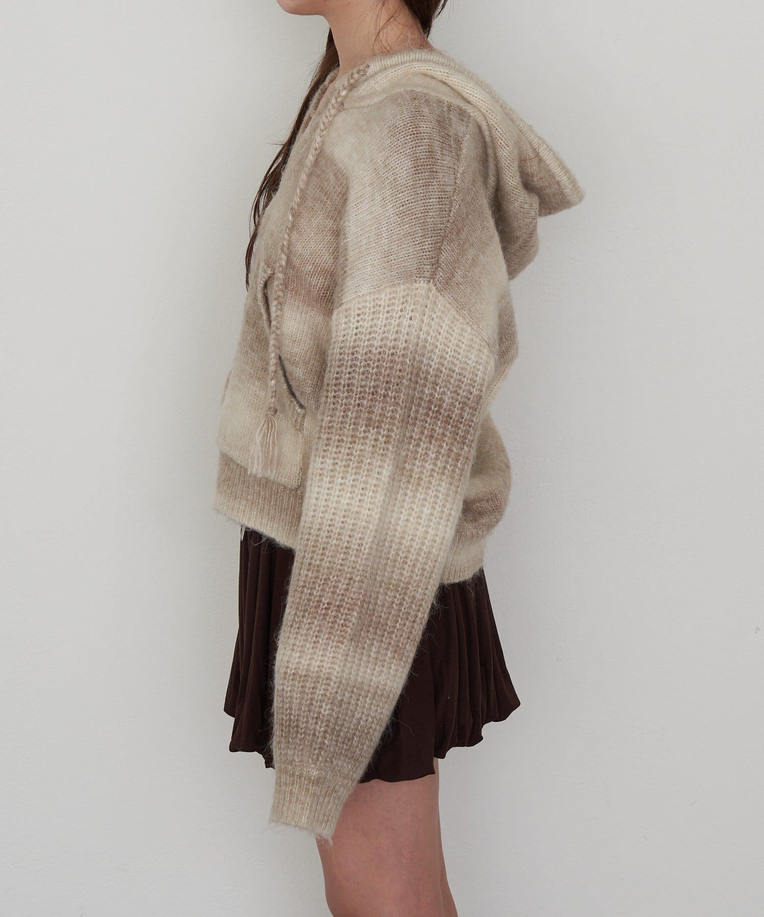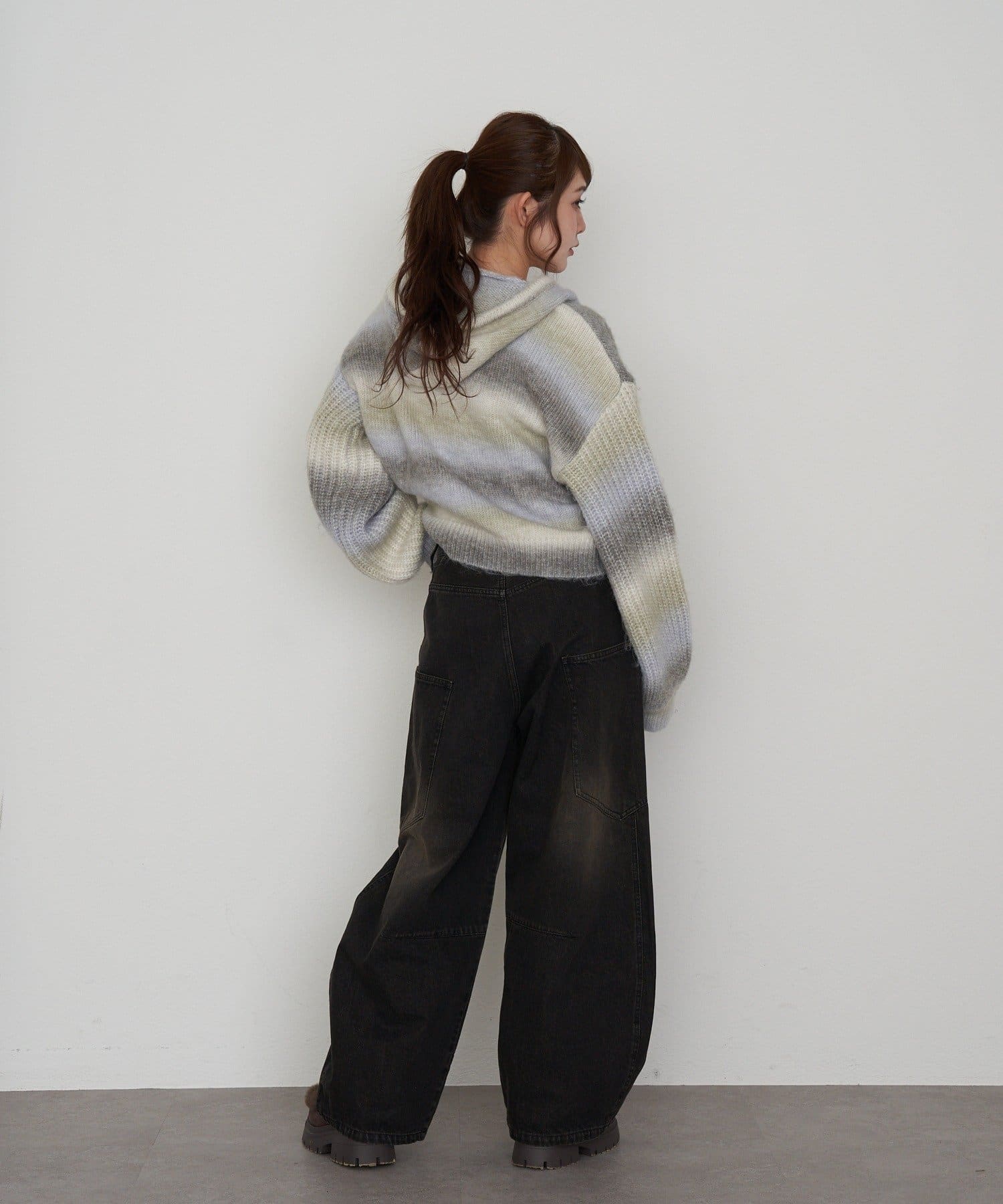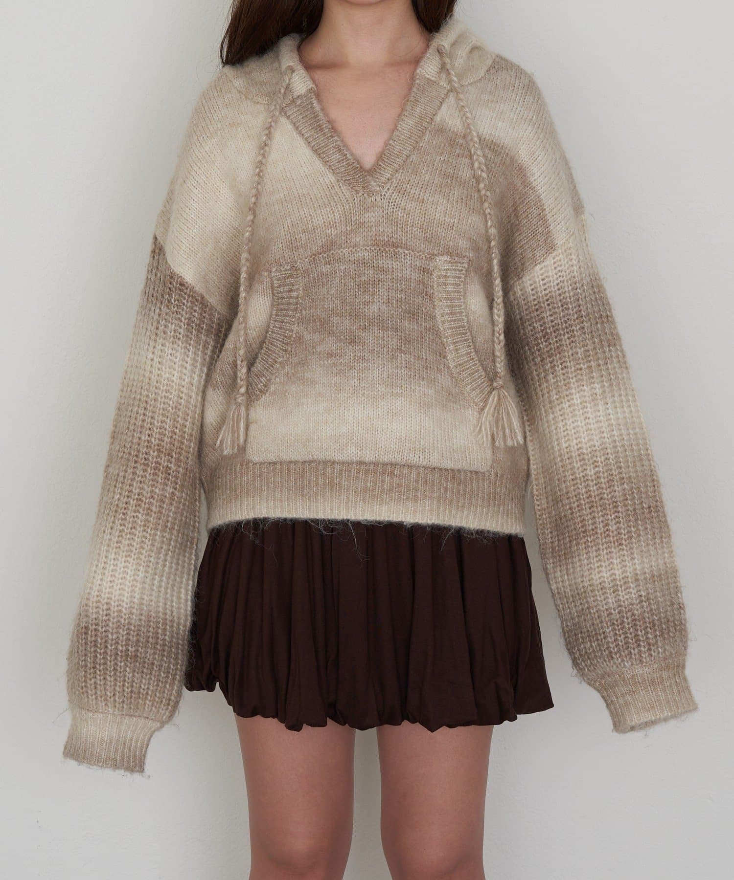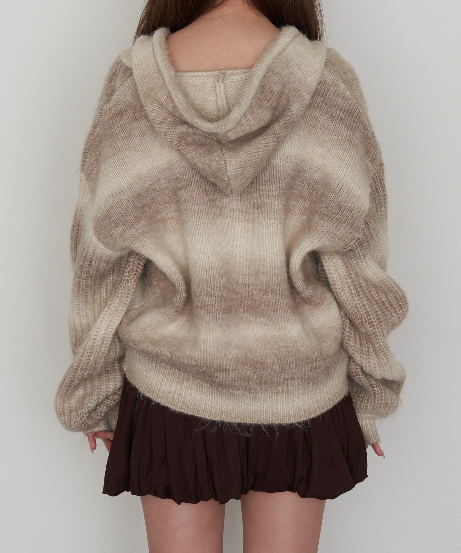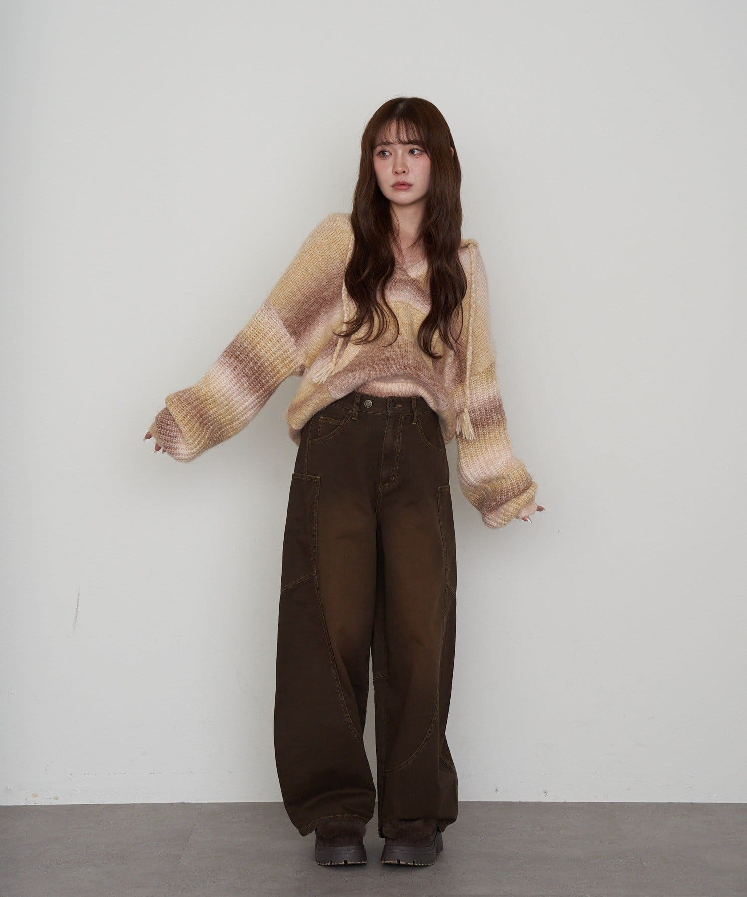 ・フード付きのニットが、マンネリ化しがちな冬コーデに新鮮さを与えてくれます。