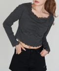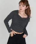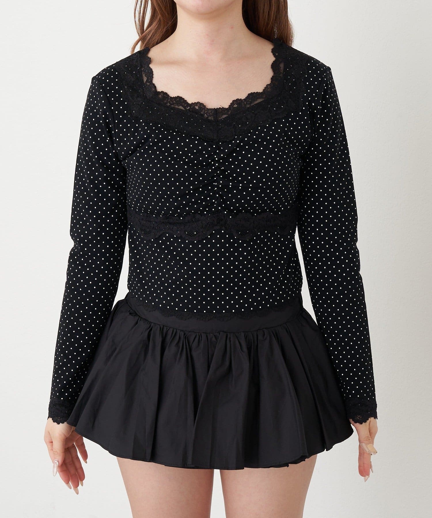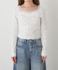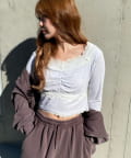 ・鎖骨がキレイに見えるスクエアネックで、女性らしく着られる1着です。