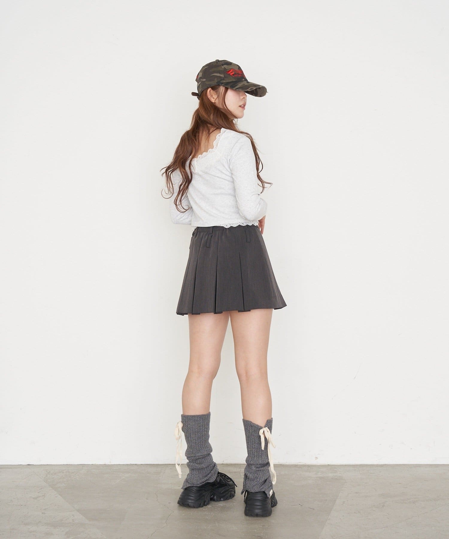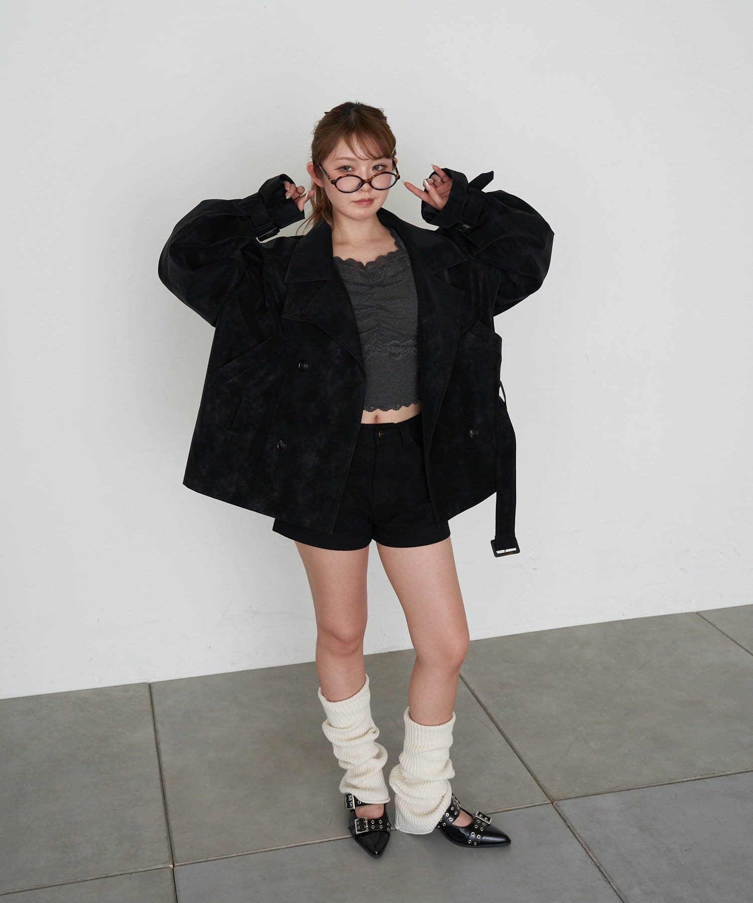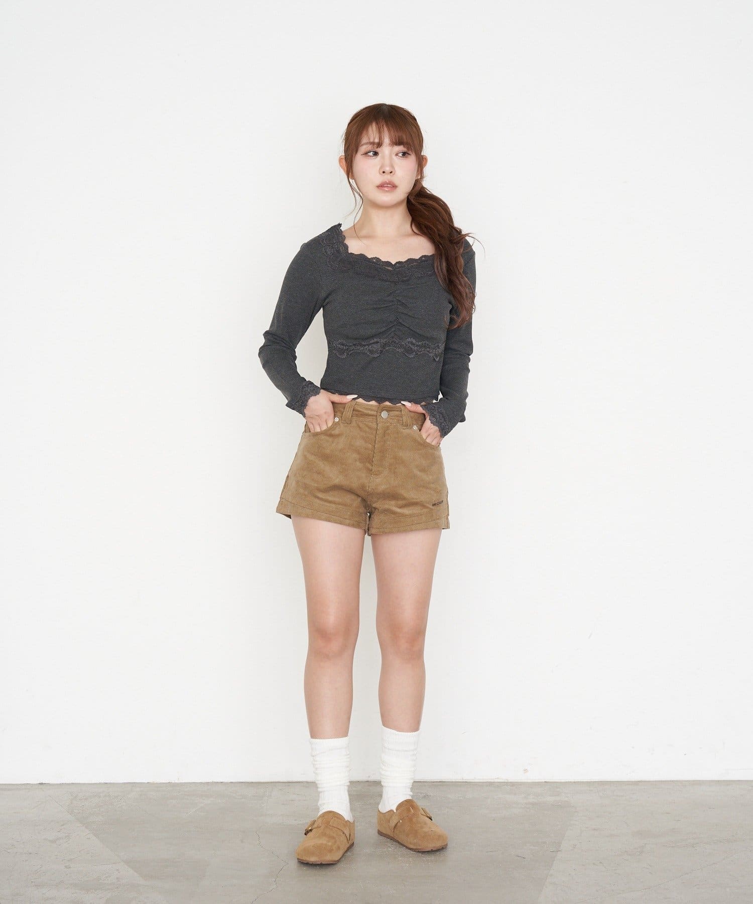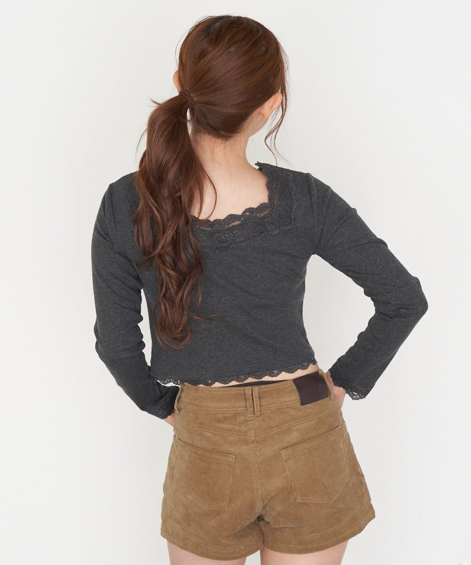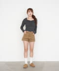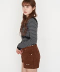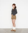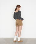 ・短めの丈がウエスト位置を高く見せてくれるので、スタイルアップ効果も◎