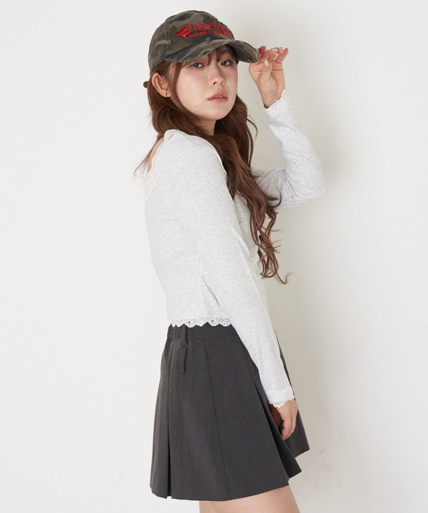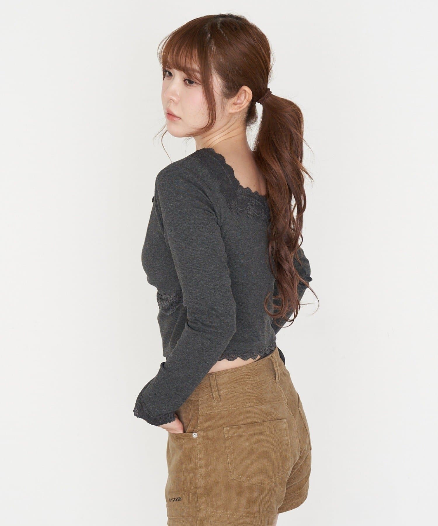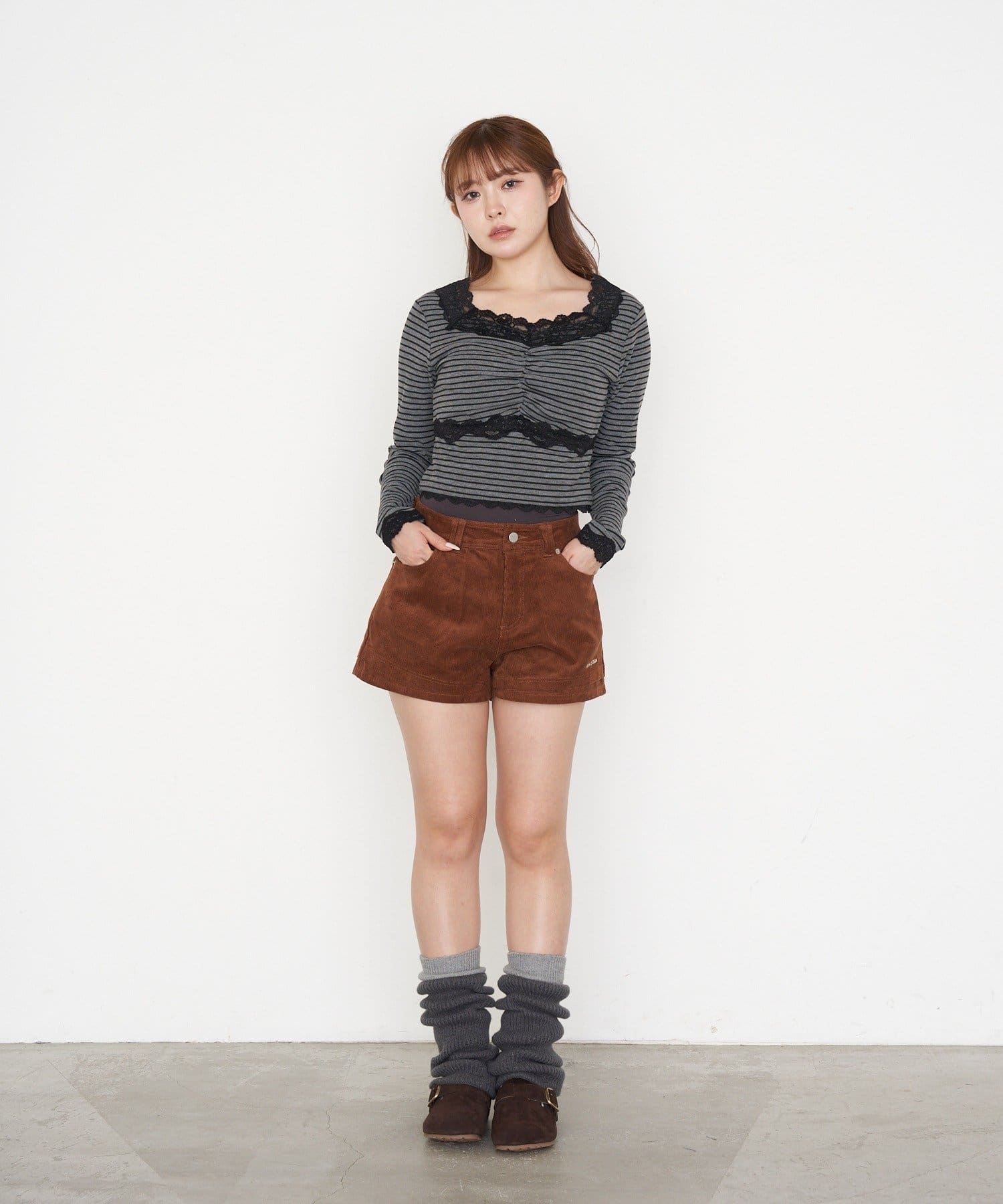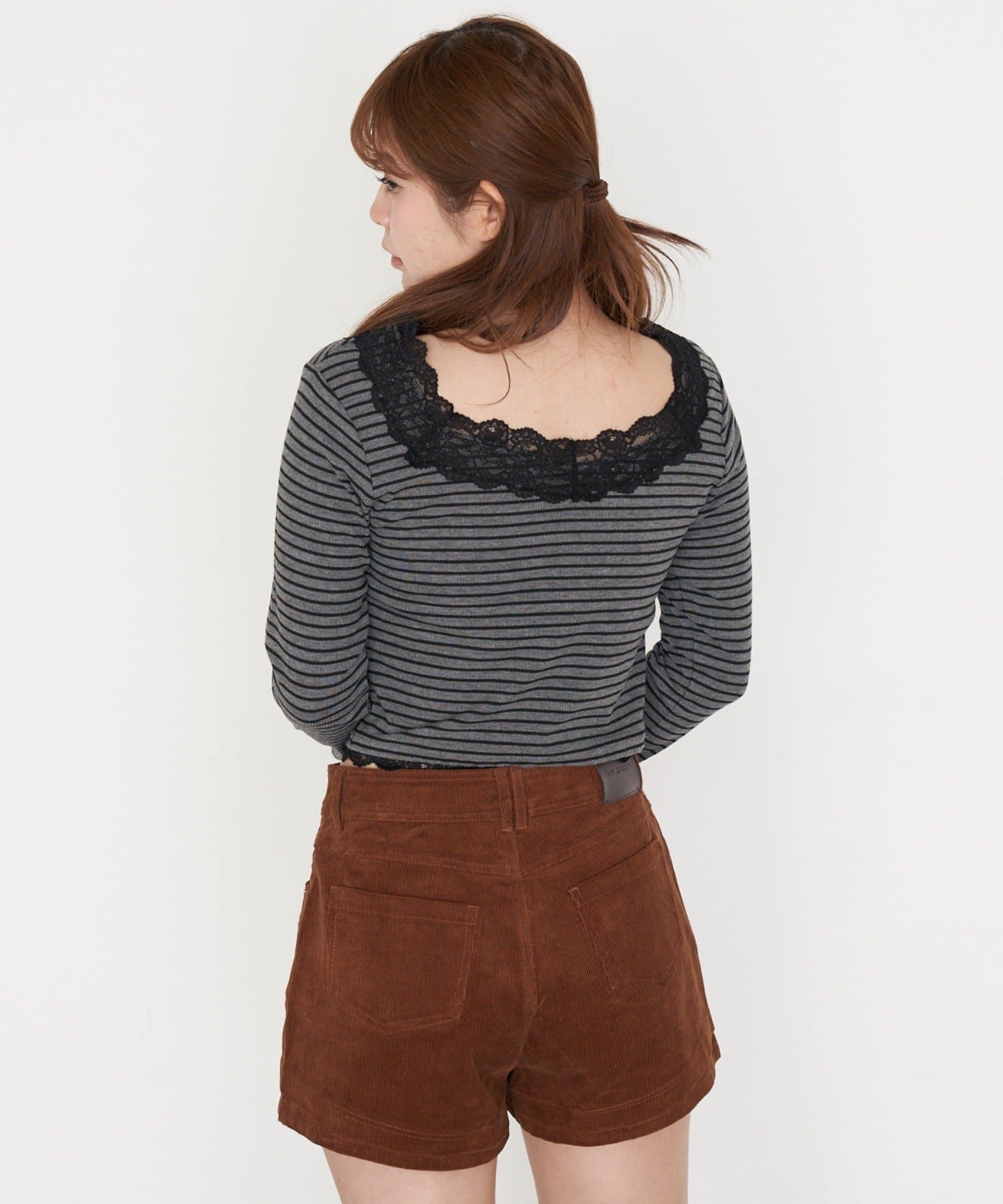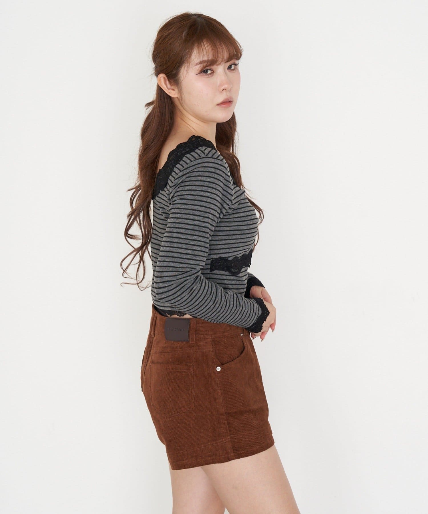 ・短めの丈がウエスト位置を高く見せてくれるので、スタイルアップ効果も◎