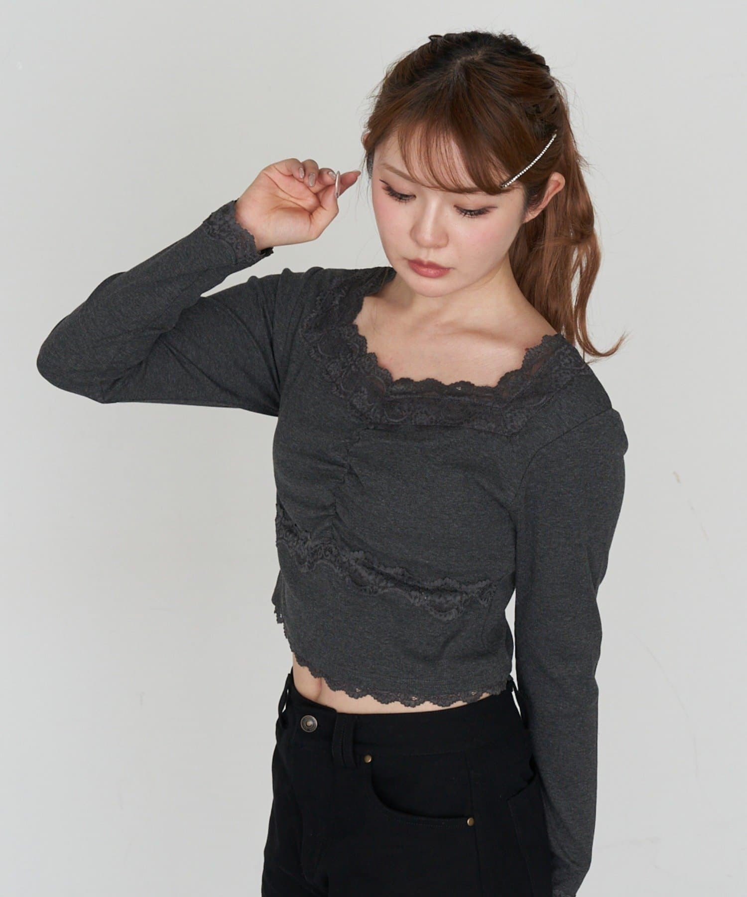 パット付きレースロンT