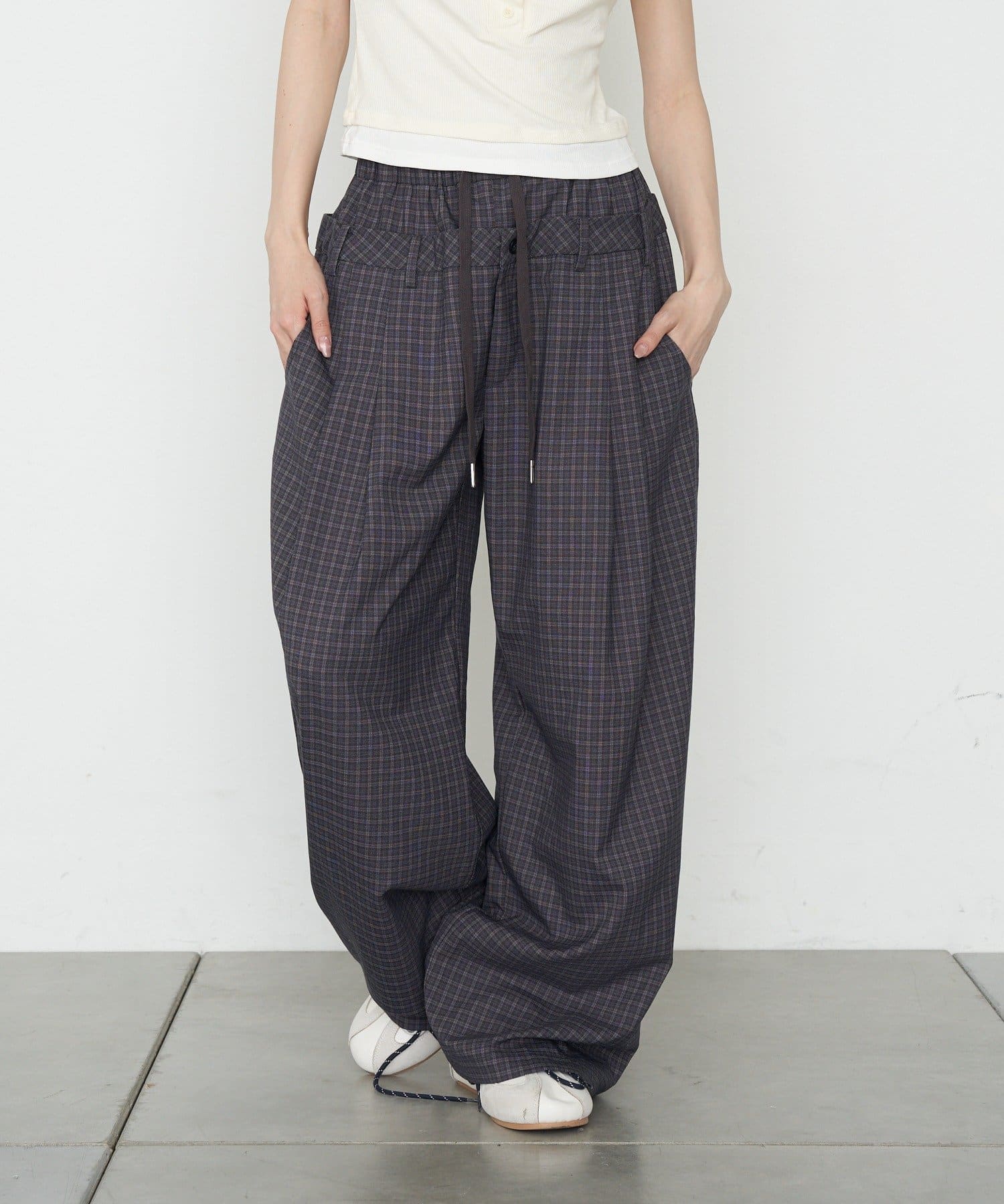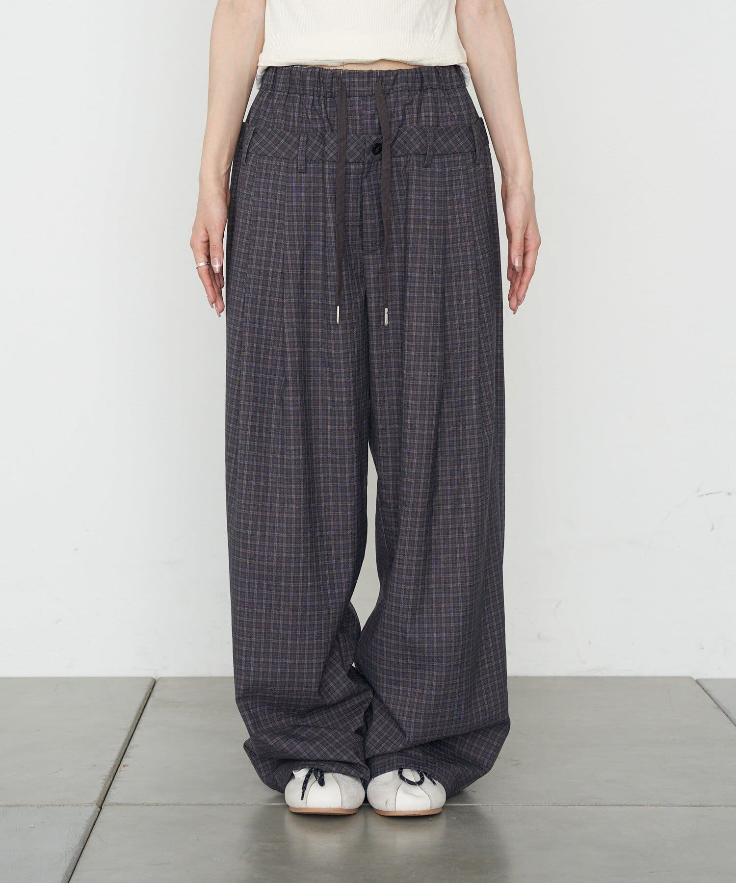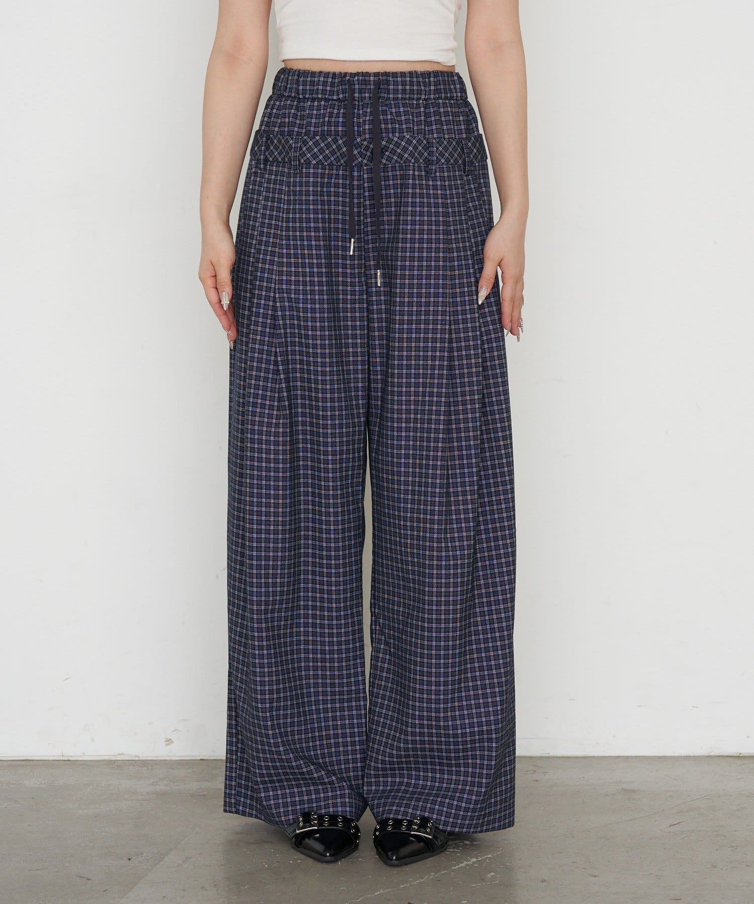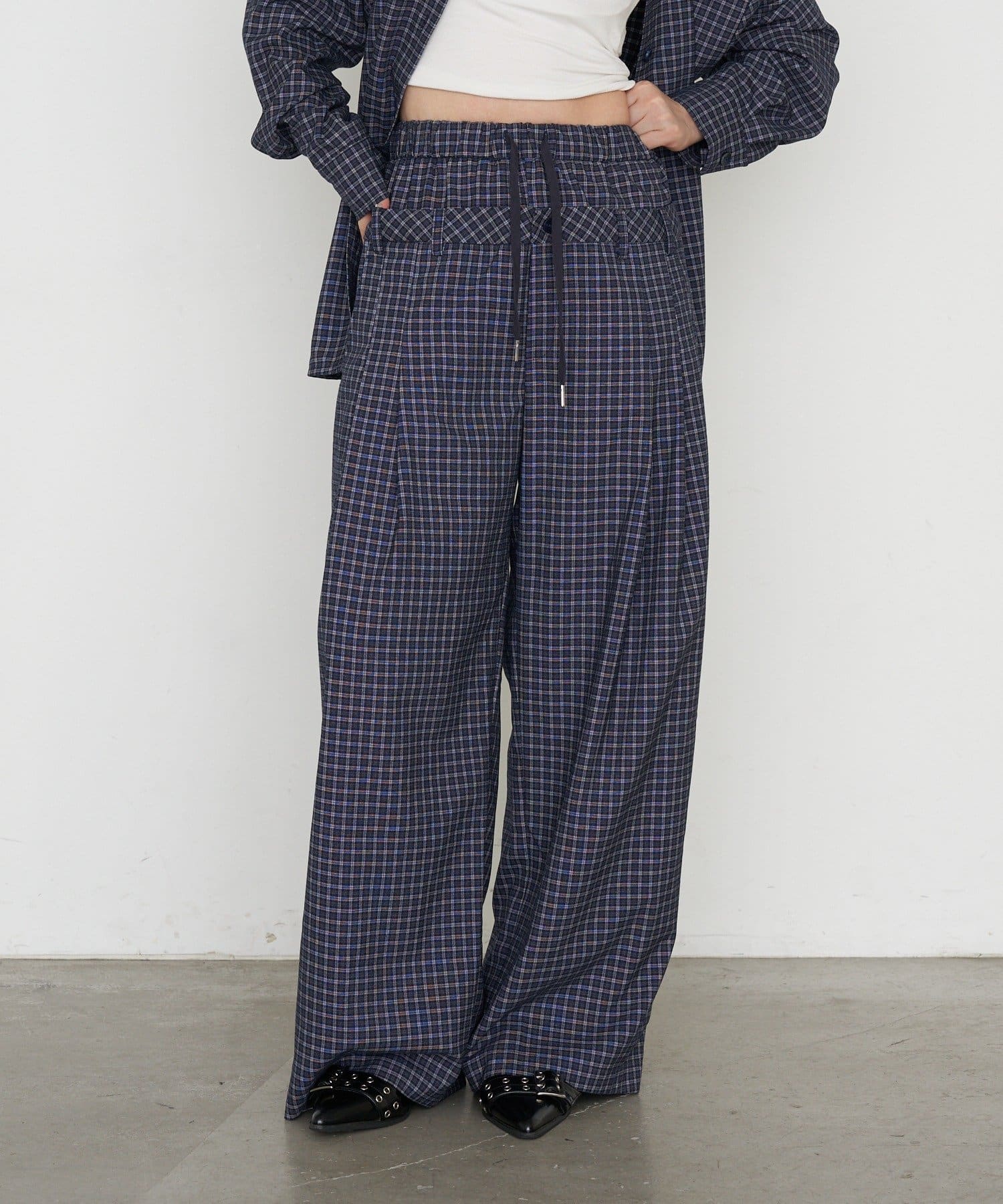 【セットアップで着られる】ウエストレイヤードイージーチェックパンツ