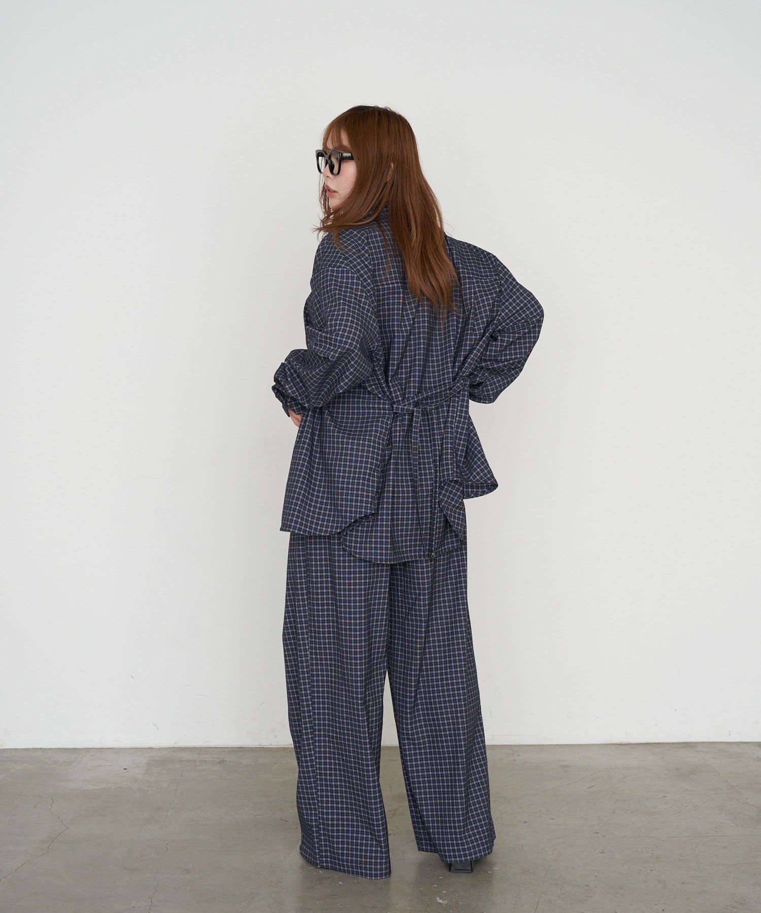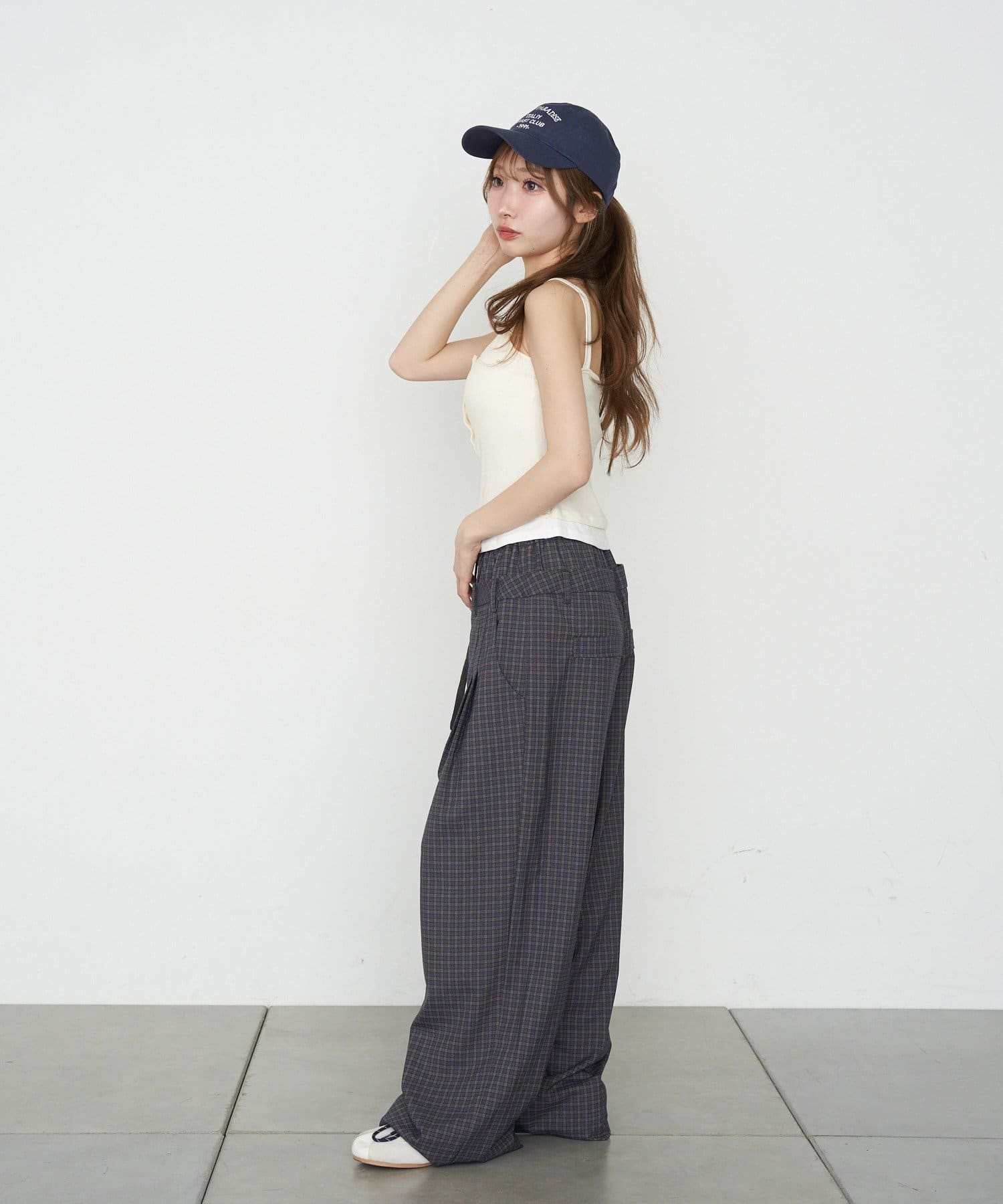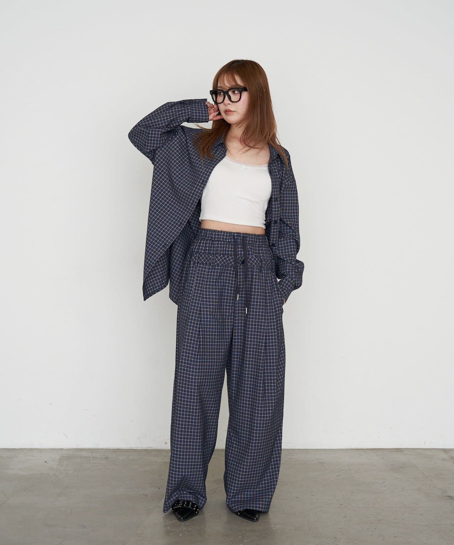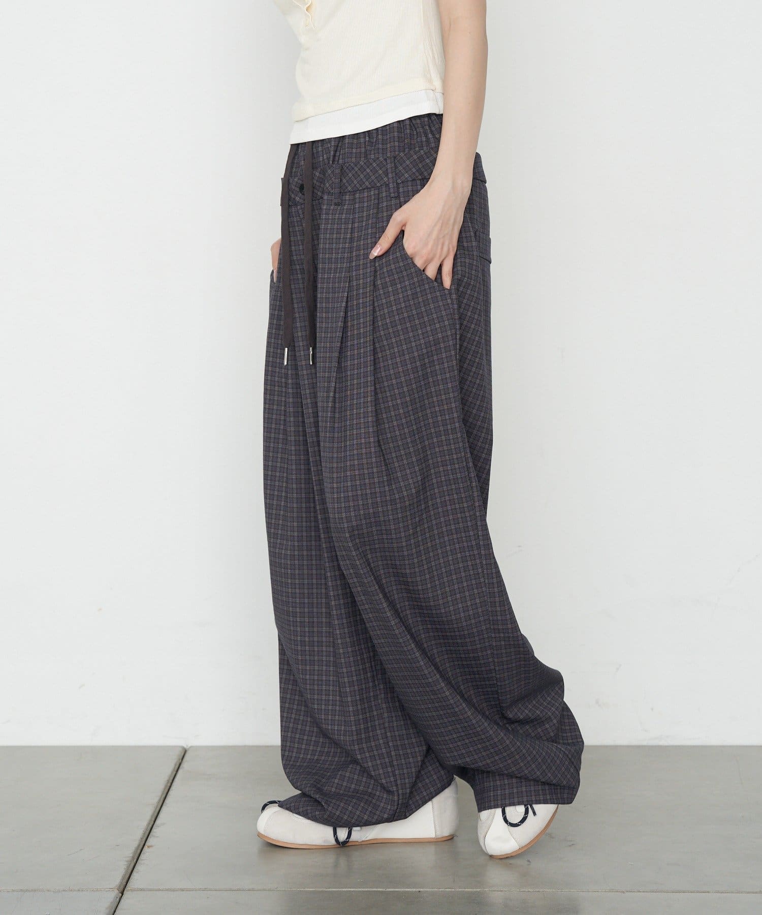 【セットアップで着られる】ウエストレイヤードイージーチェックパンツ