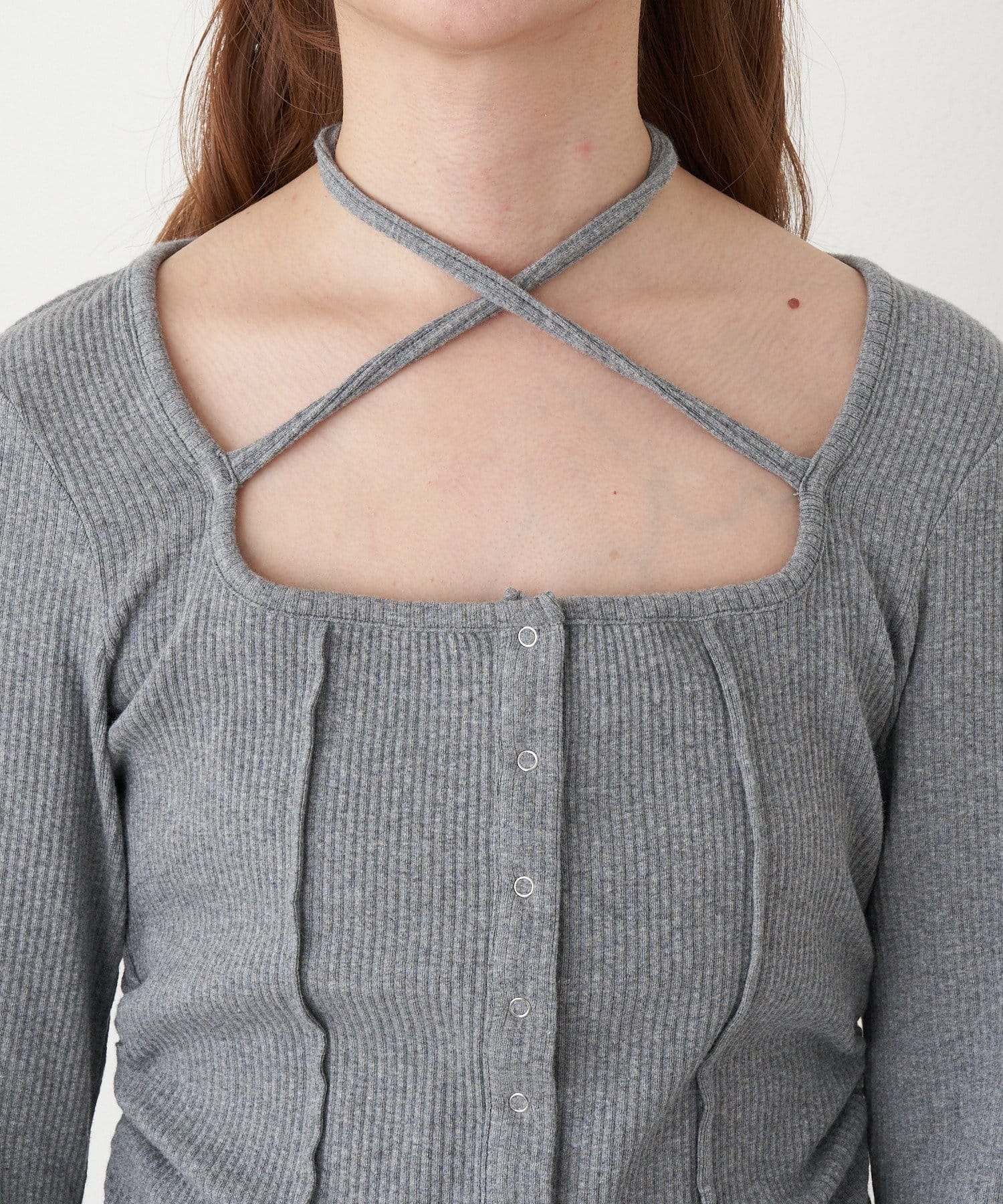 ・首元の紐がアレンジ可能なので、気分に合わせて着ていただけます。