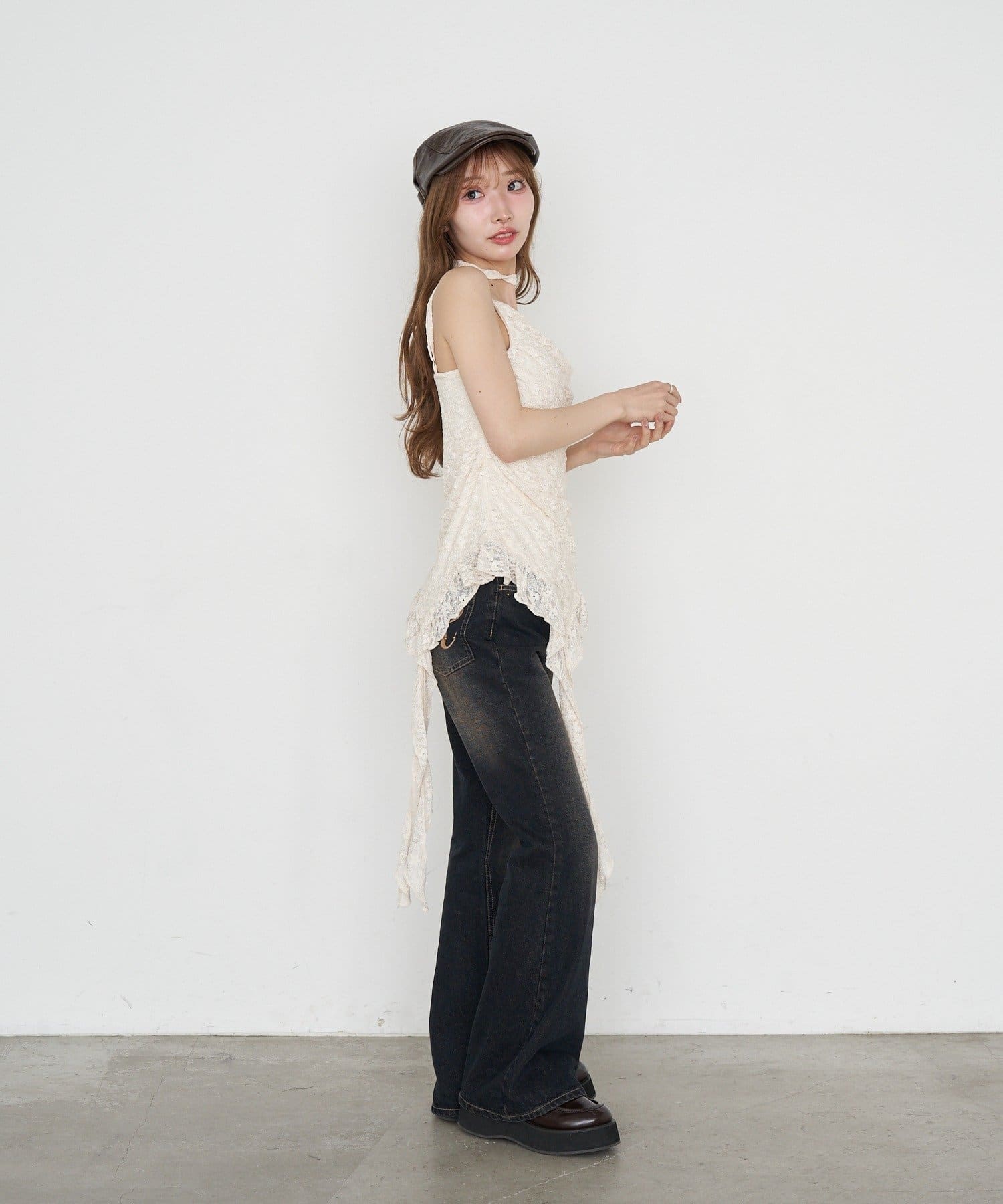 ・ワイドボトムを合わせた海外ガール風スタイル