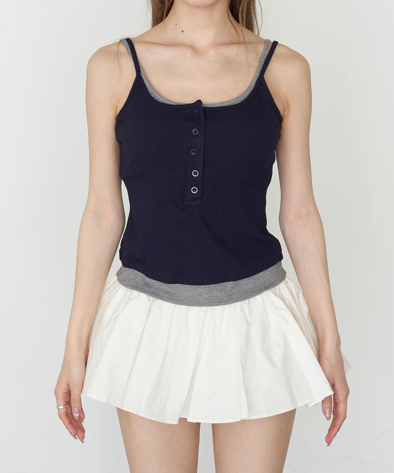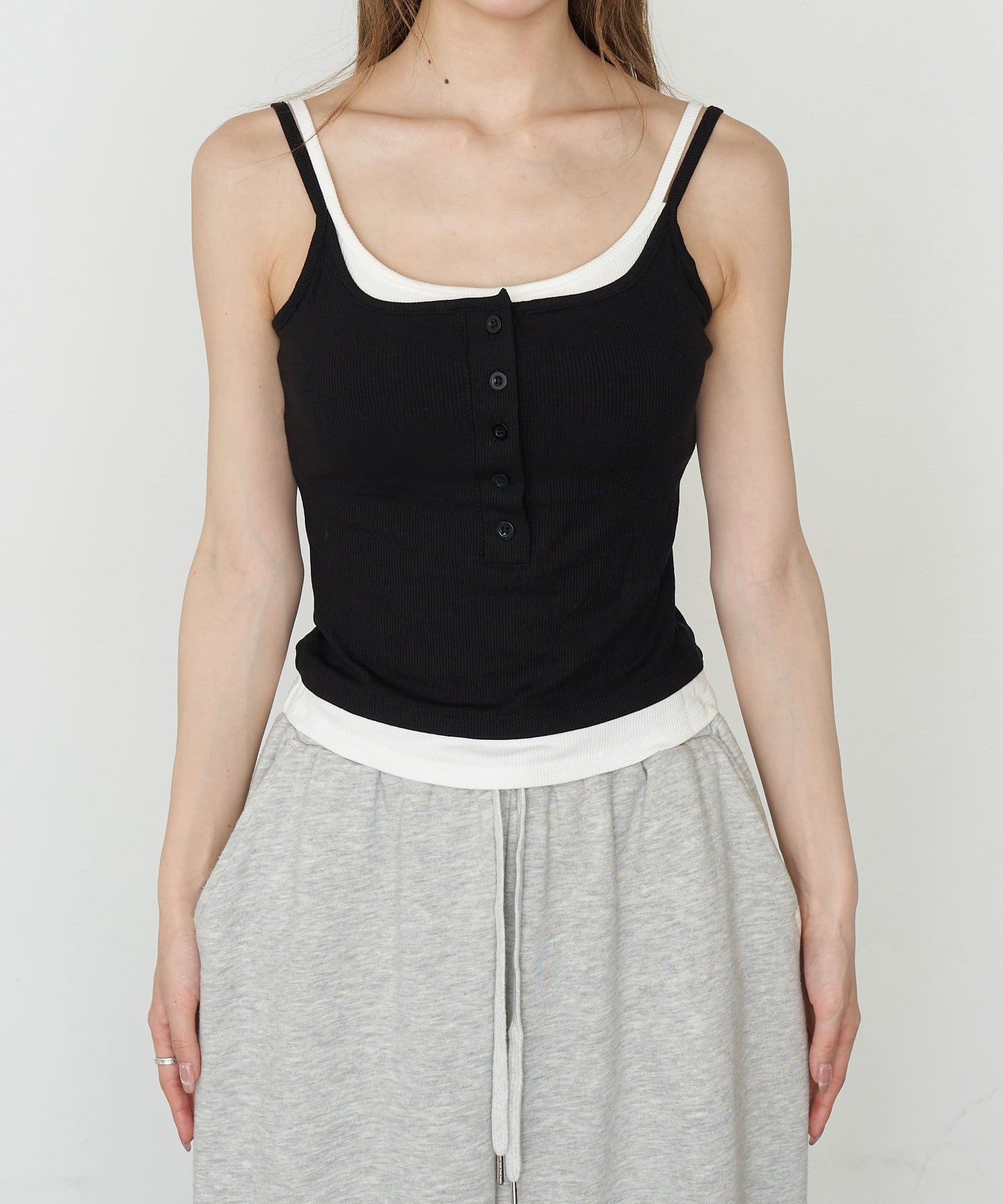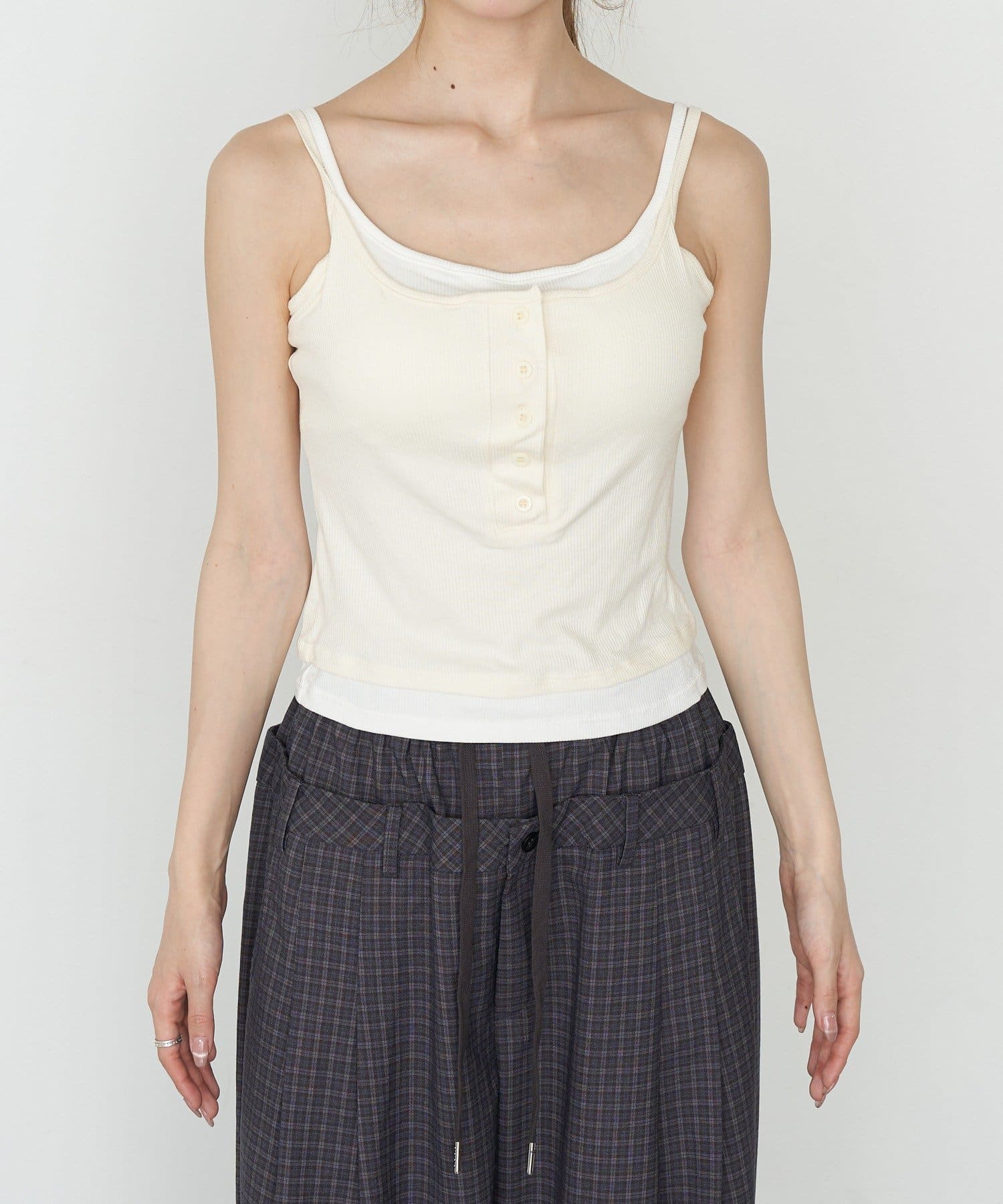 パット付きレイヤードヘンリーネックキャミソール