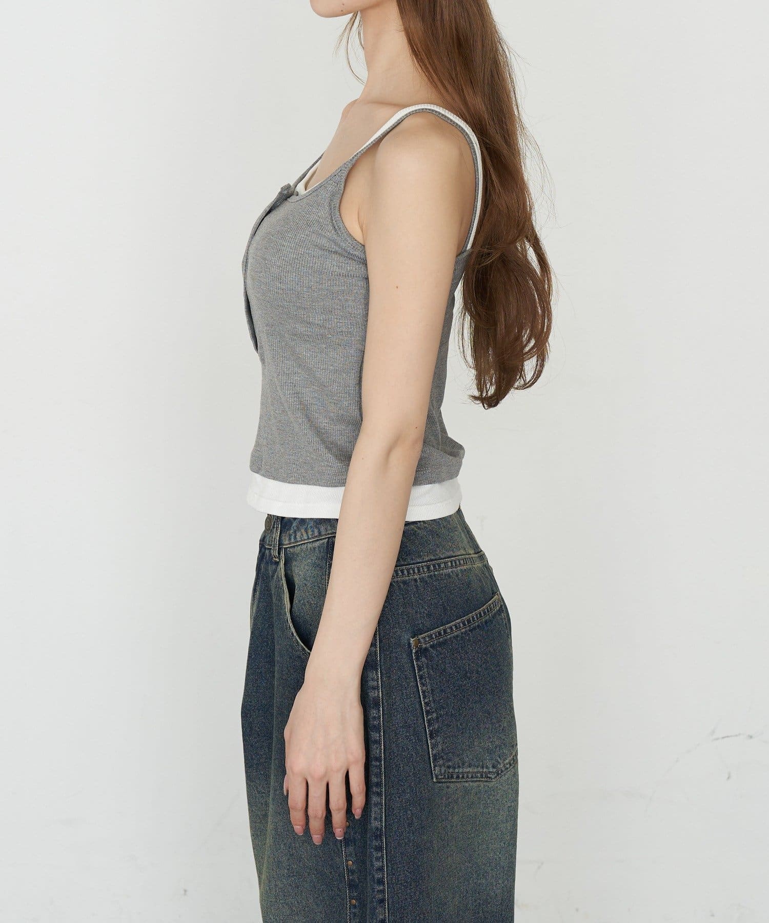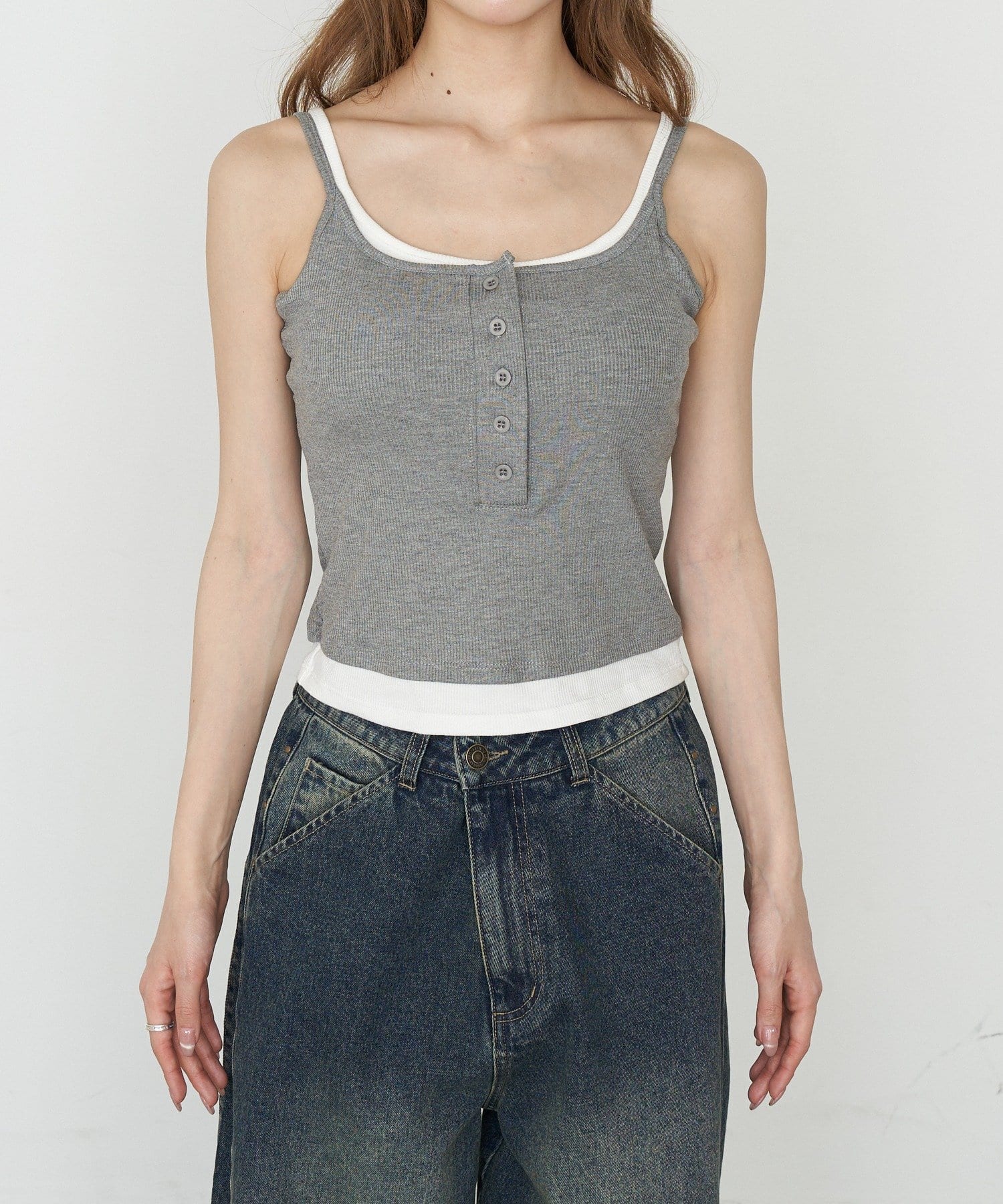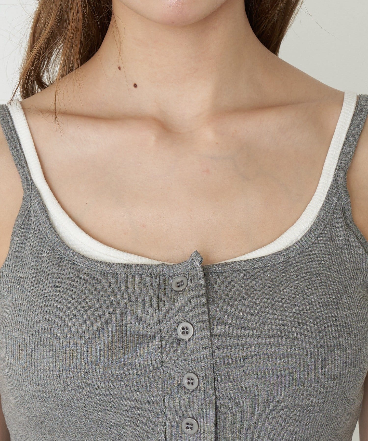 パット付きレイヤードヘンリーネックキャミソール