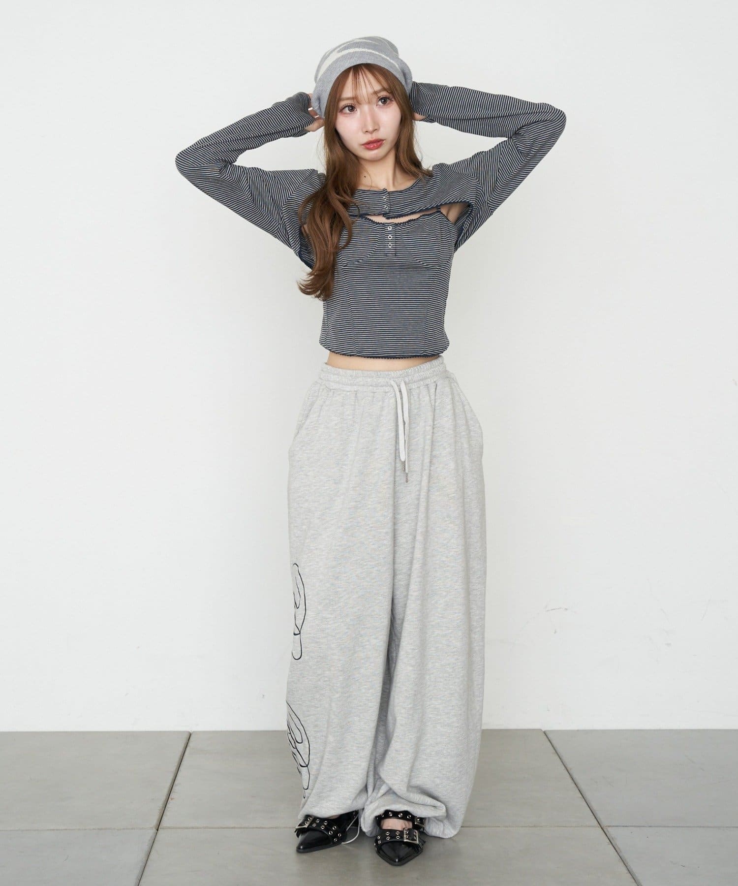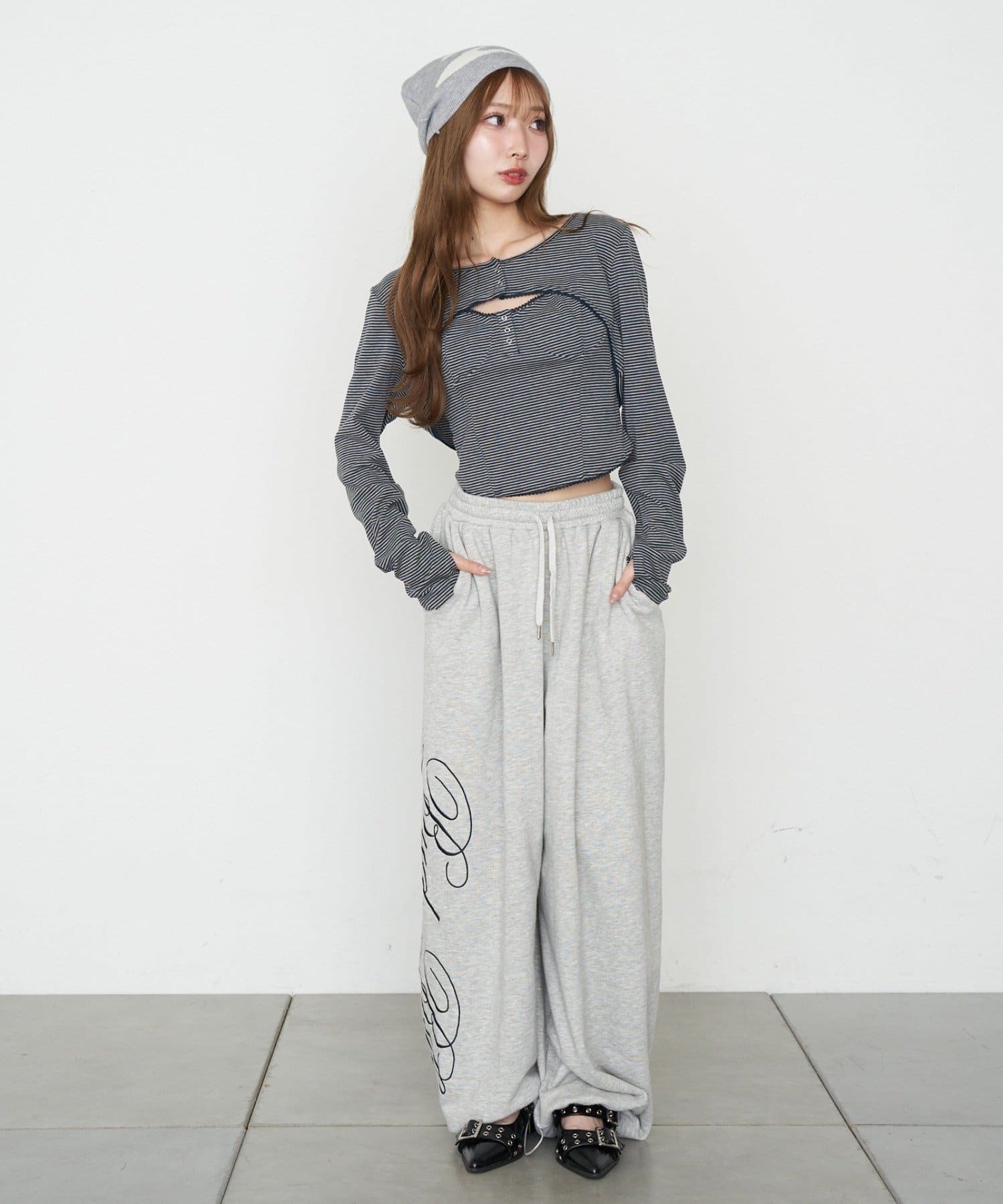 ・スウェットやワイドデニム、バレルレッグデニムと合わせた海外ガールのようなカジュアルスタイル。