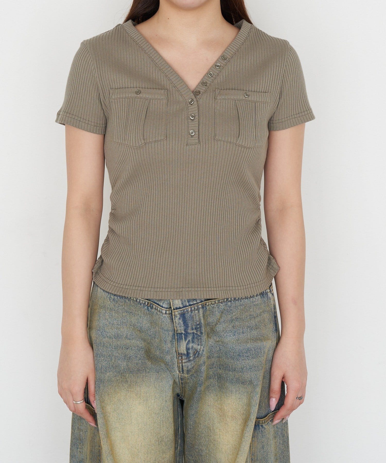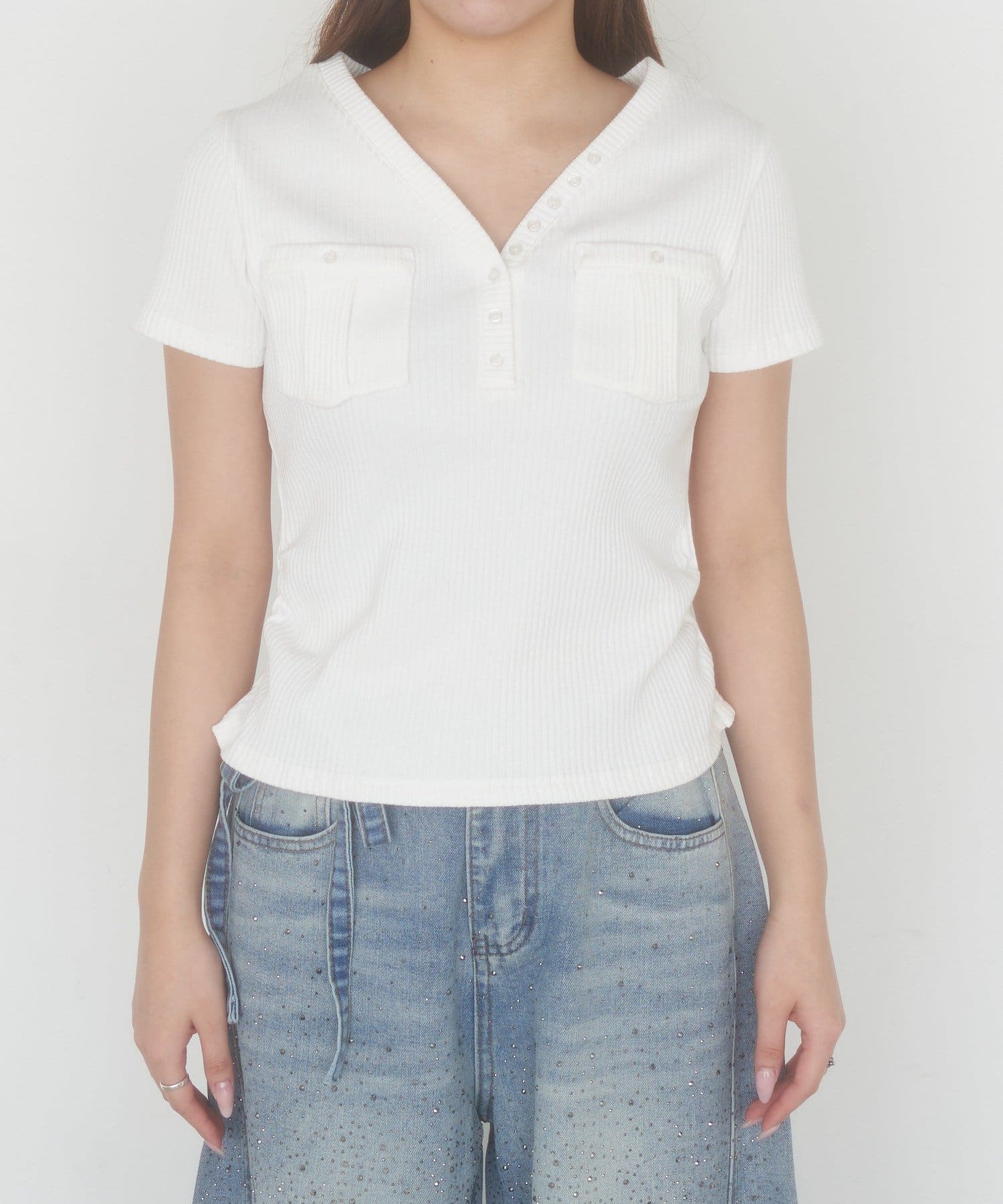 春夏トップス / Vネック / 無地トップス