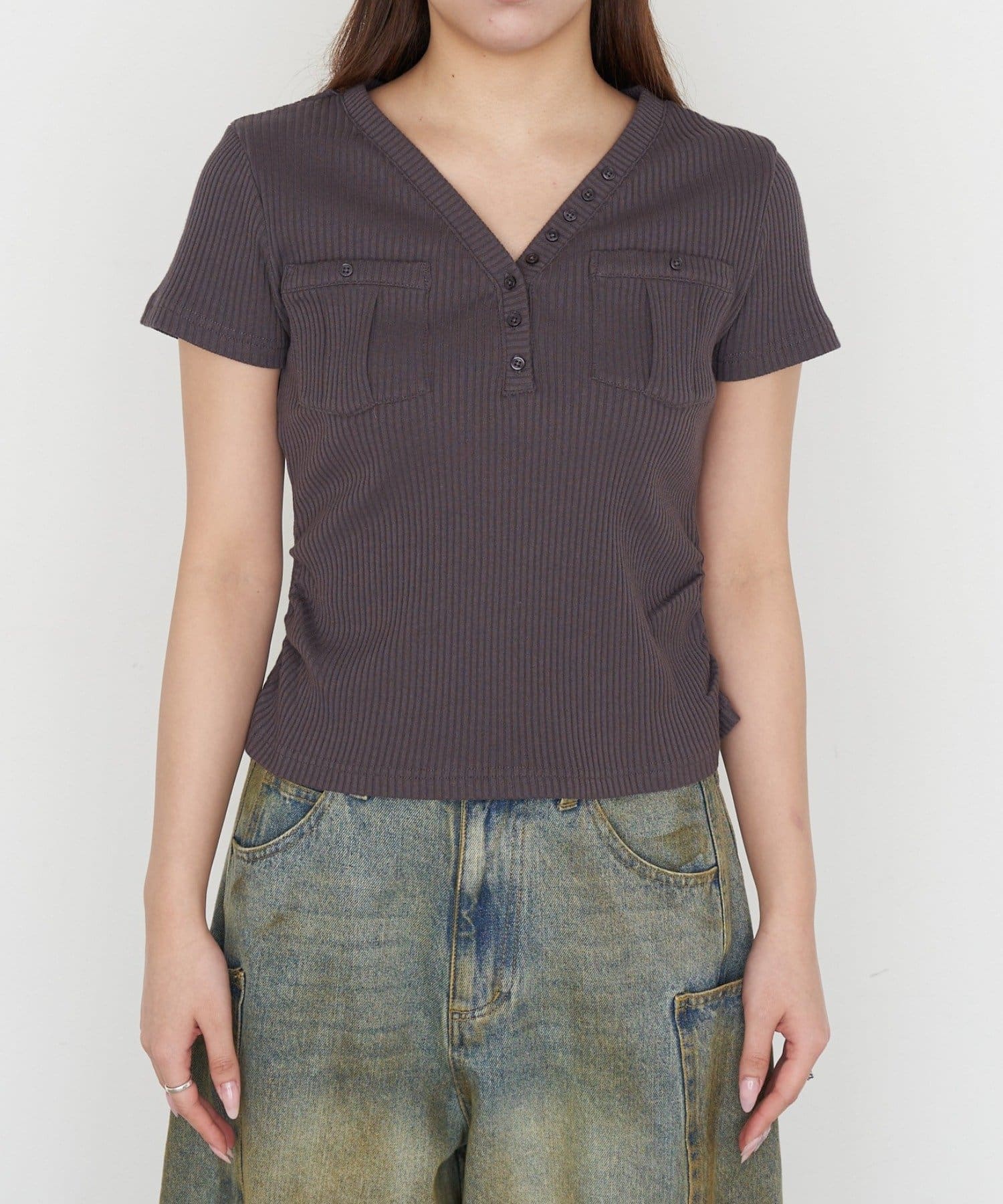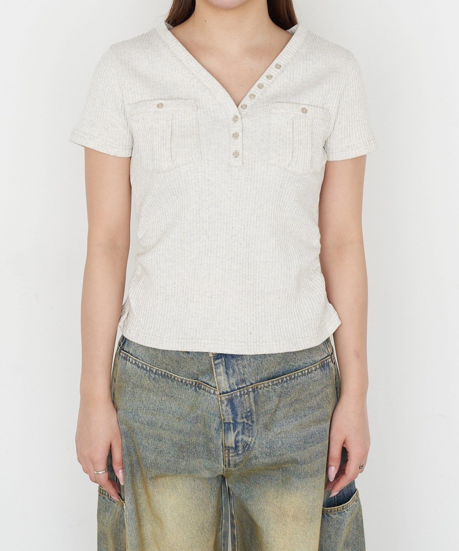 Vネックポケット半袖Tシャツ