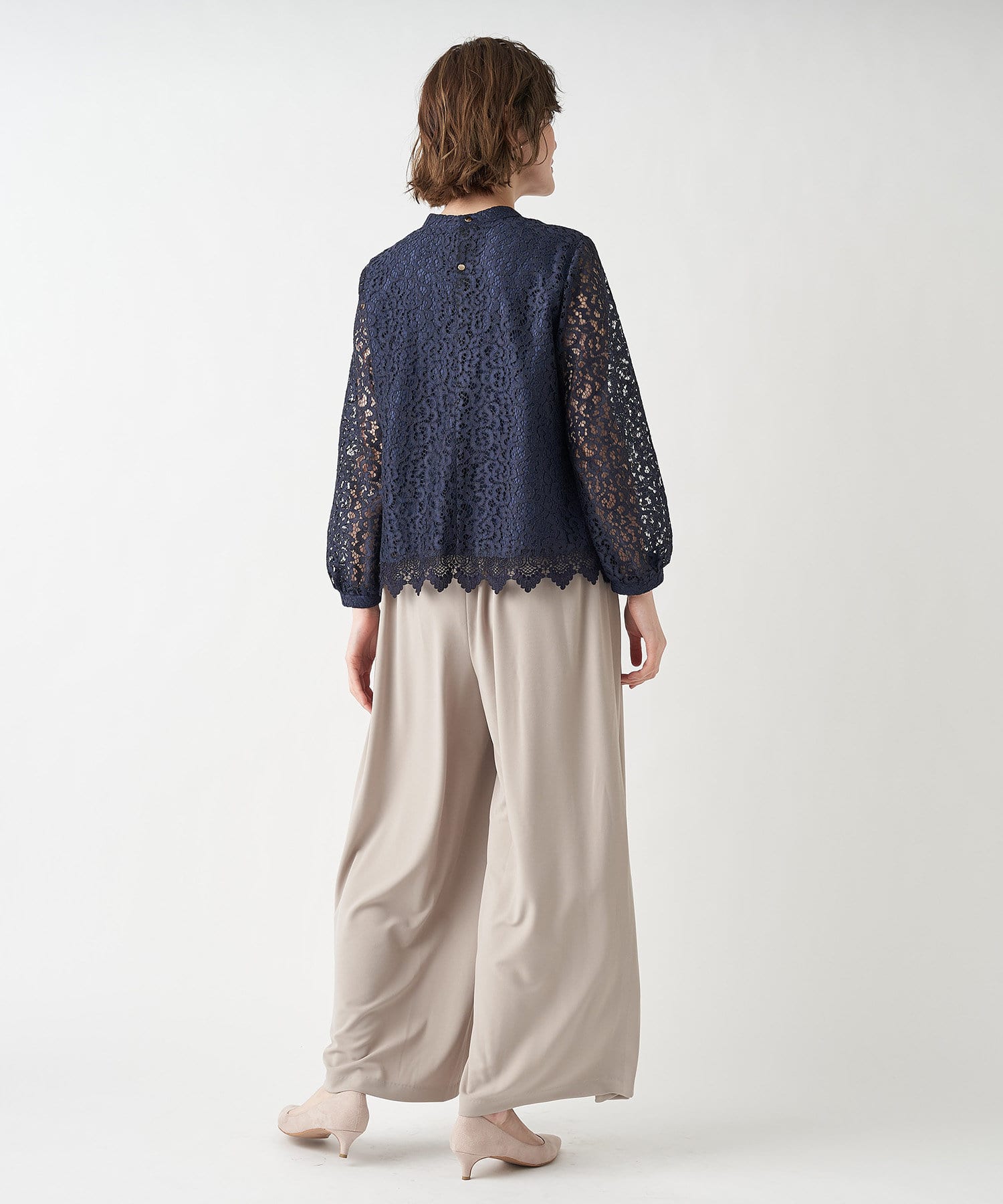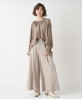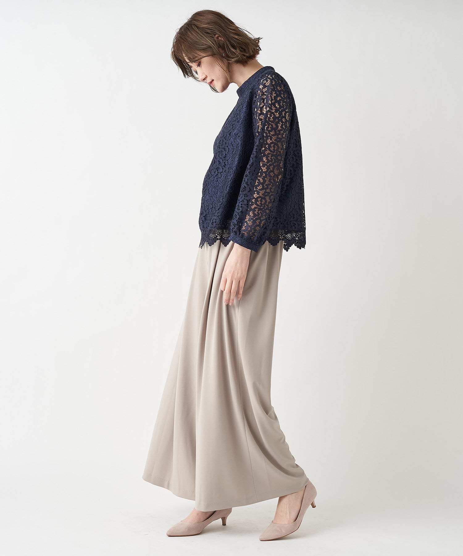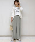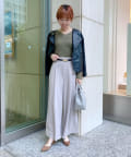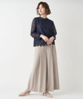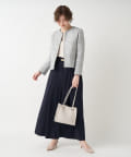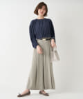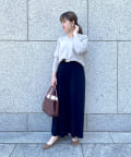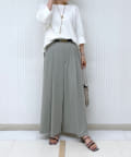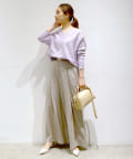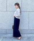 レースやツィード素材などハリ感のある素材のトップスと合わせるとメリハリがきいたスタイリングになりオススメです。