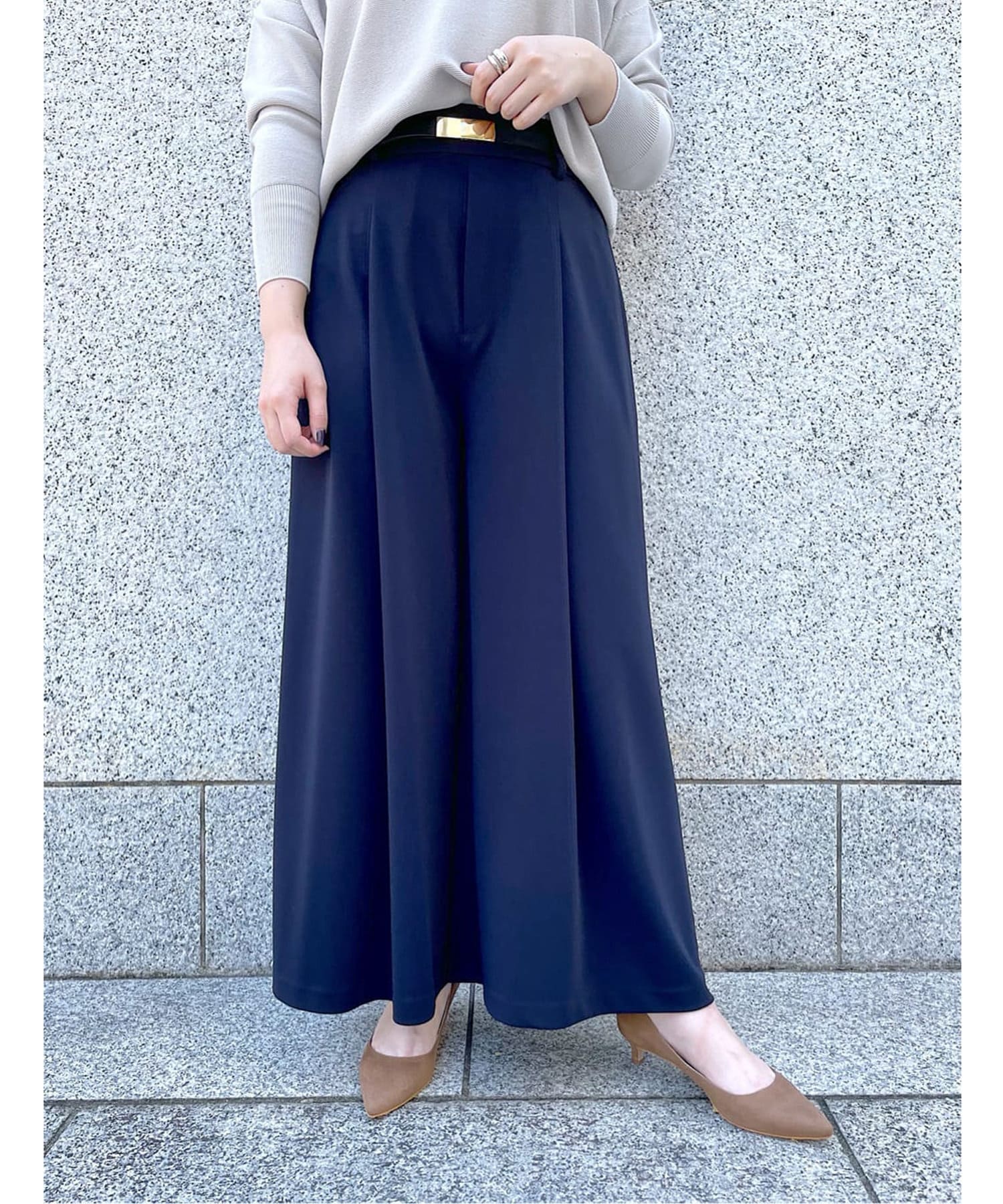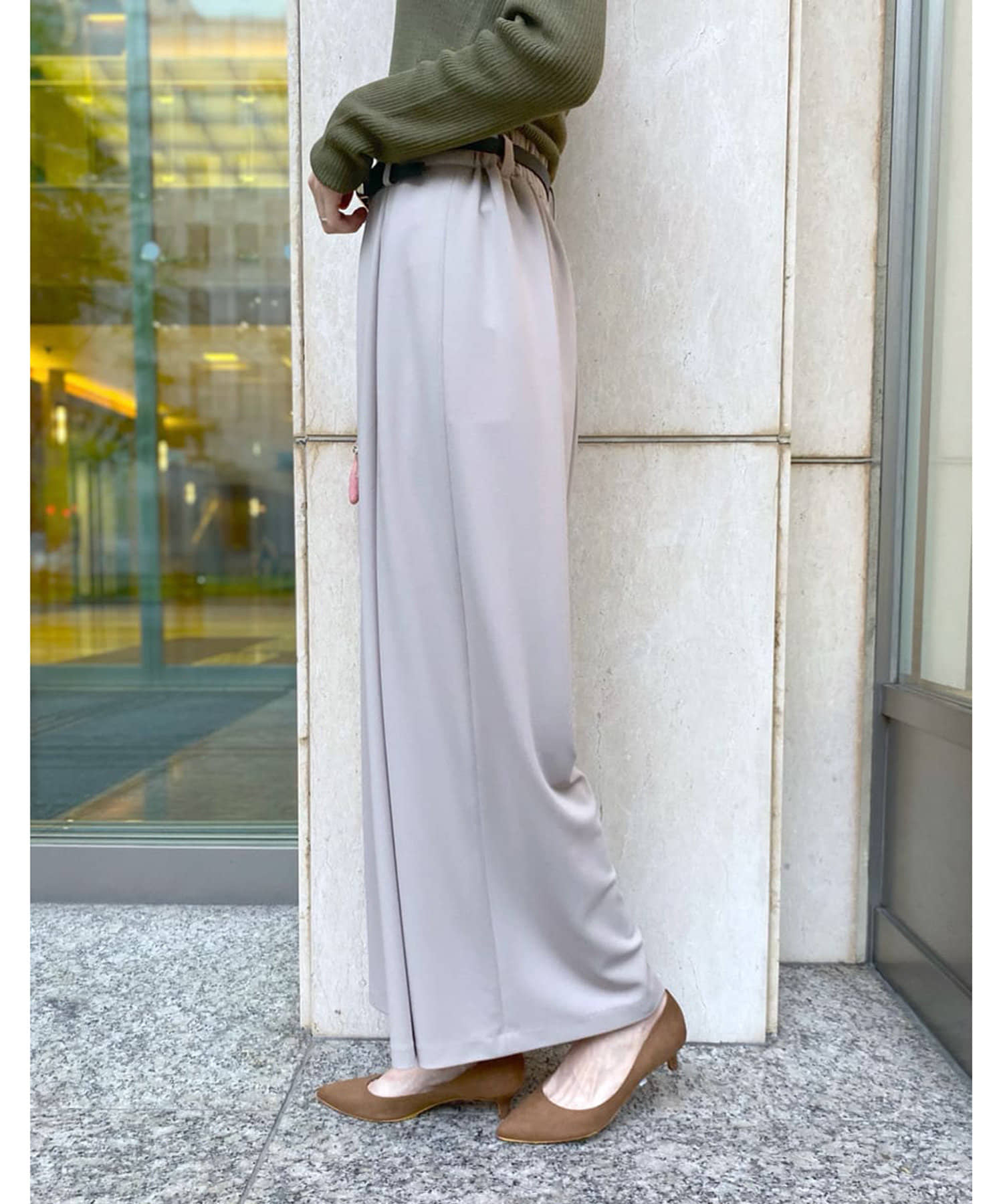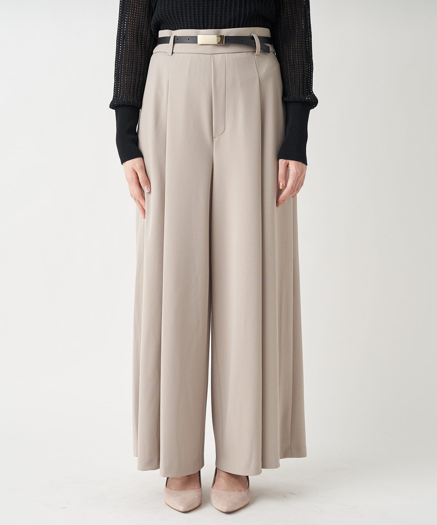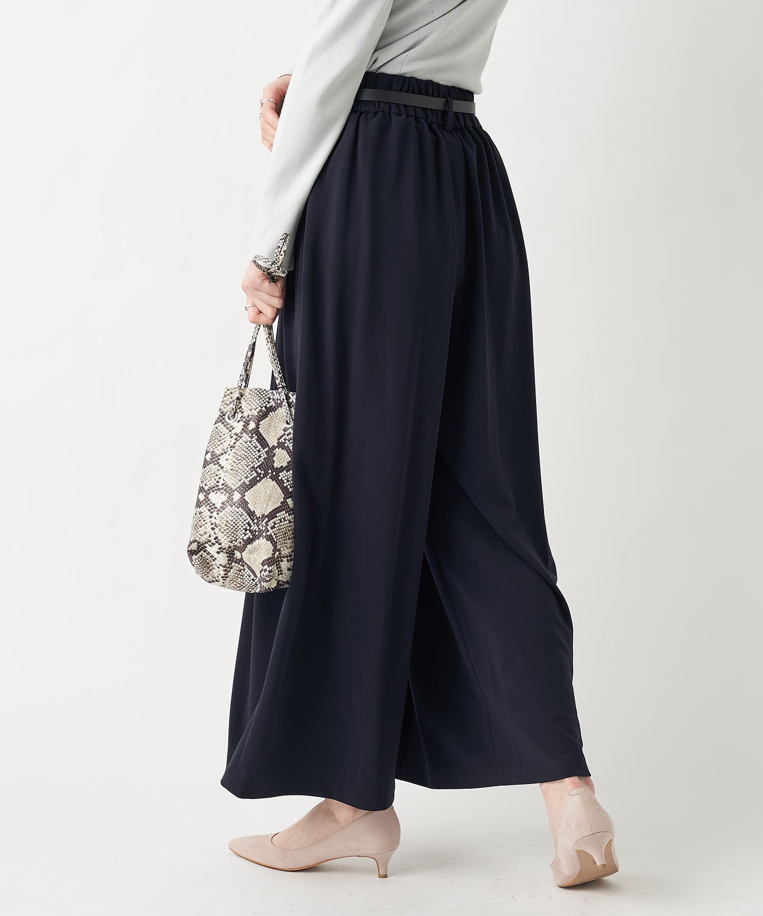 【ラインを拾わない美シルエット】ベルト付ワイドパンツ