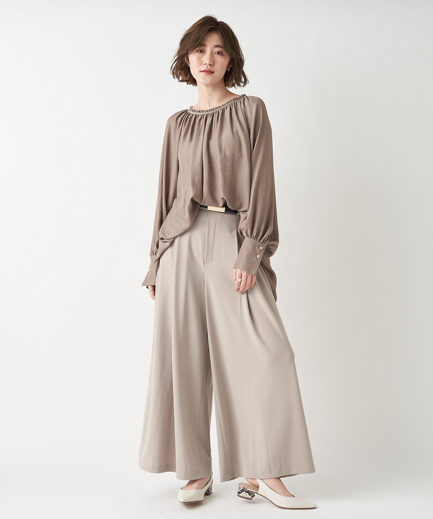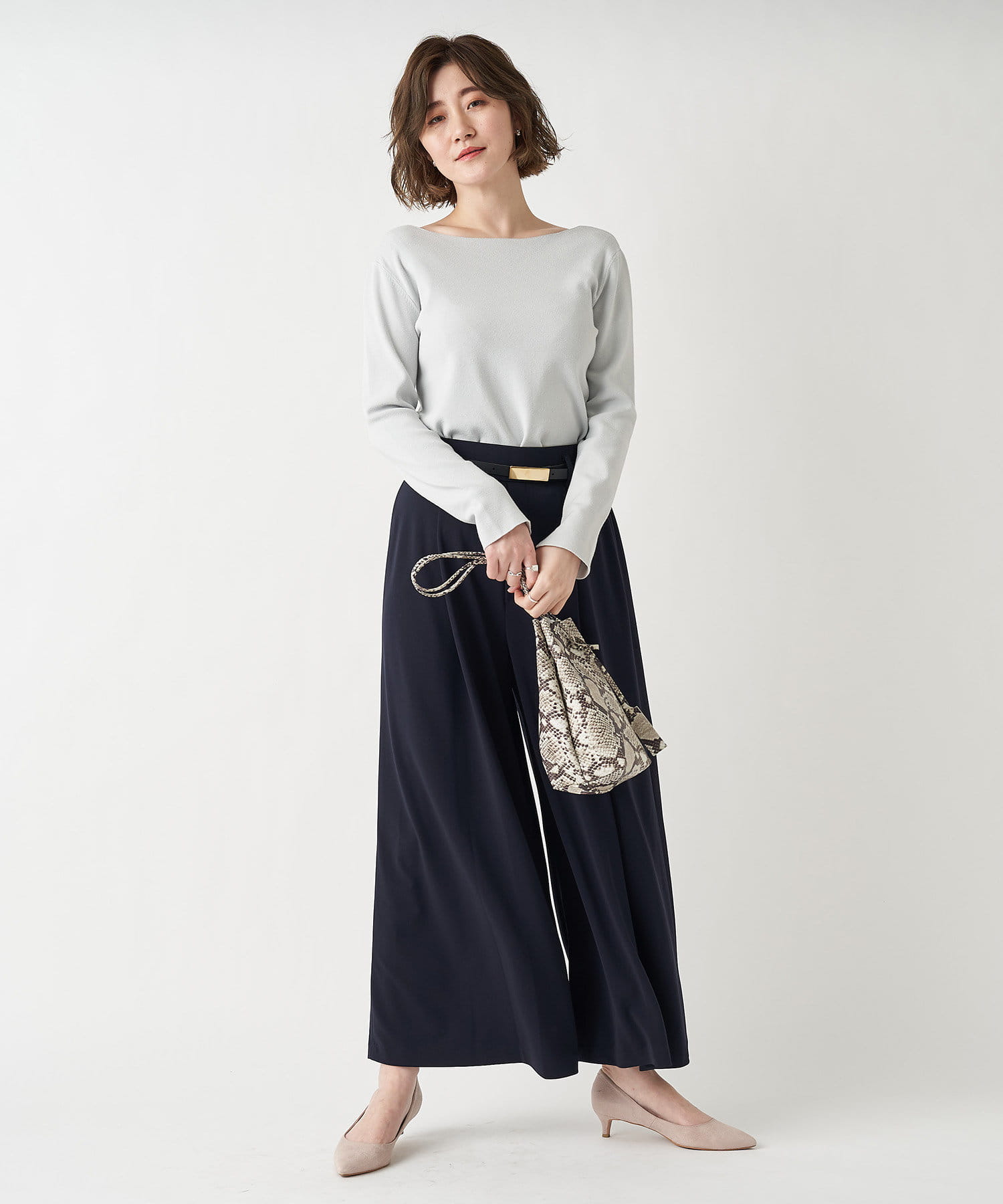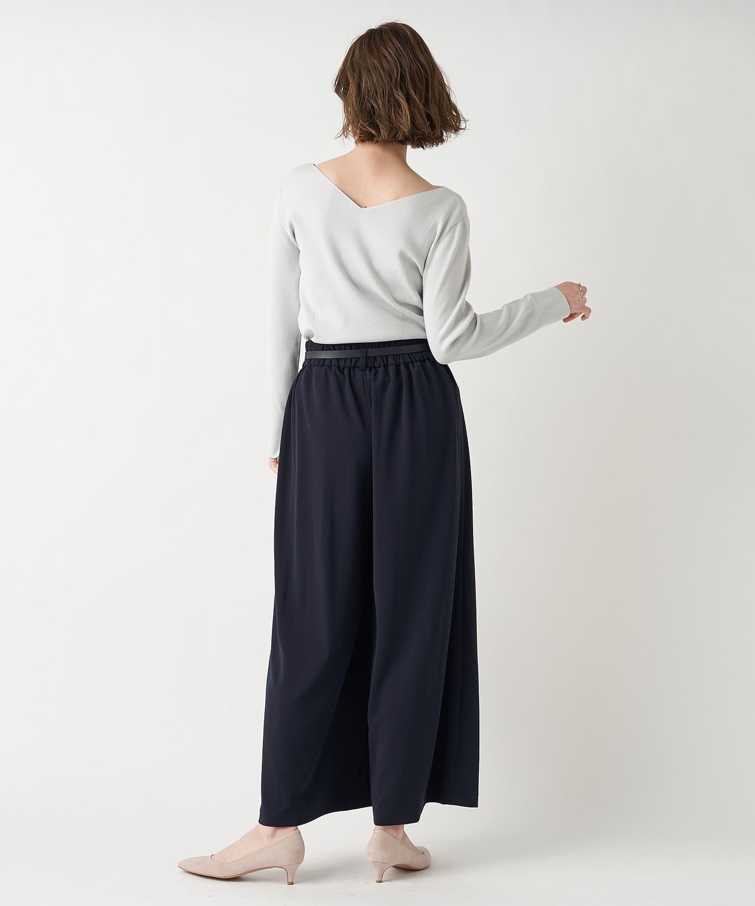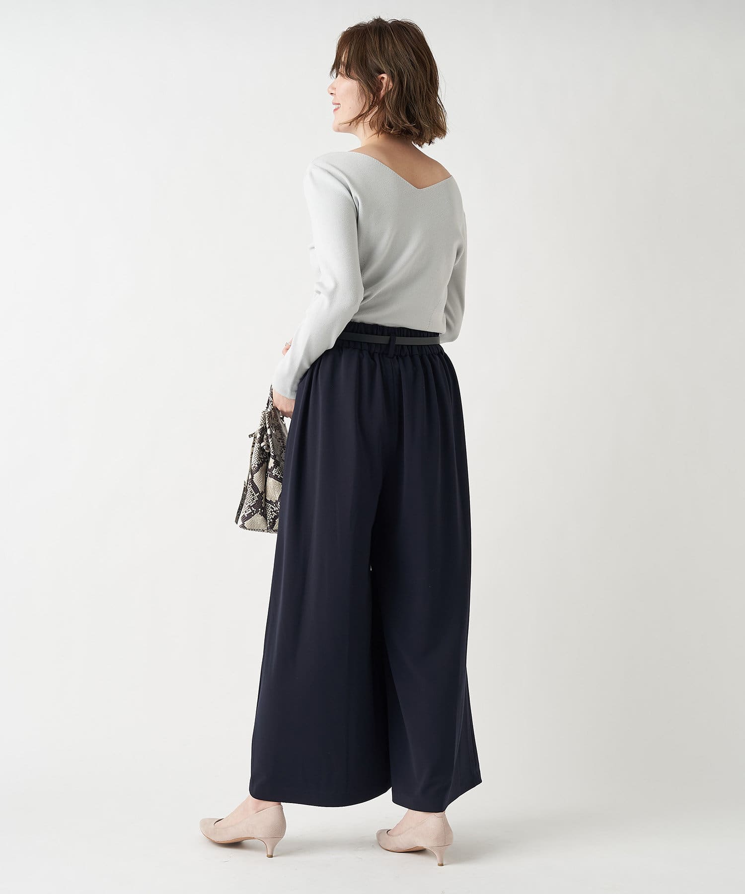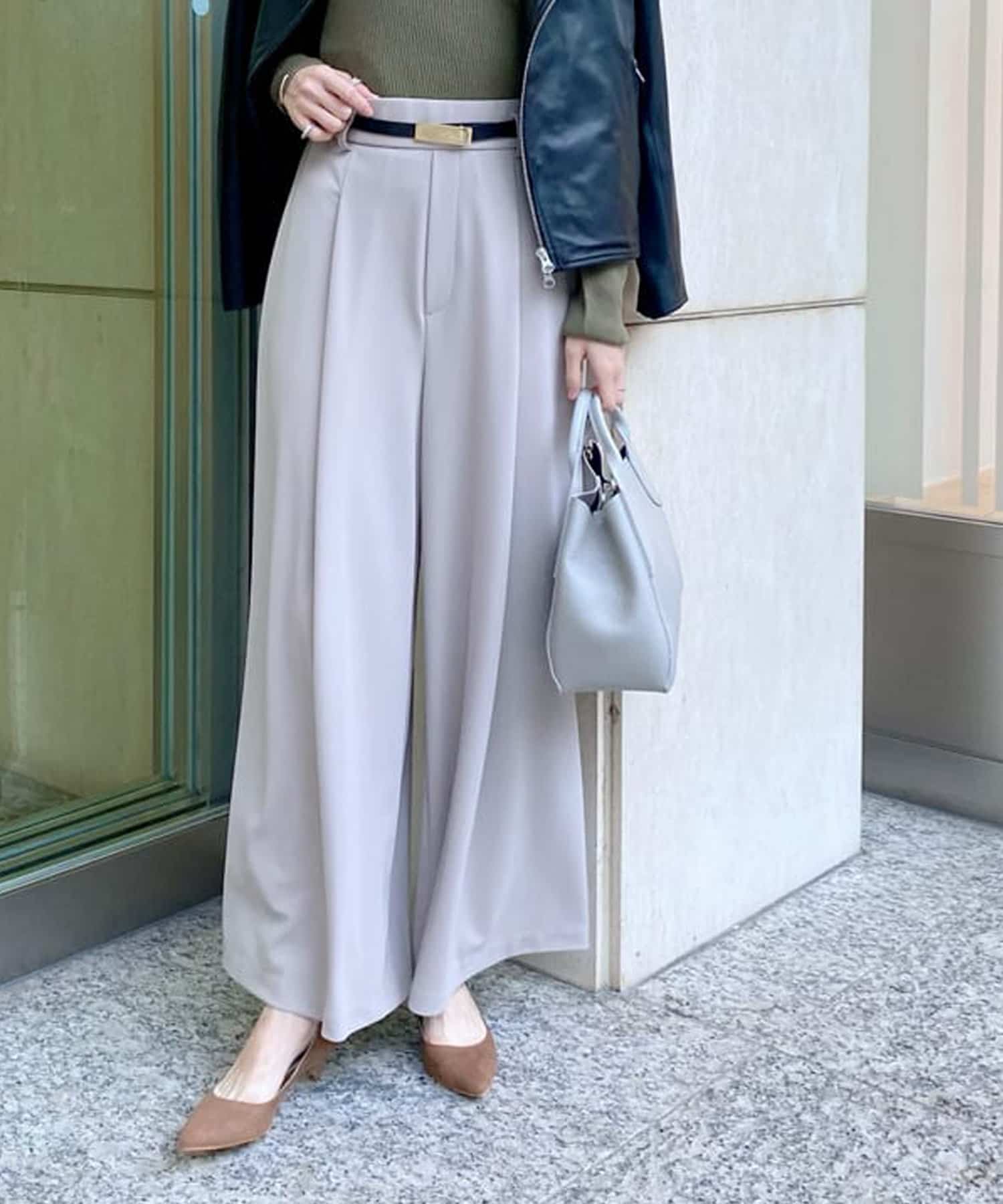【ラインを拾わない美シルエット】ベルト付ワイドパンツ