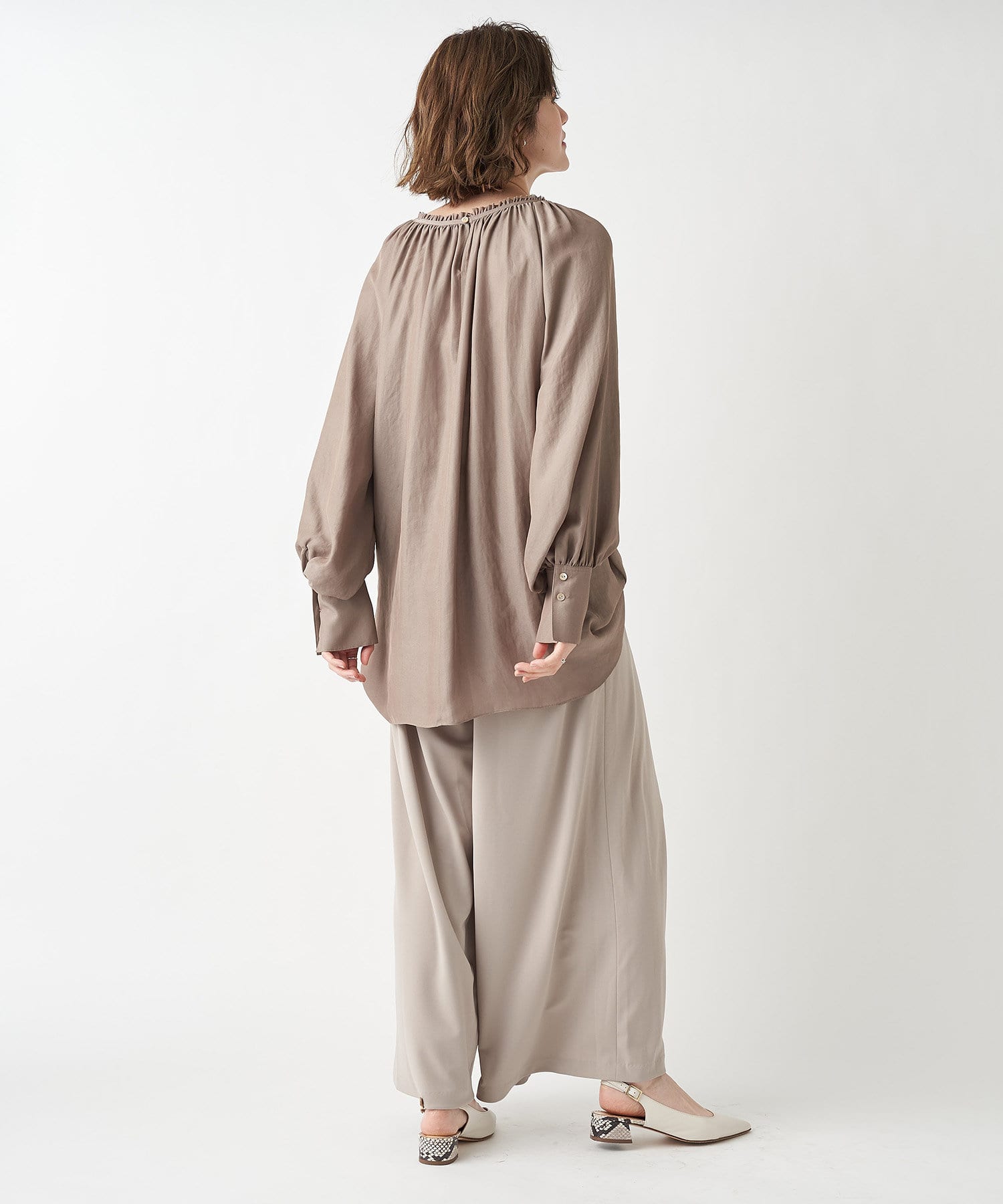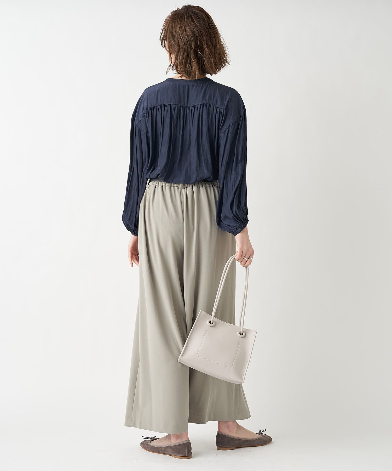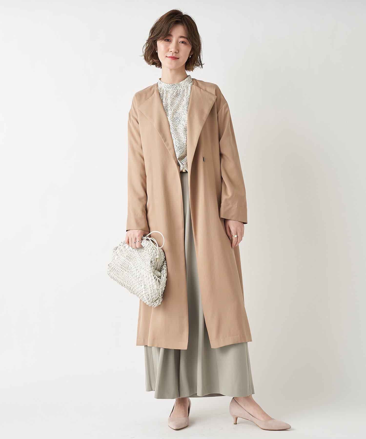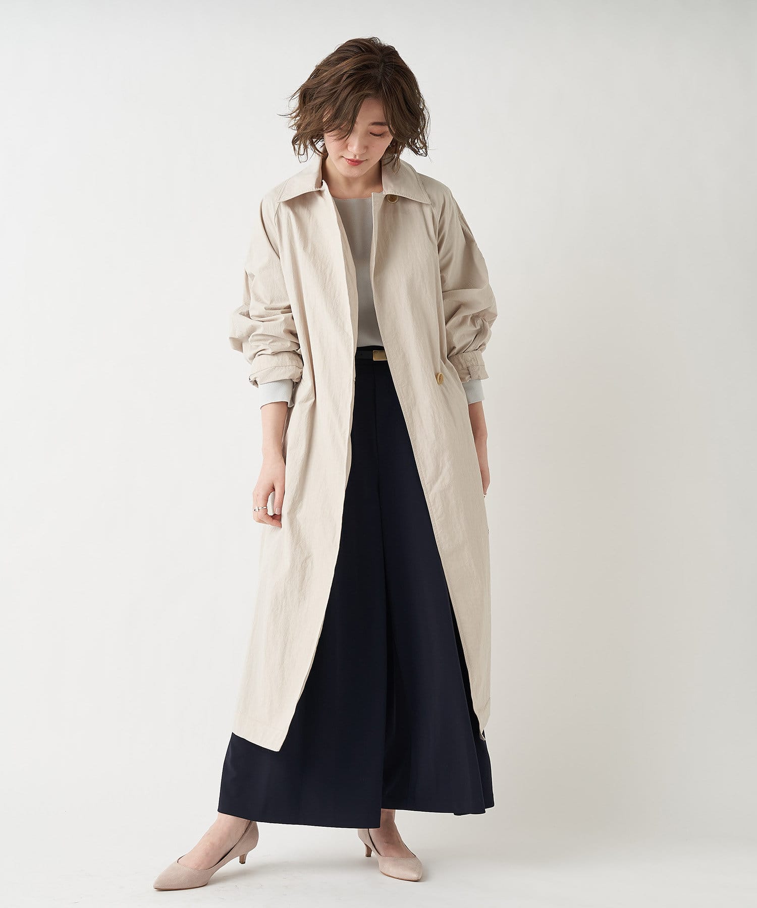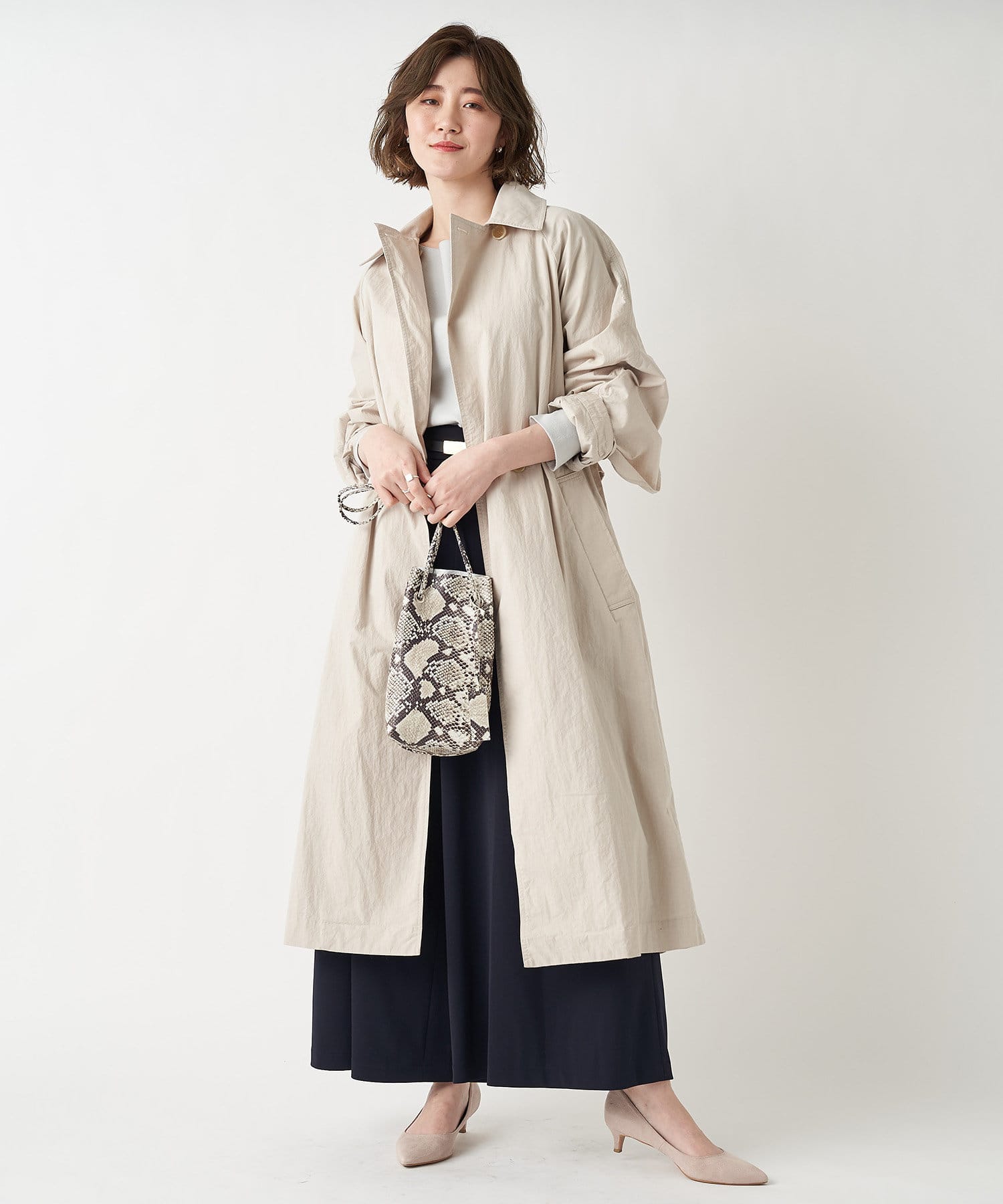 後身ベルトはゴム入りになっており、身体のラインを拾わない美シルエットでリラックススタイルにもおすすめです。