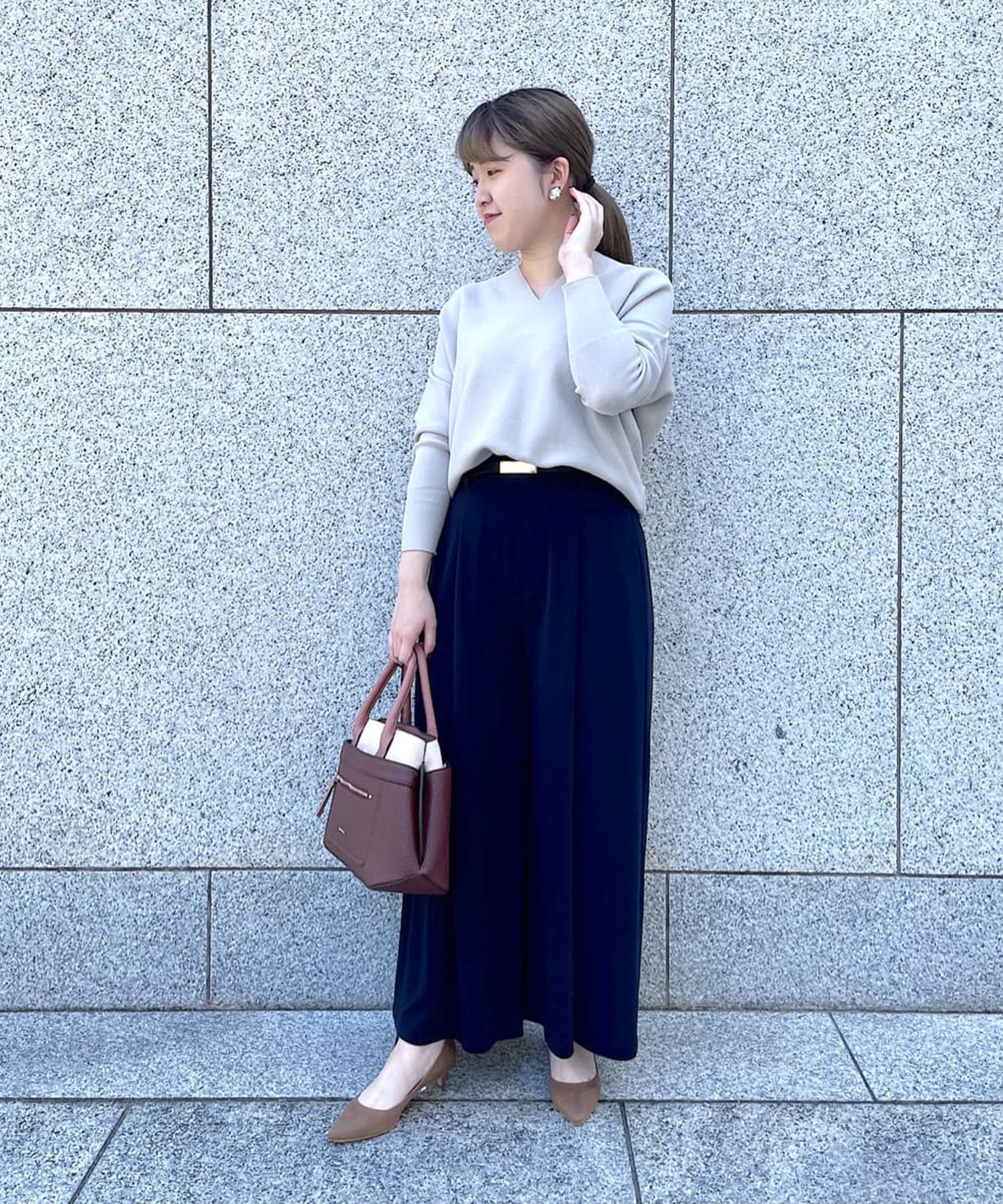 シルエットと落ち感でローヒールでも様になるのが嬉しい。