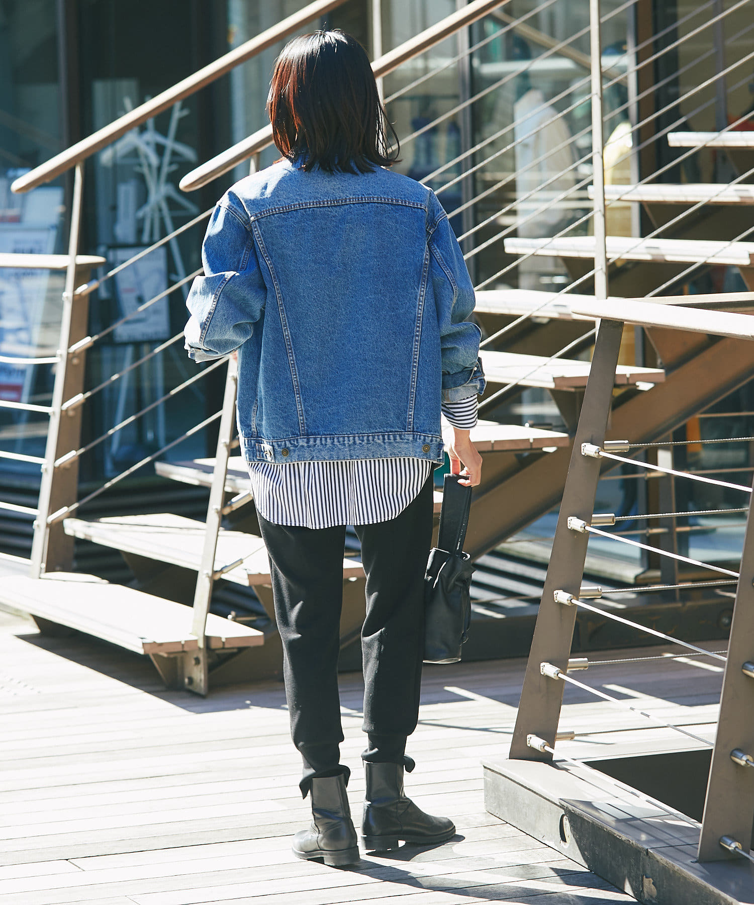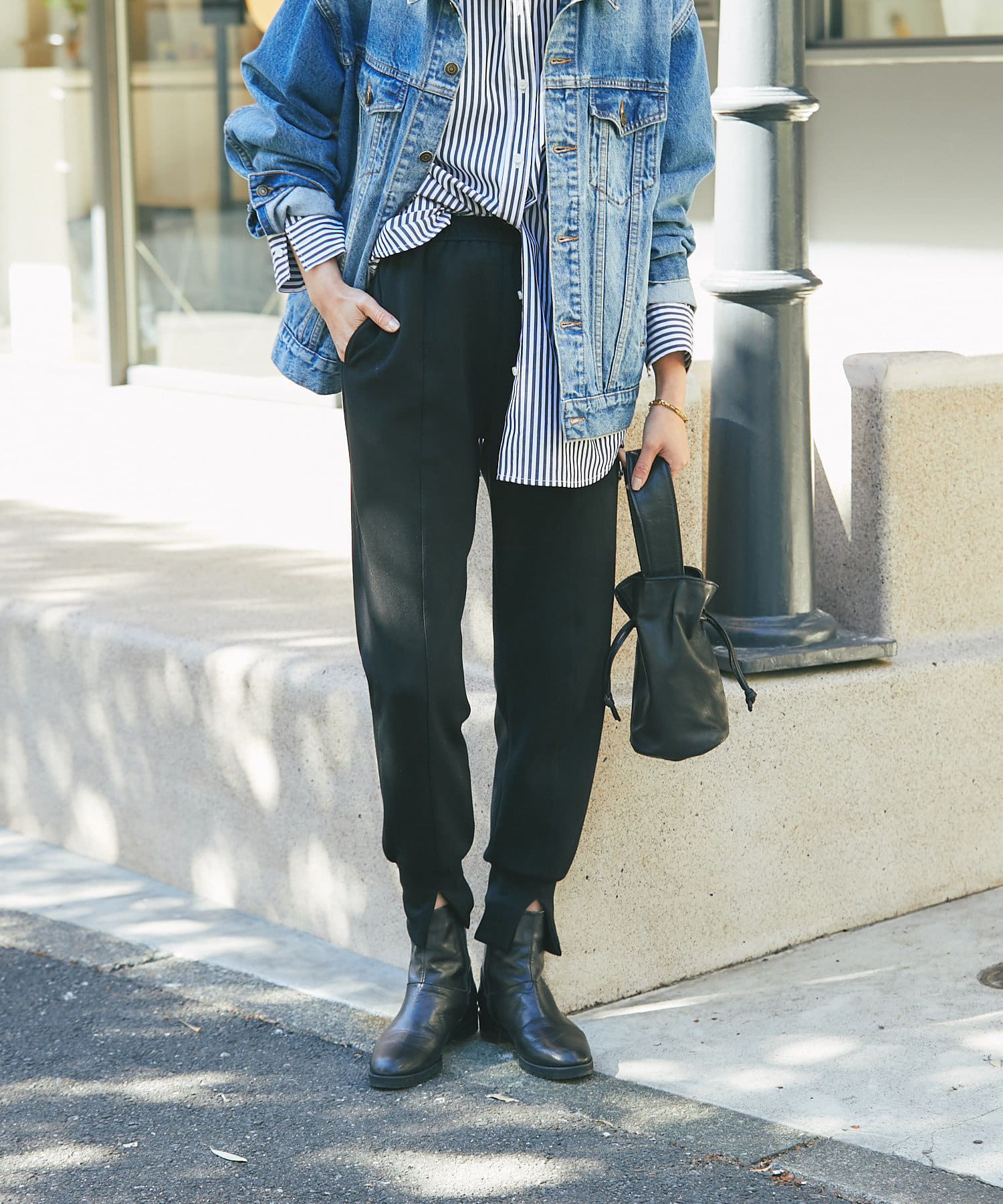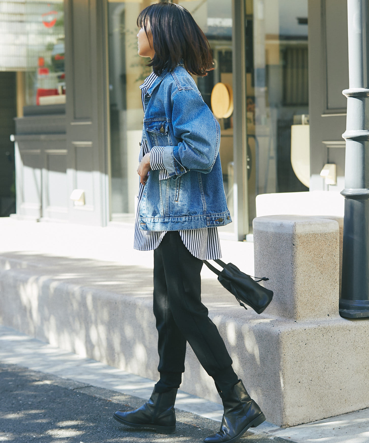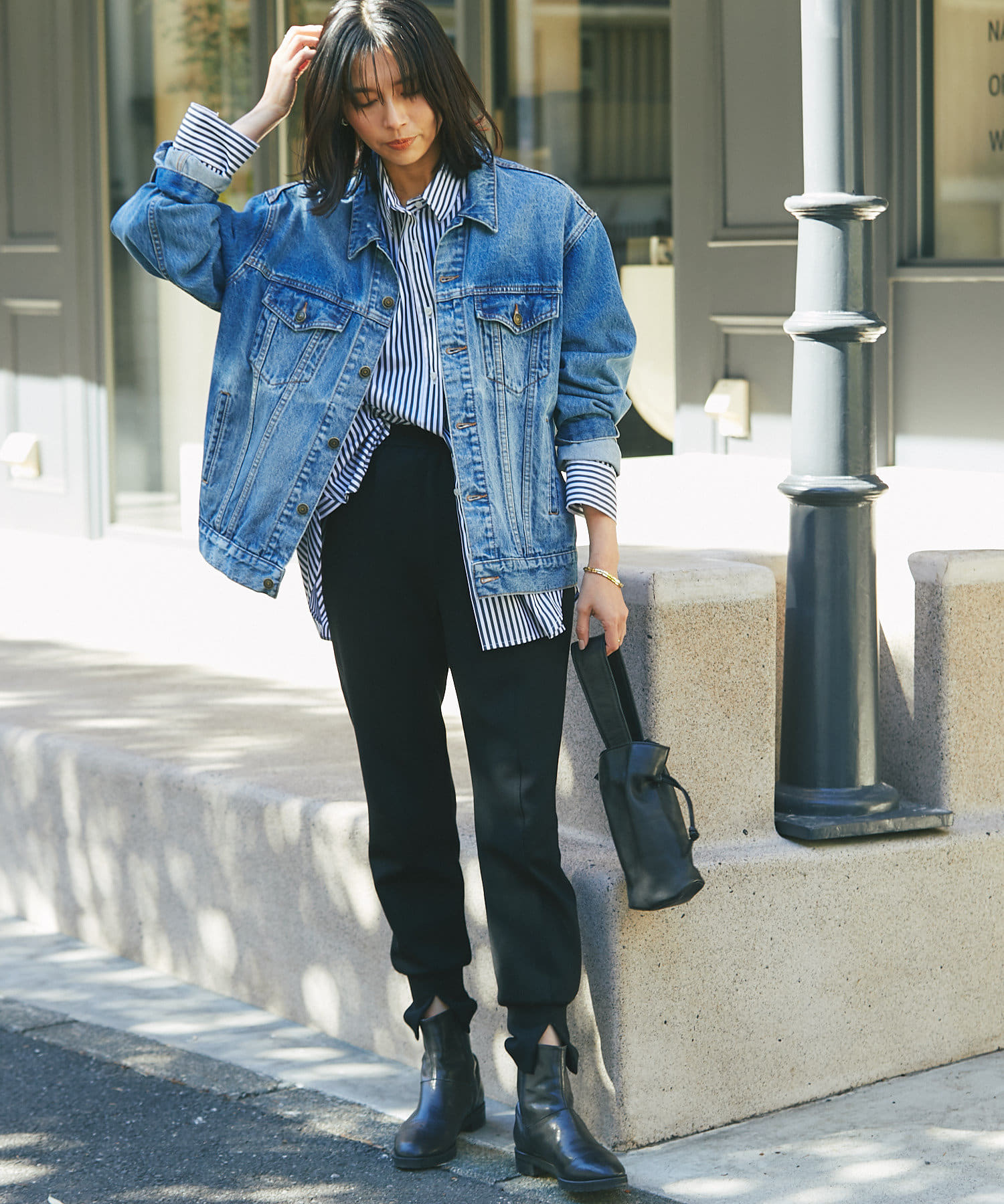 カジュアルなアイテムですが、合わせるトップスによってキレイ目にも演出できます。