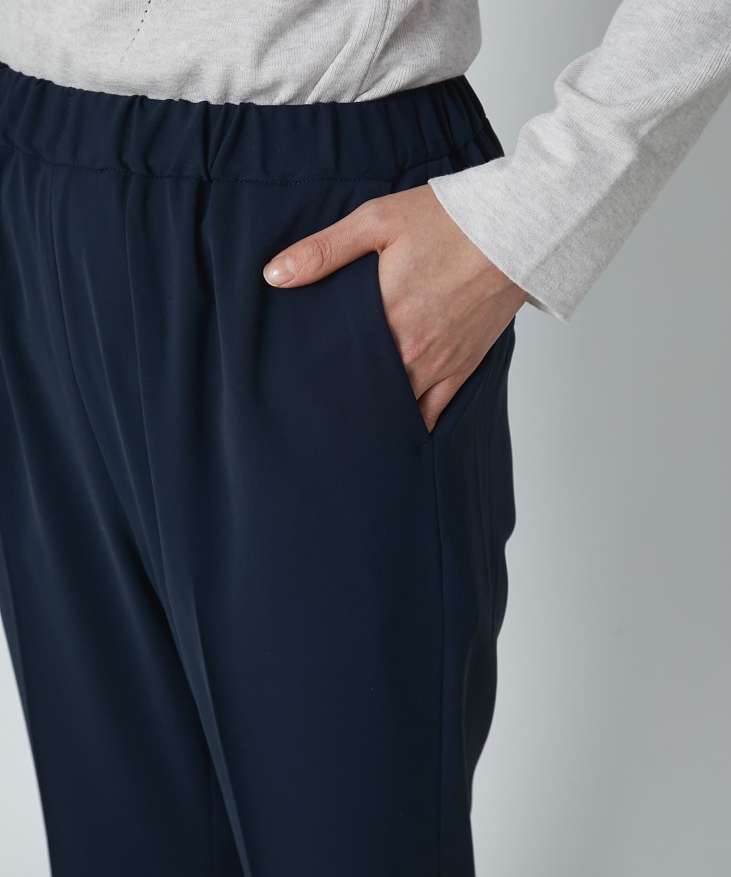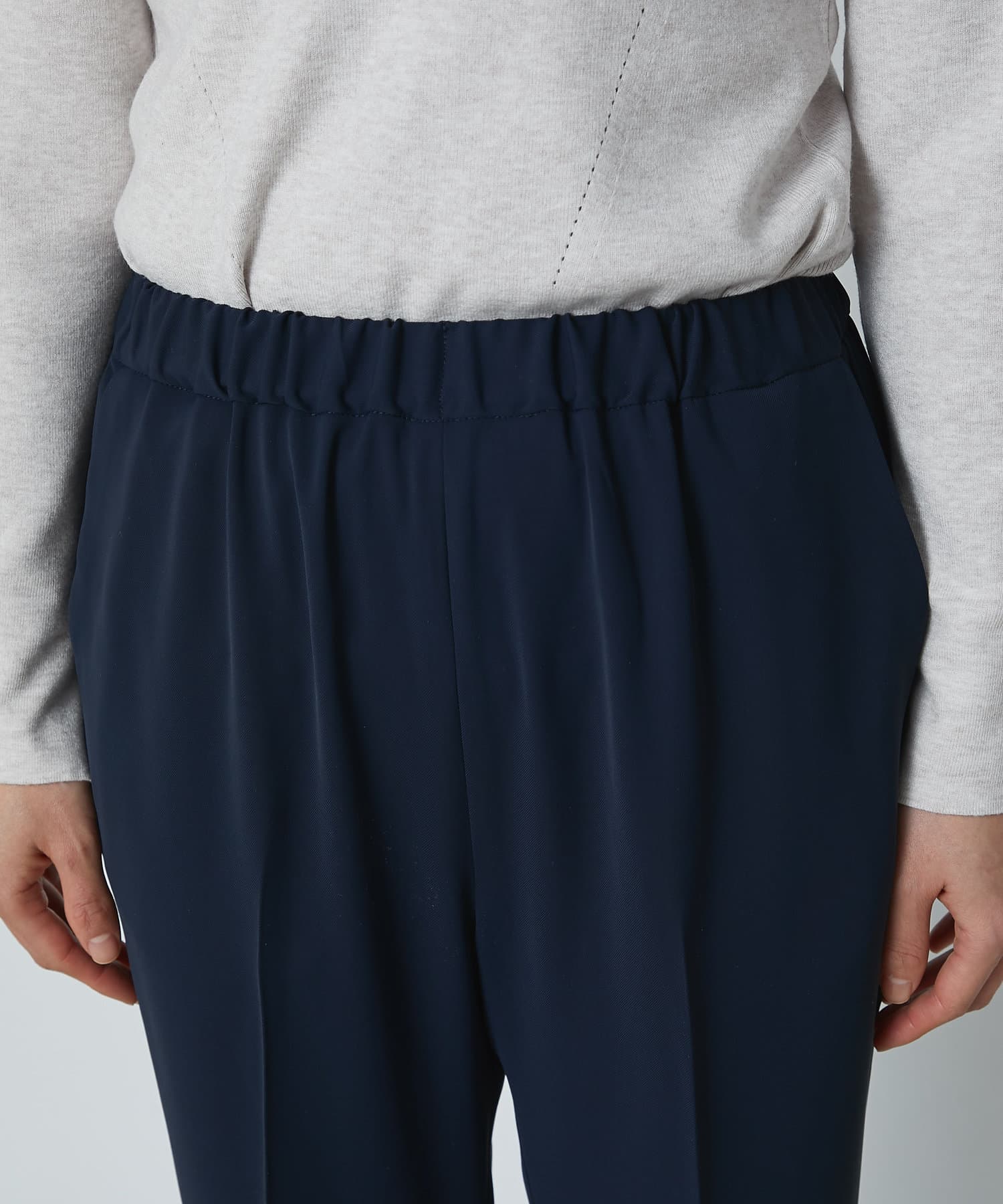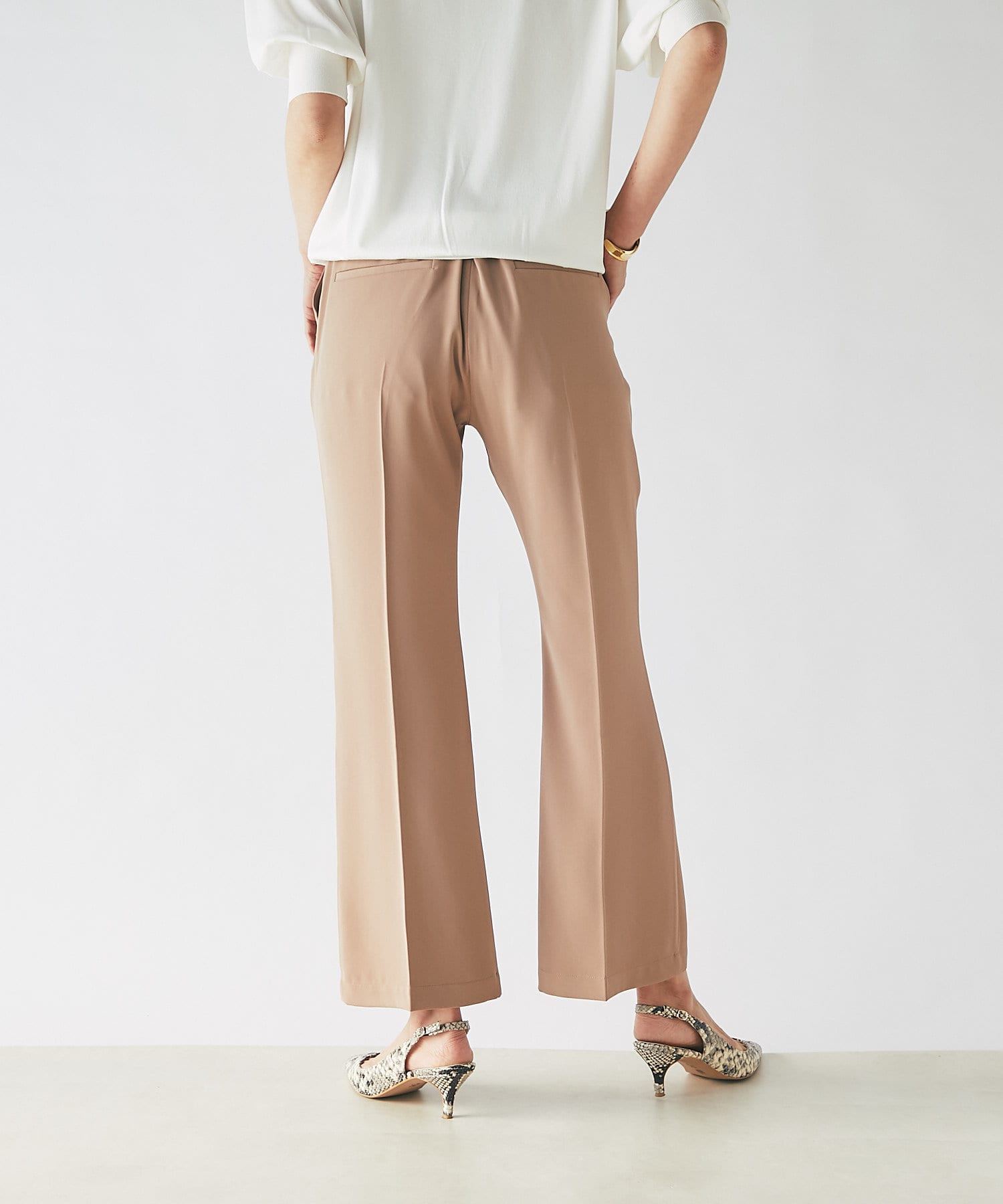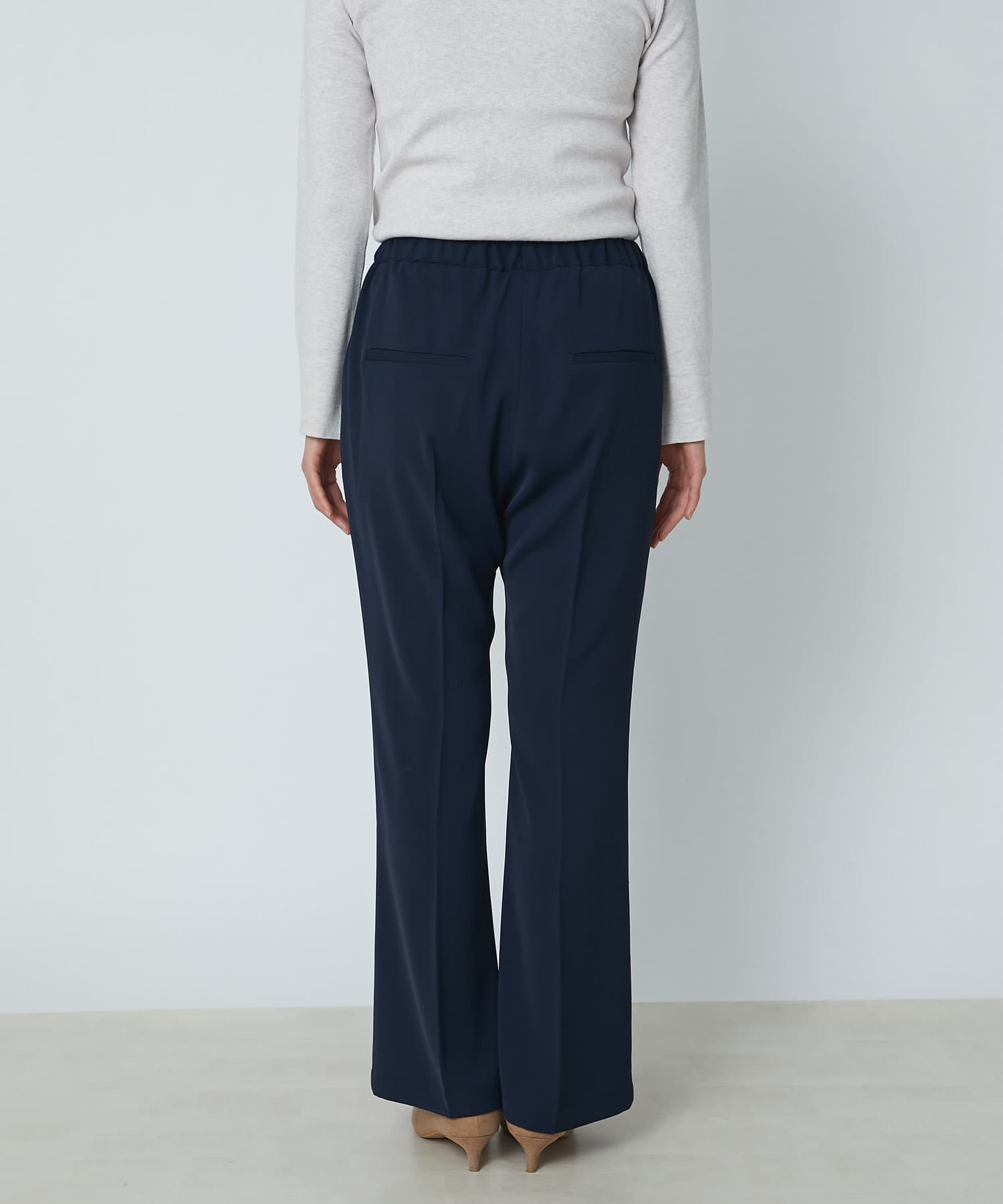 弾力と落ち感のあるポリエステル素材はすっきり見えて着心地もよくおすすめです◎センタープレスがスタイルUP効果をプラスしてくれます。裾に向かって広がっていくシルエットで美脚効果とトレンドを演出。