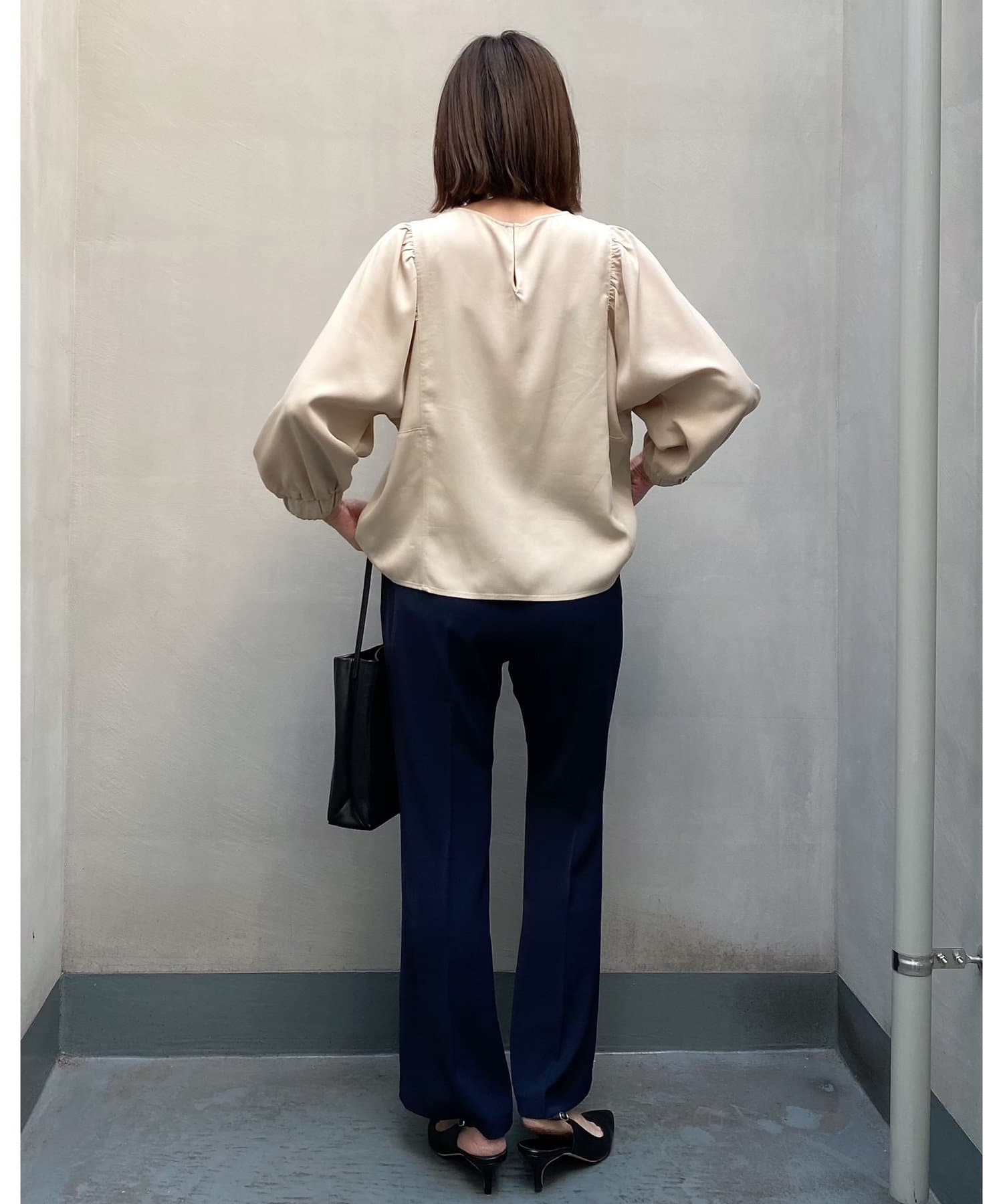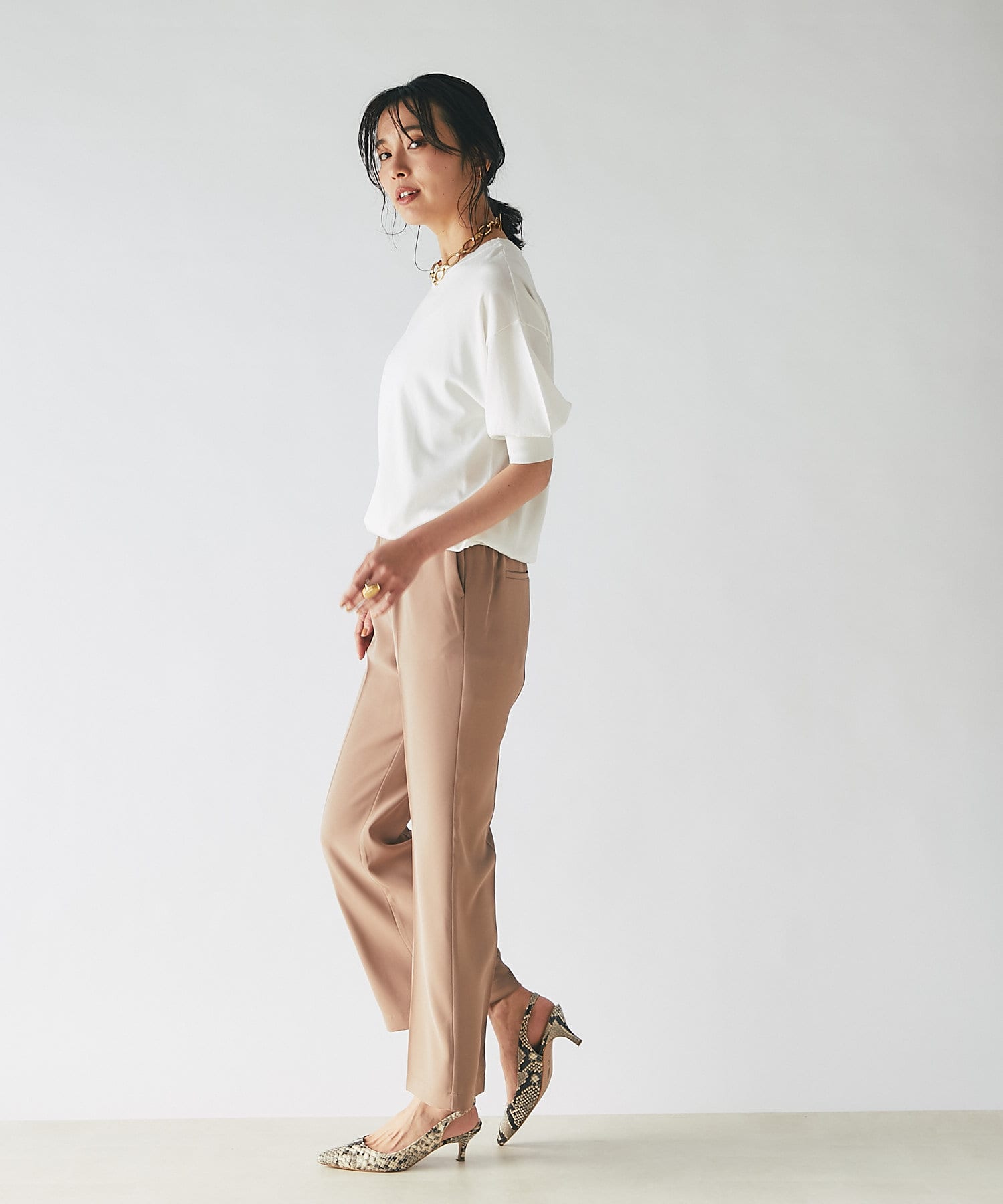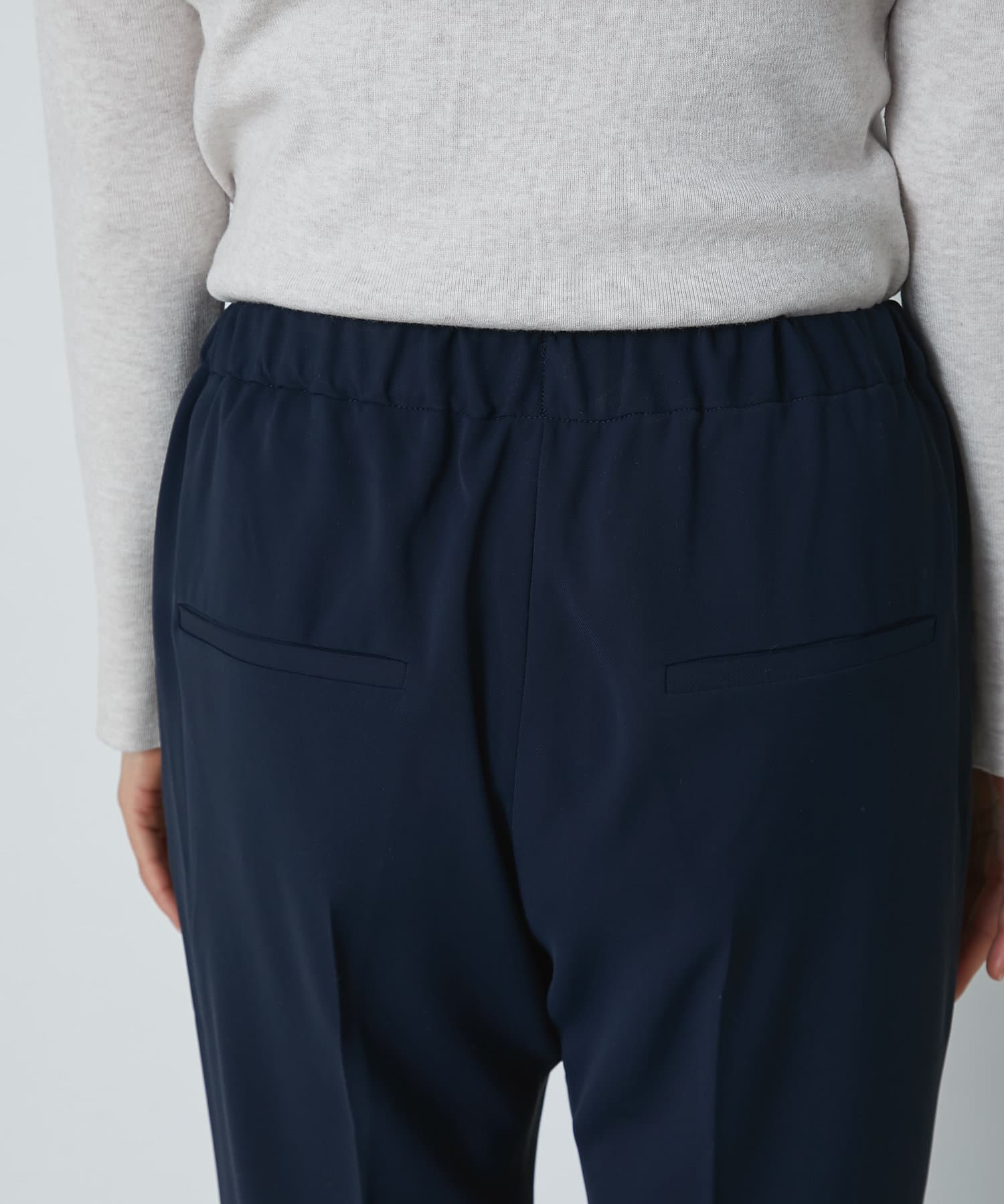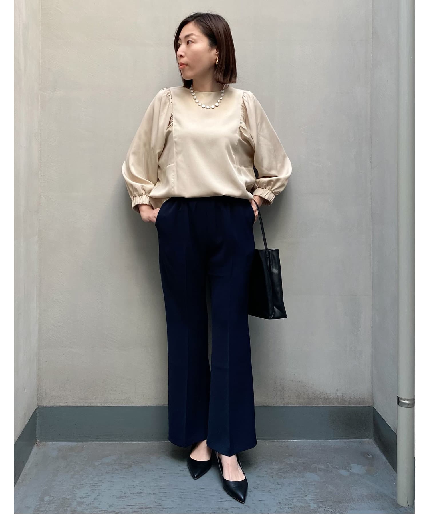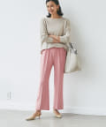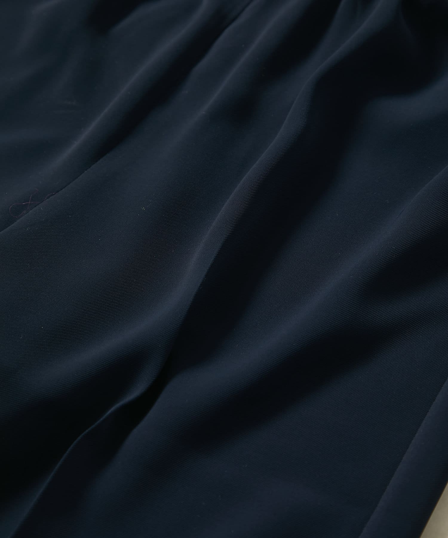 弾力と落ち感のあるポリエステル素材はすっきり見えて着心地もよくおすすめです◎センタープレスがスタイルUP効果をプラスしてくれます。裾に向かって広がっていくシルエットで美脚効果とトレンドを演出。