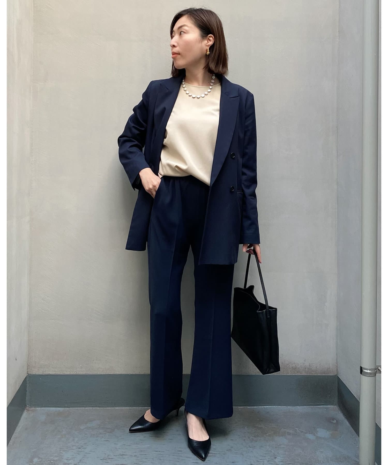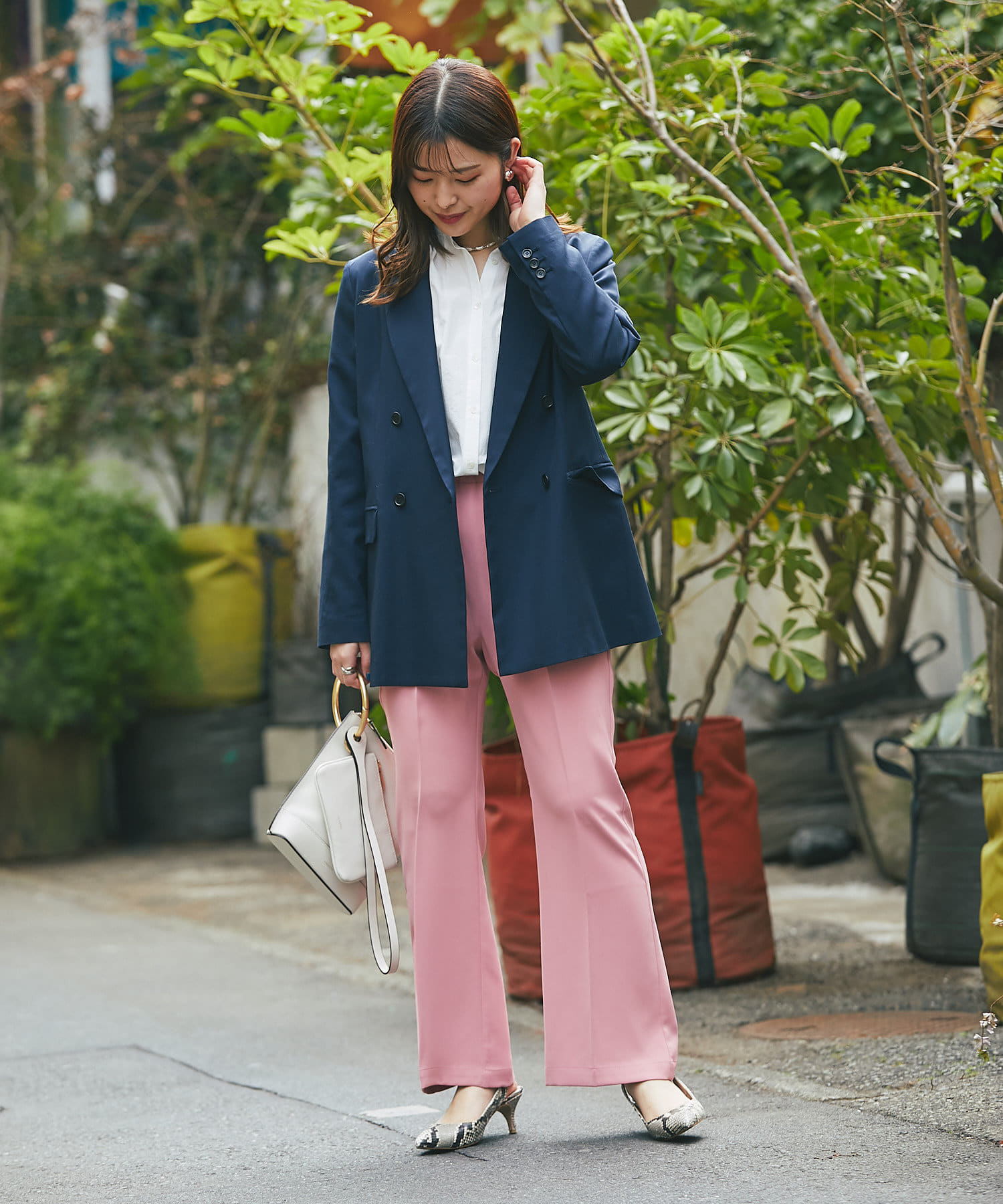 トレンドのカラーアイテムはシンプルコーデのアクセントに。ジャケットに合わせてキレイ目コーデにも取り入れていただけます。