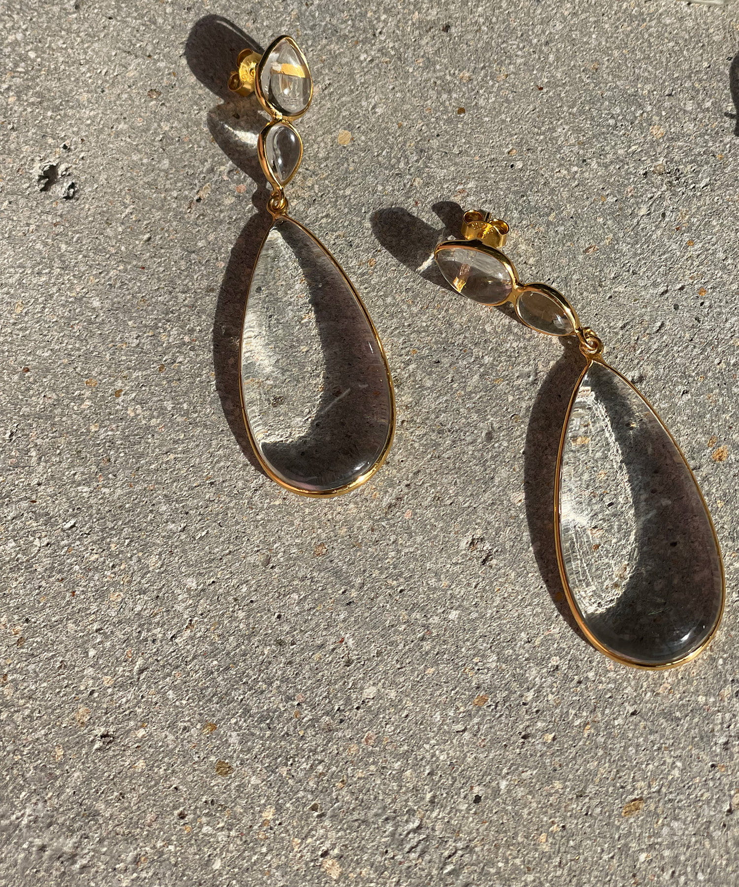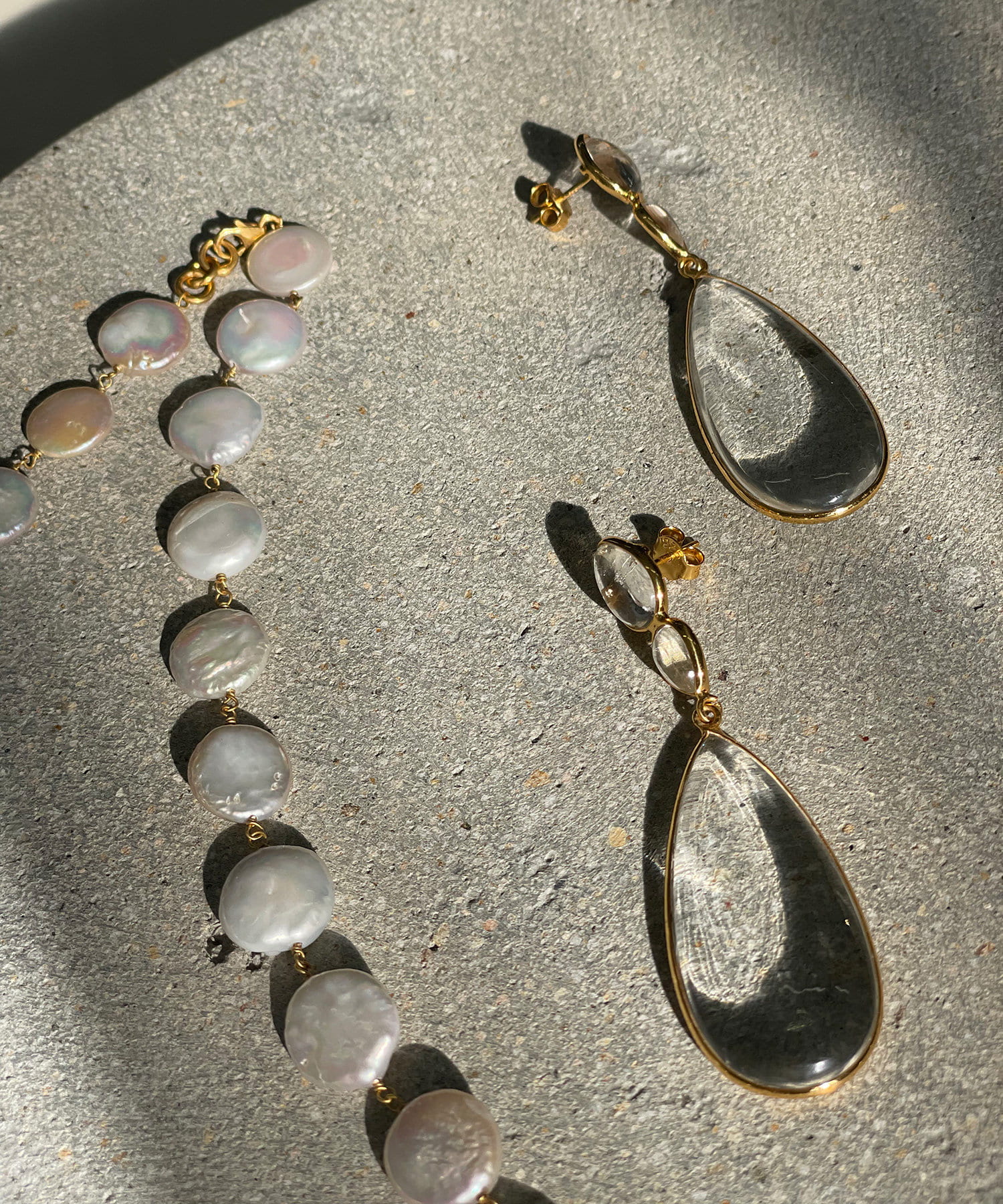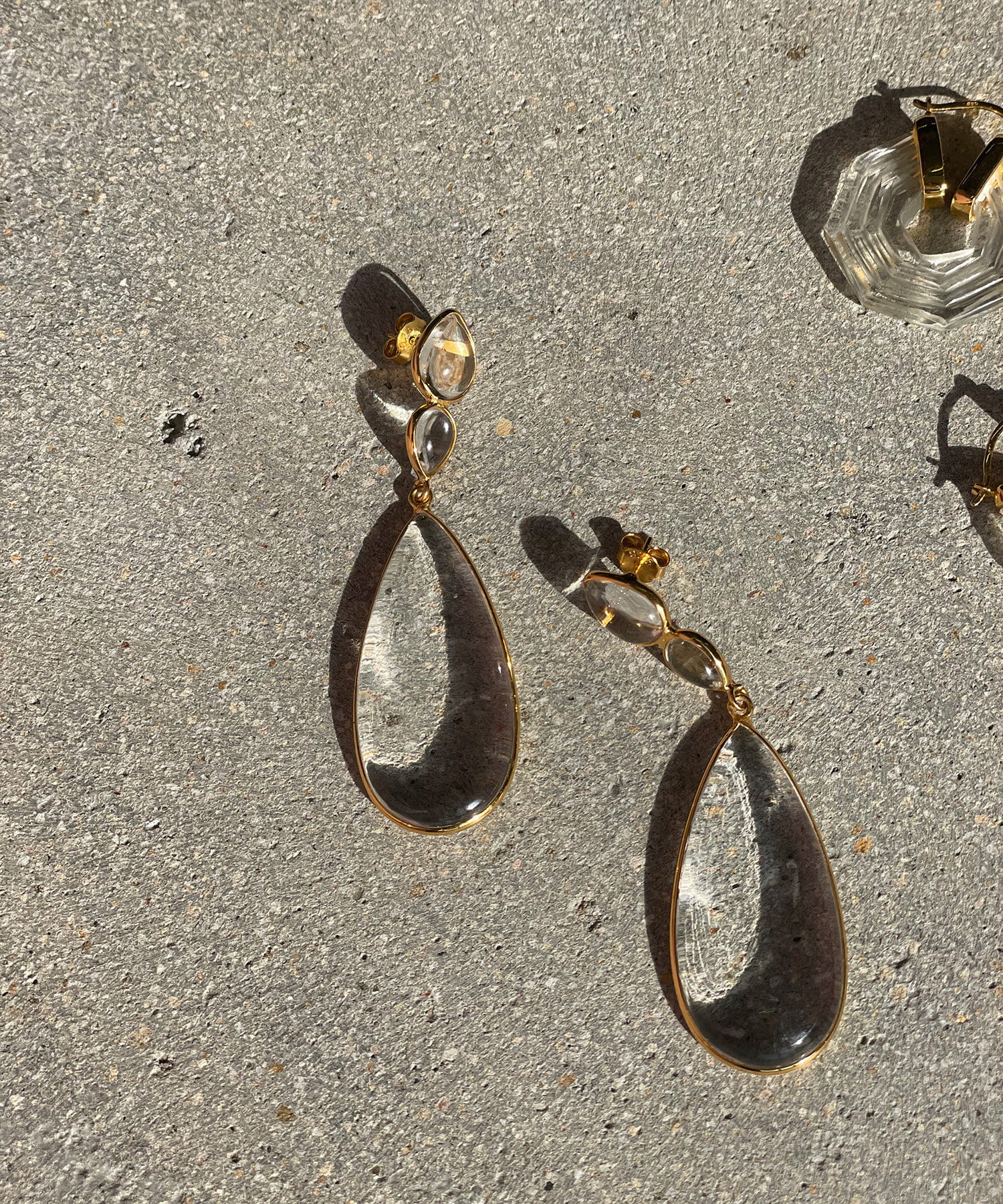 シンプルなワードローブにこそ、存在感のあるピアスは