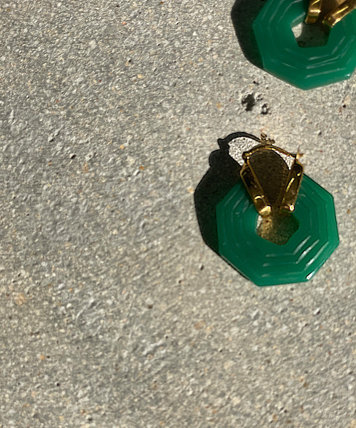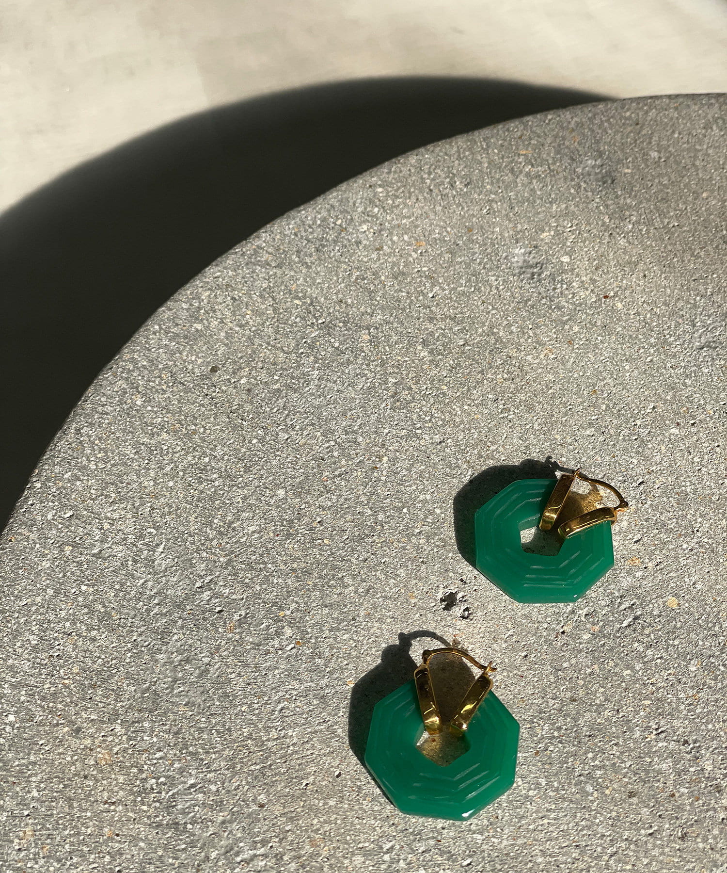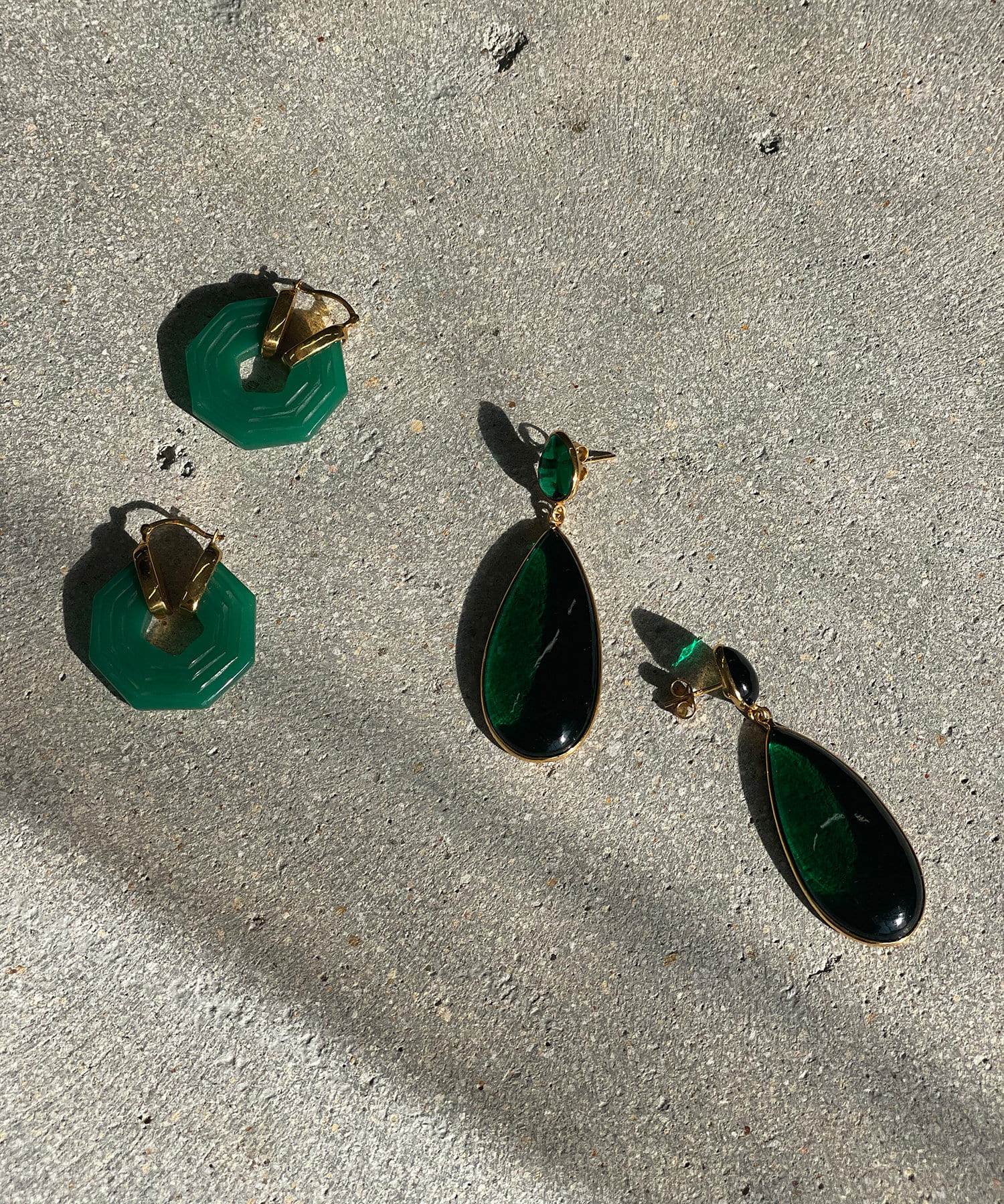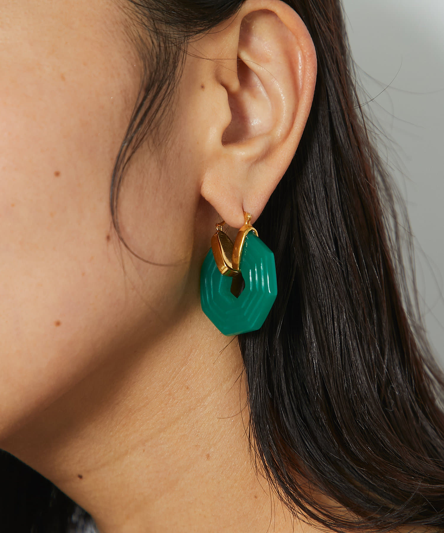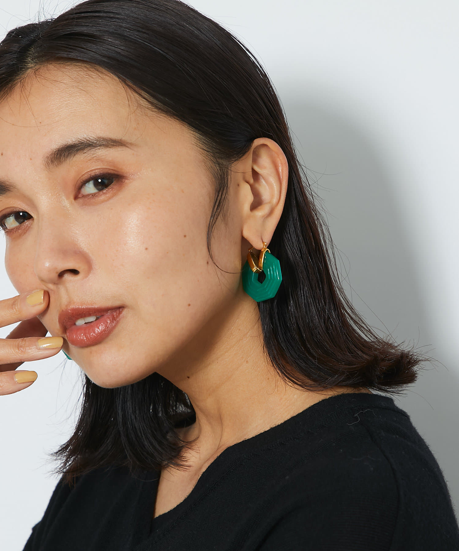 トレンドのグリーンカラーは耳元にさりげなく取り入れることで