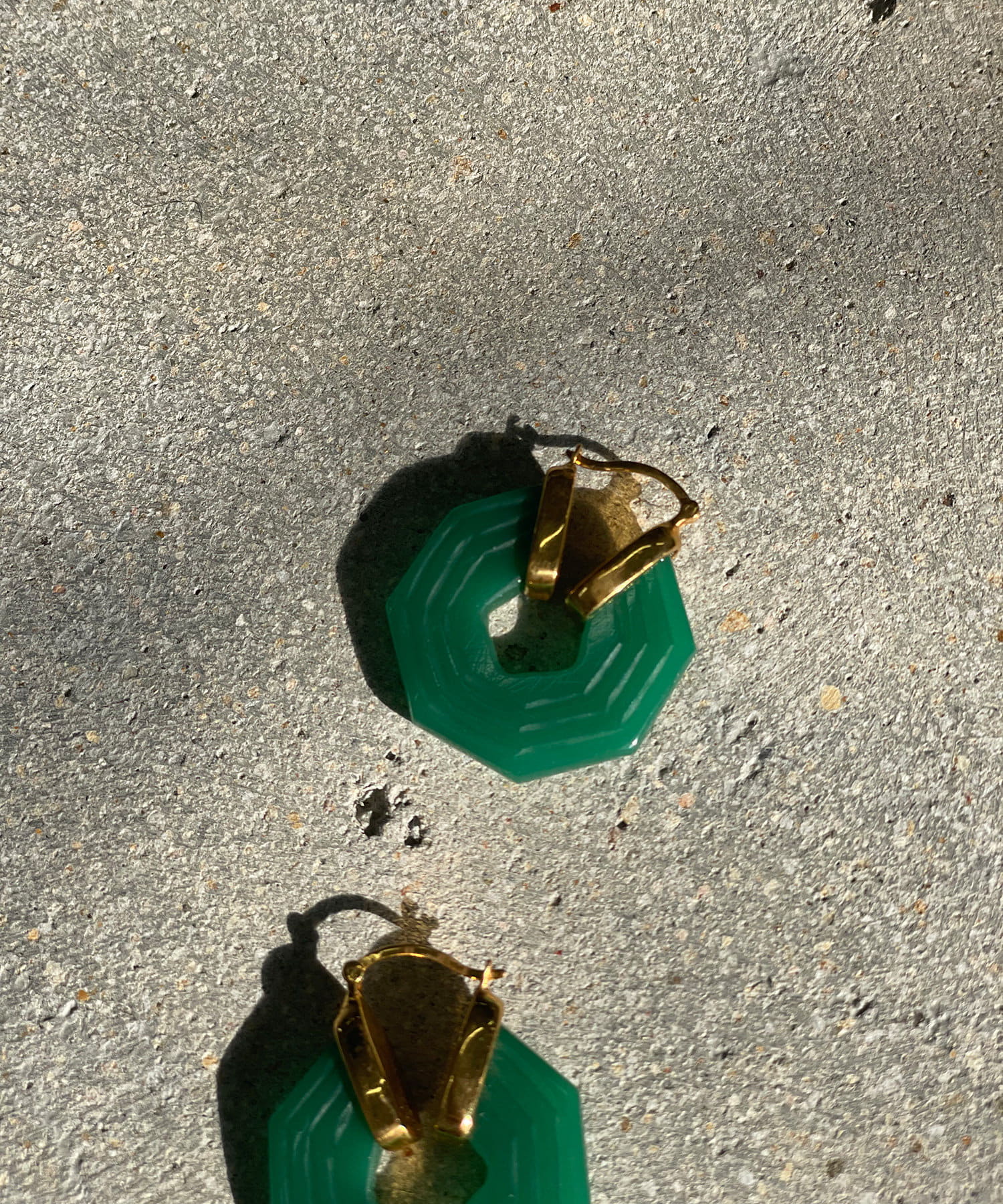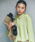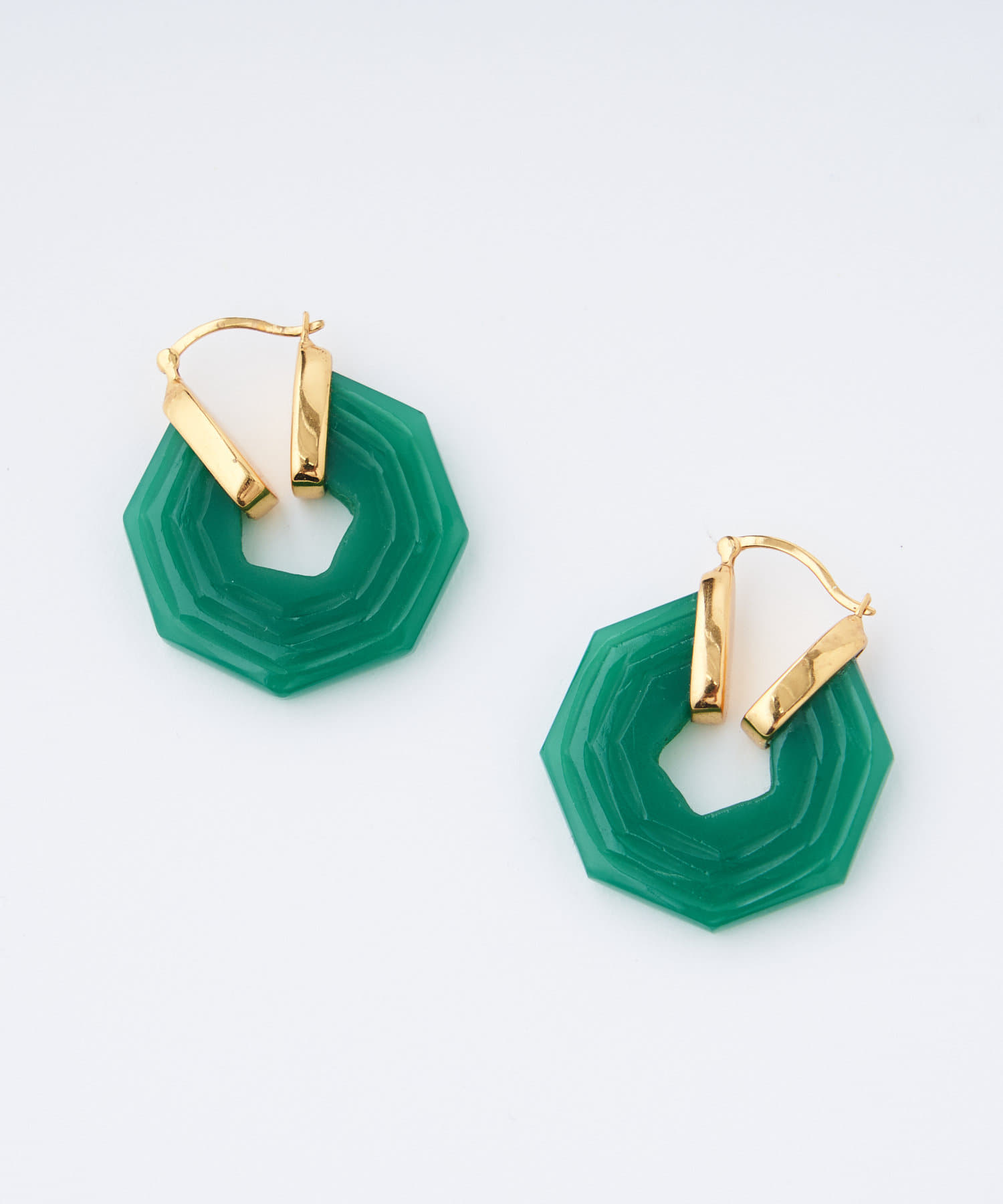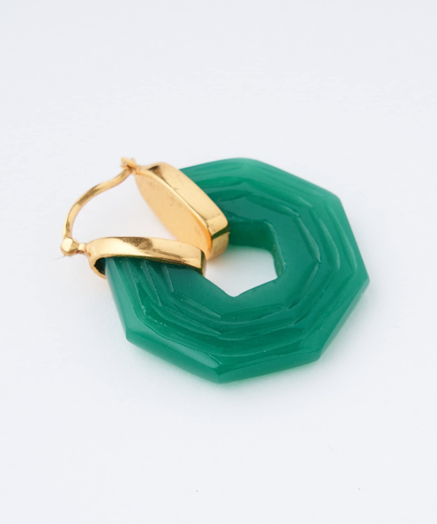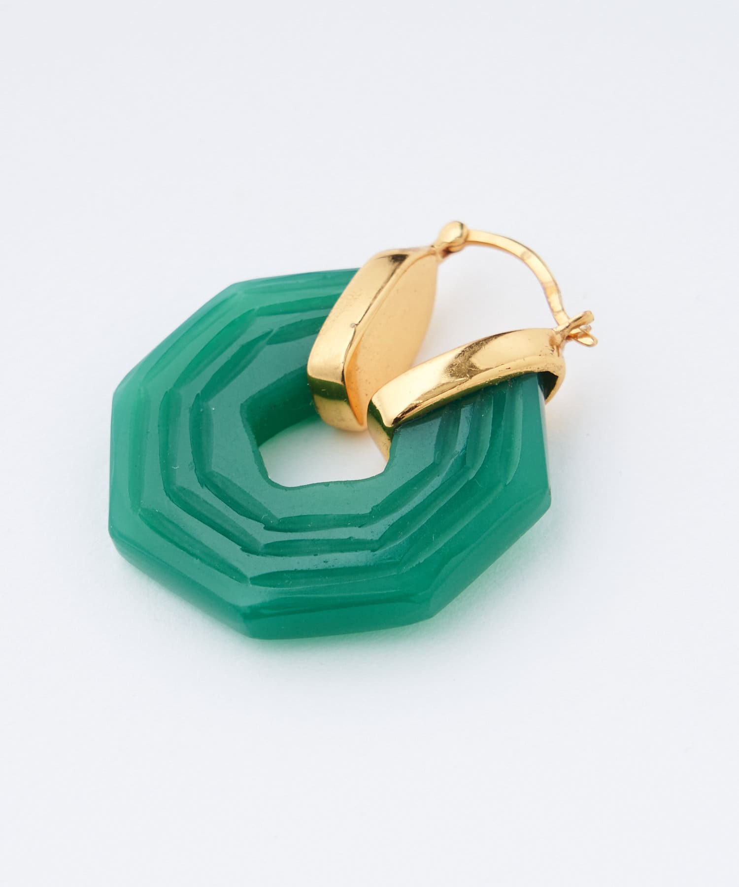 トレンドのグリーンカラーは耳元にさりげなく取り入れることで