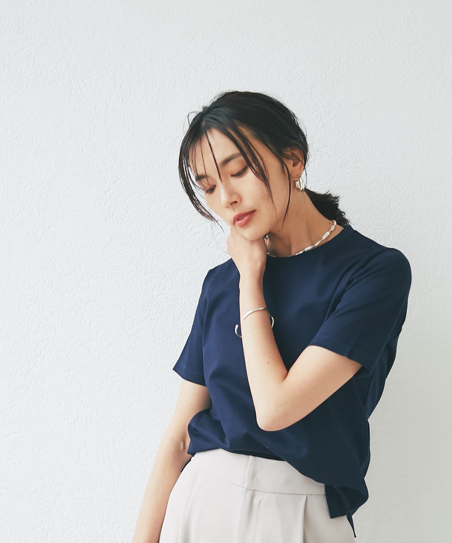 単品はもちろん、どんなアクセとも好相性なので重ね付けにもおすすめ。