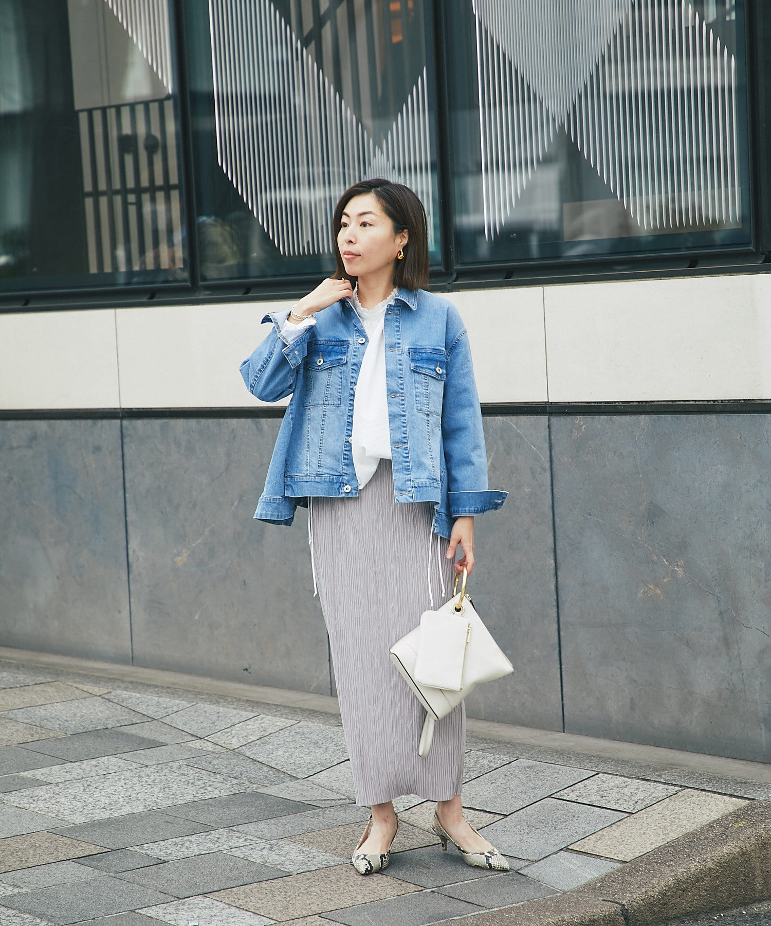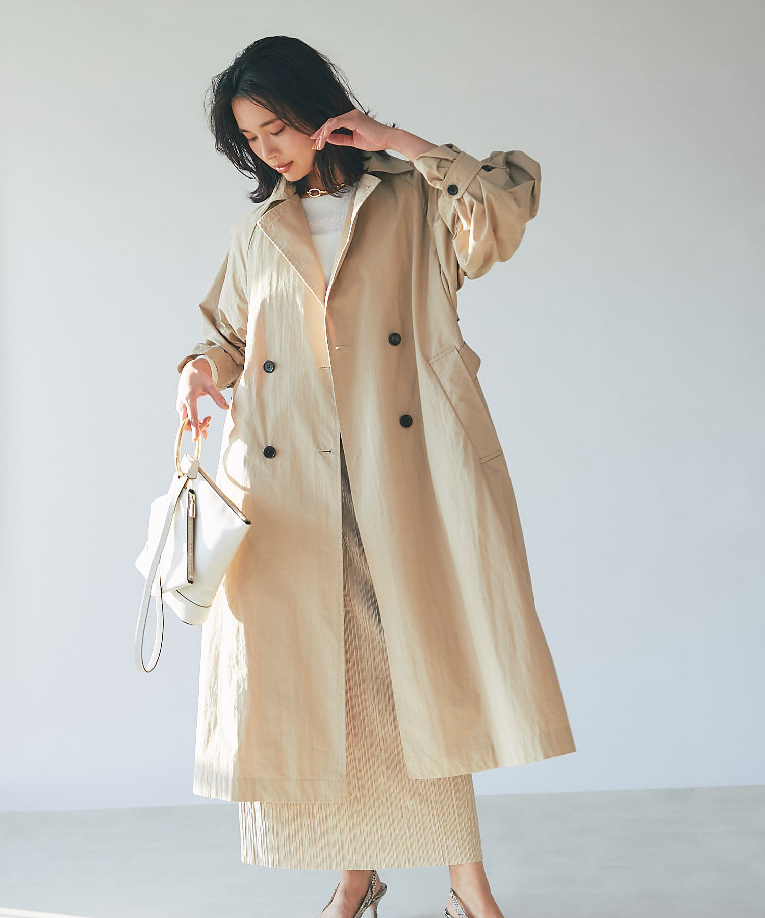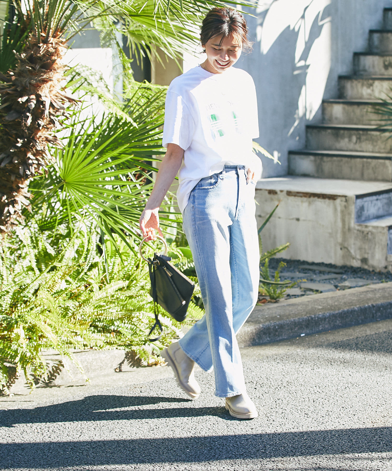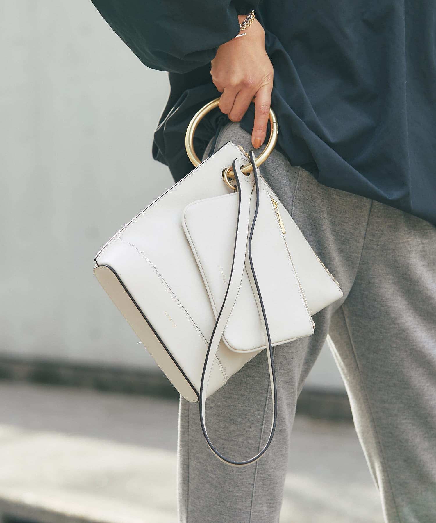 きれい見えするバッグなので、大人カジュアルスタイルにおすすめです。