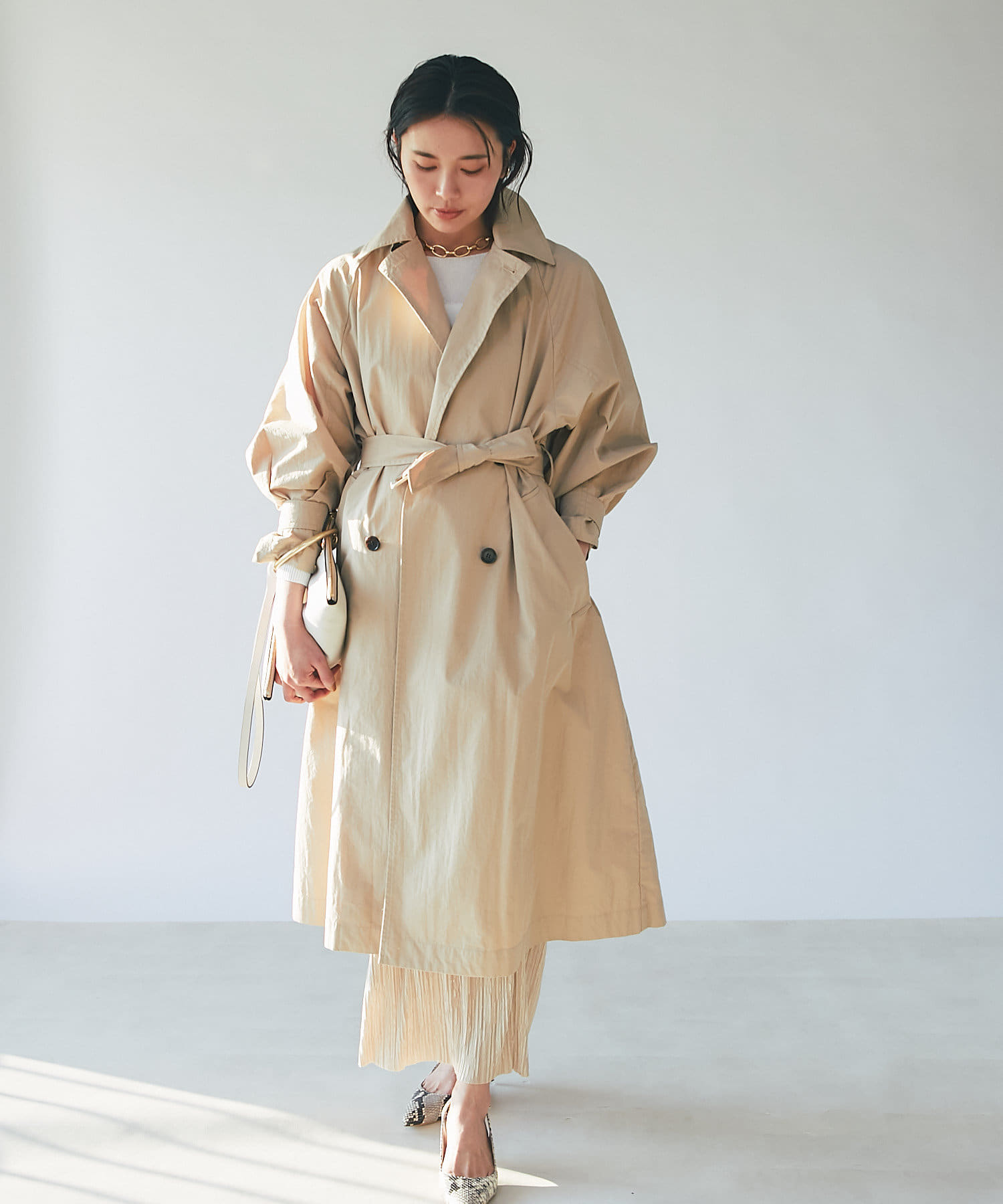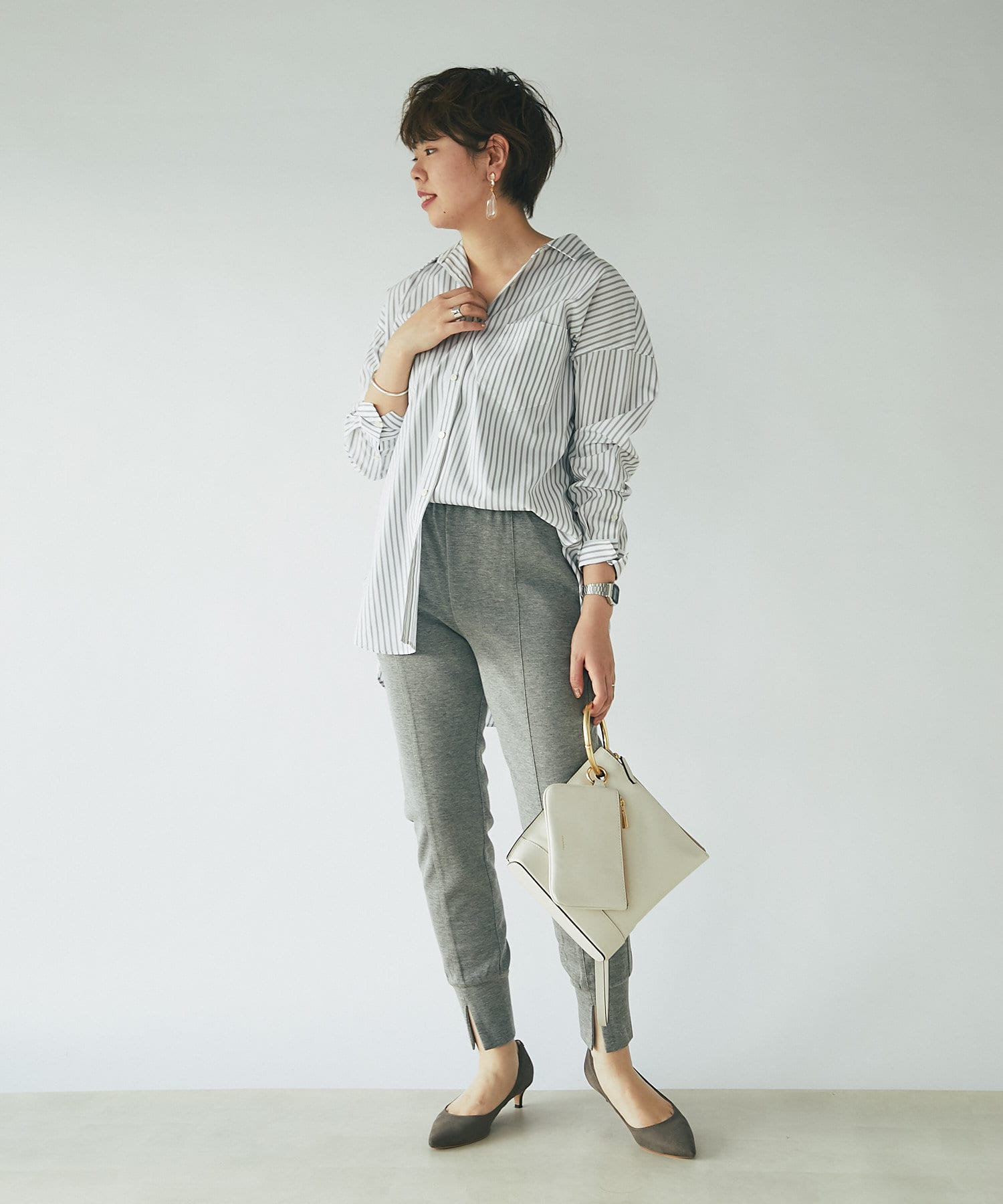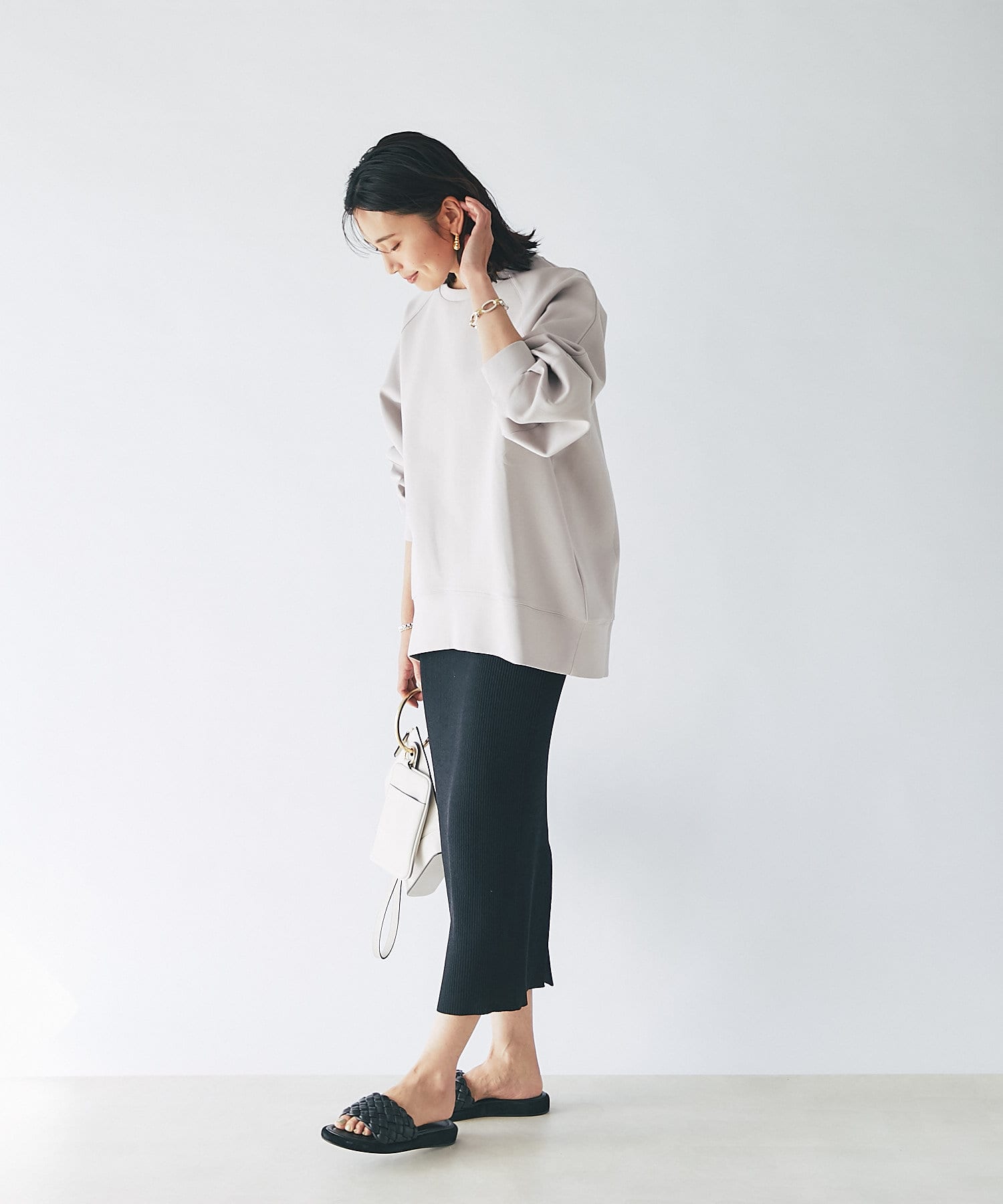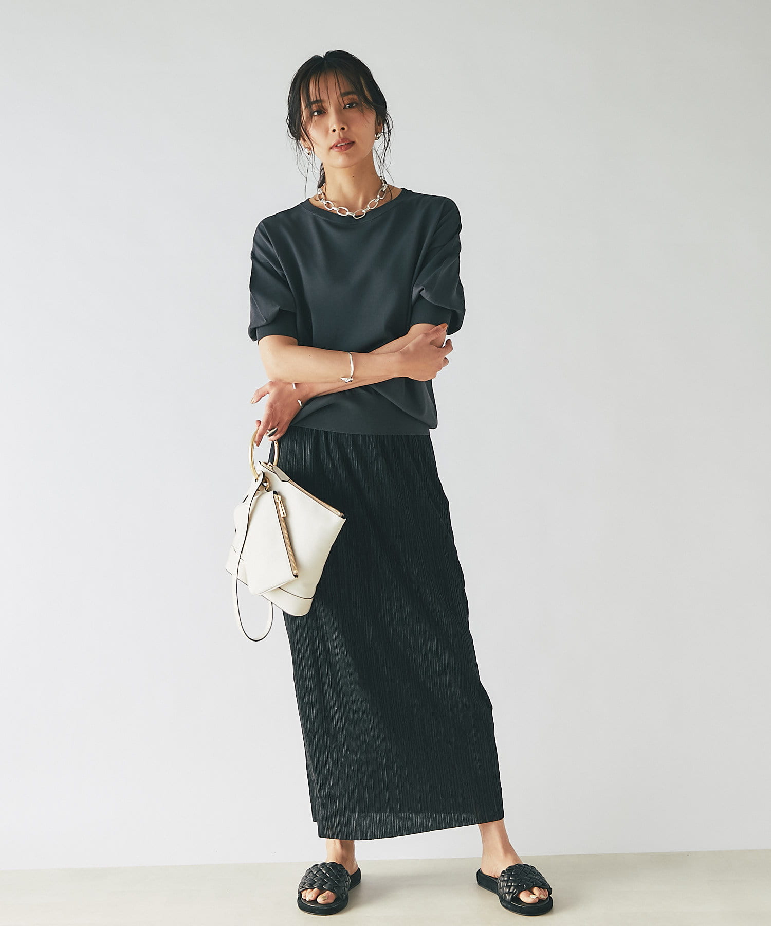 きれい見えするバッグなので、大人カジュアルスタイルにおすすめです。