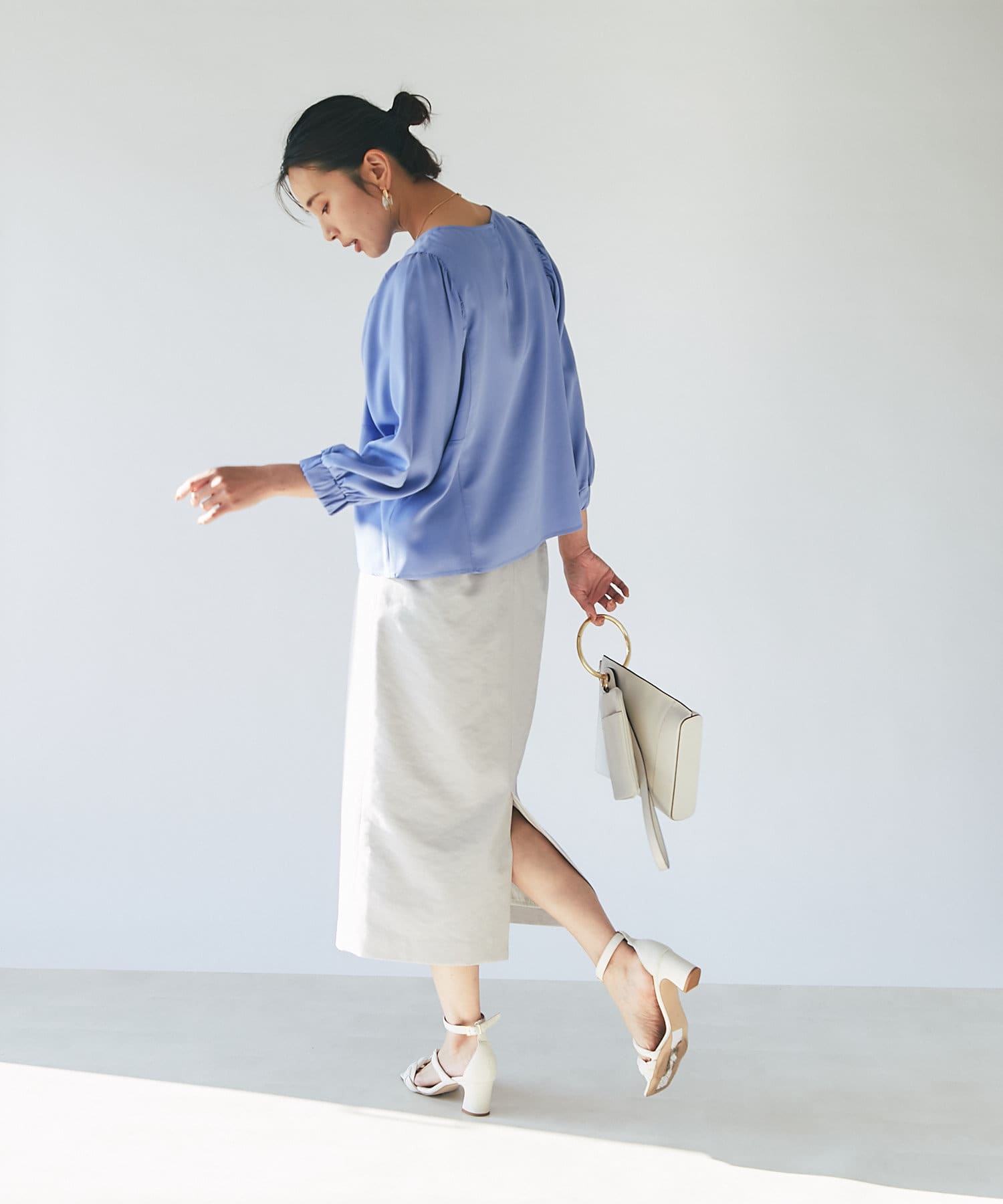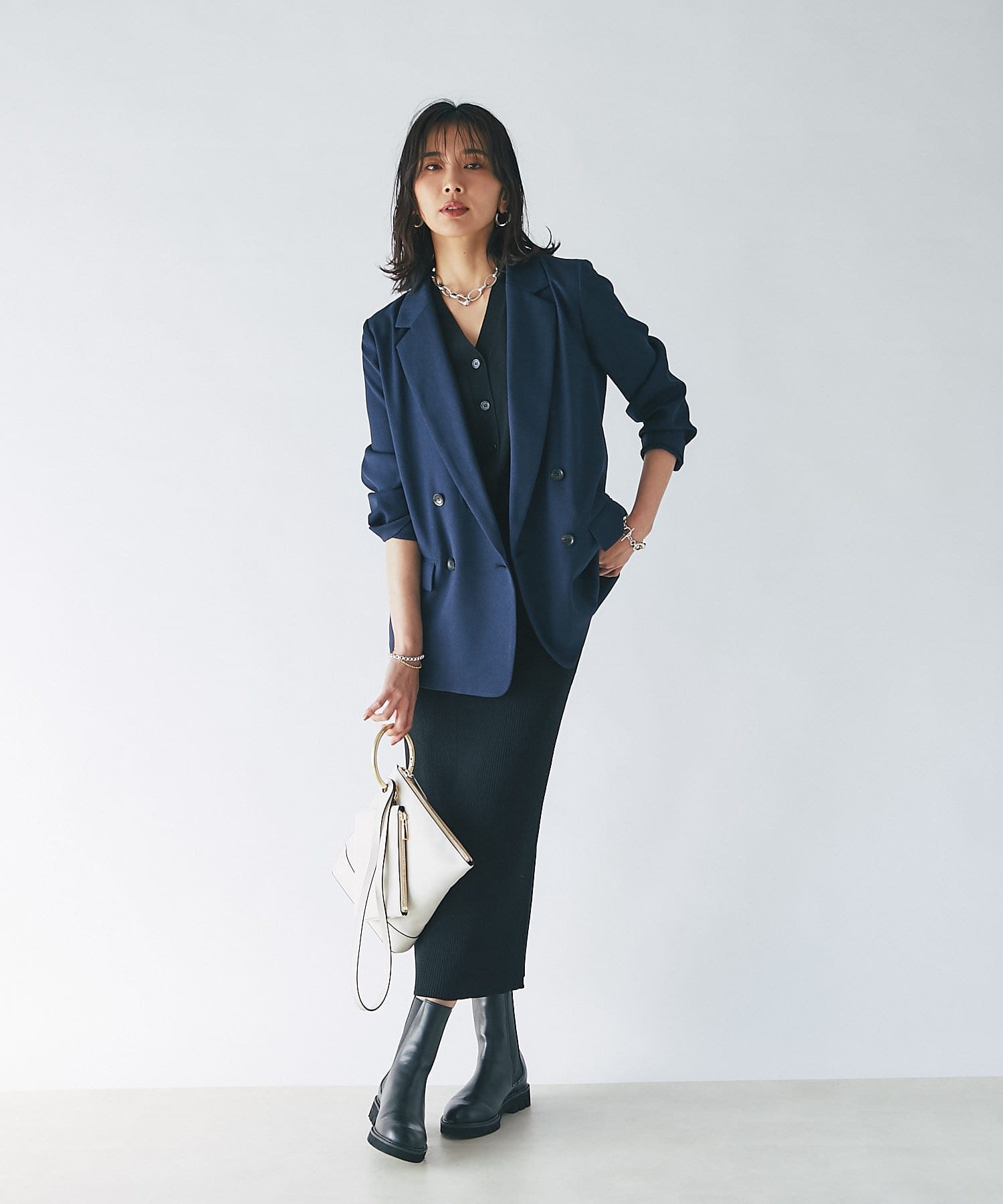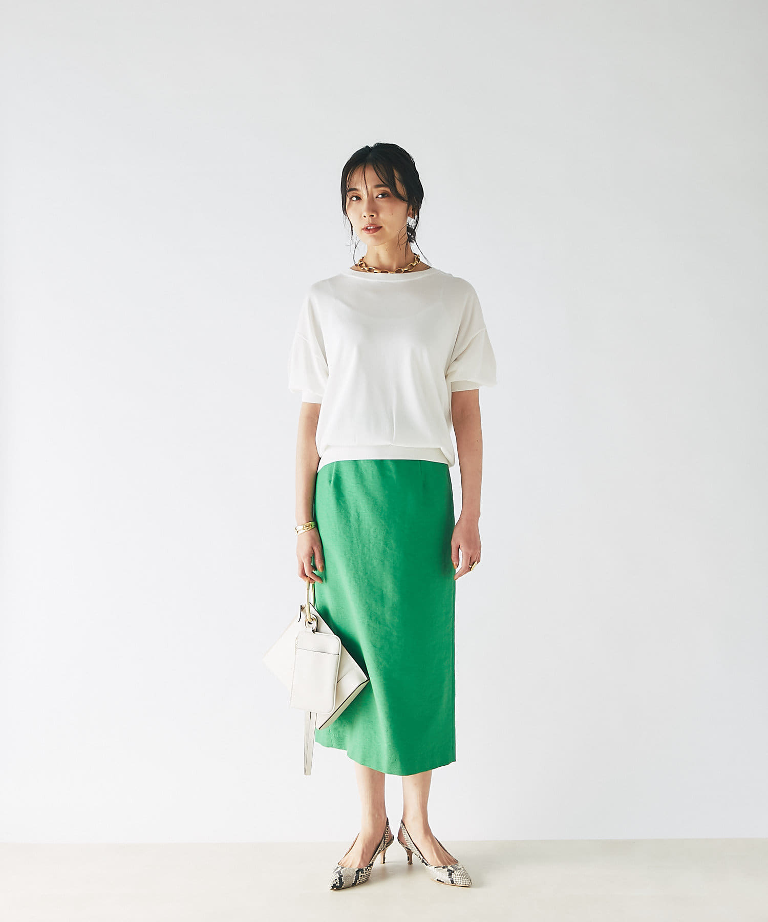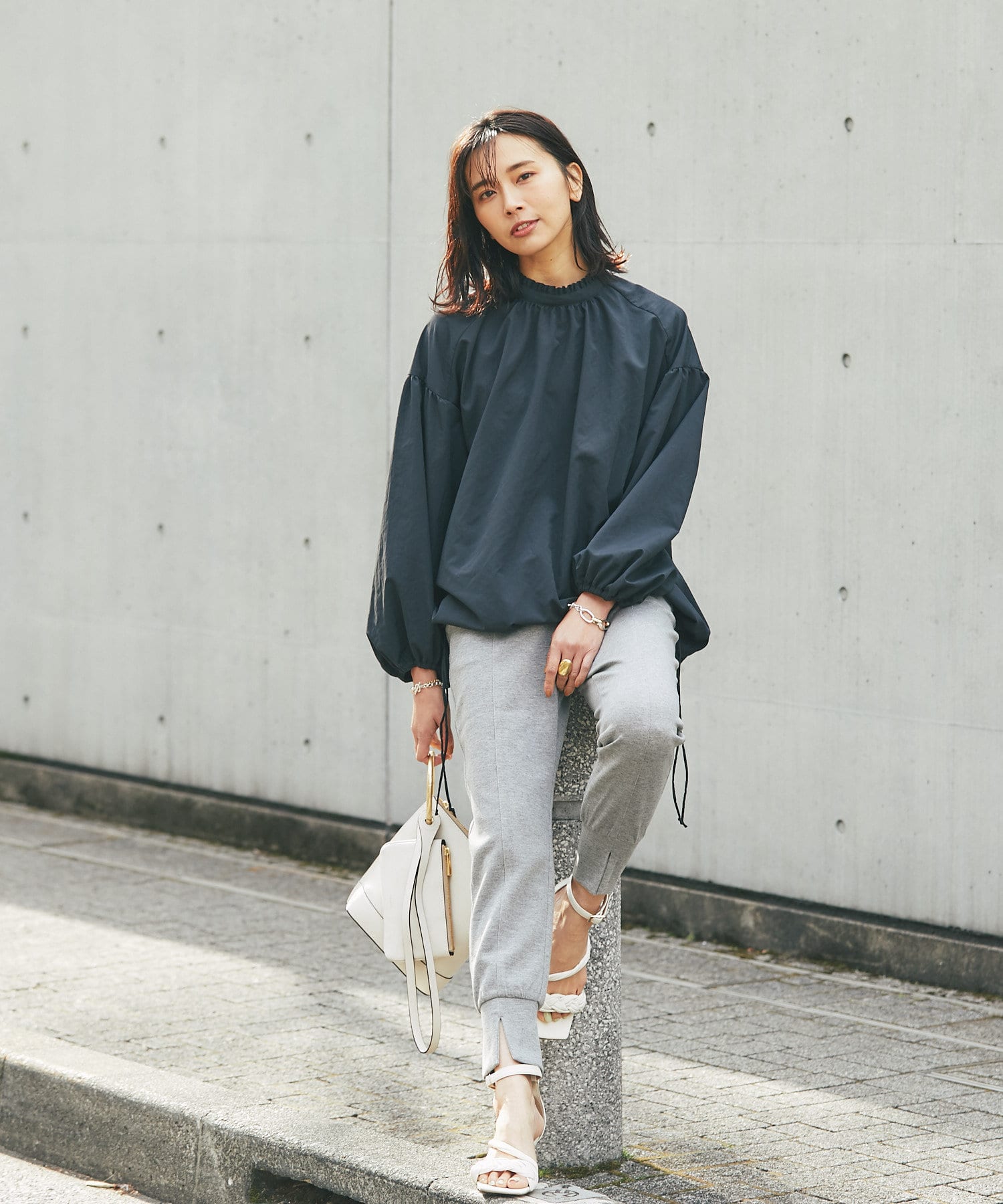 きれい見えするバッグなので、大人カジュアルスタイルにおすすめです。