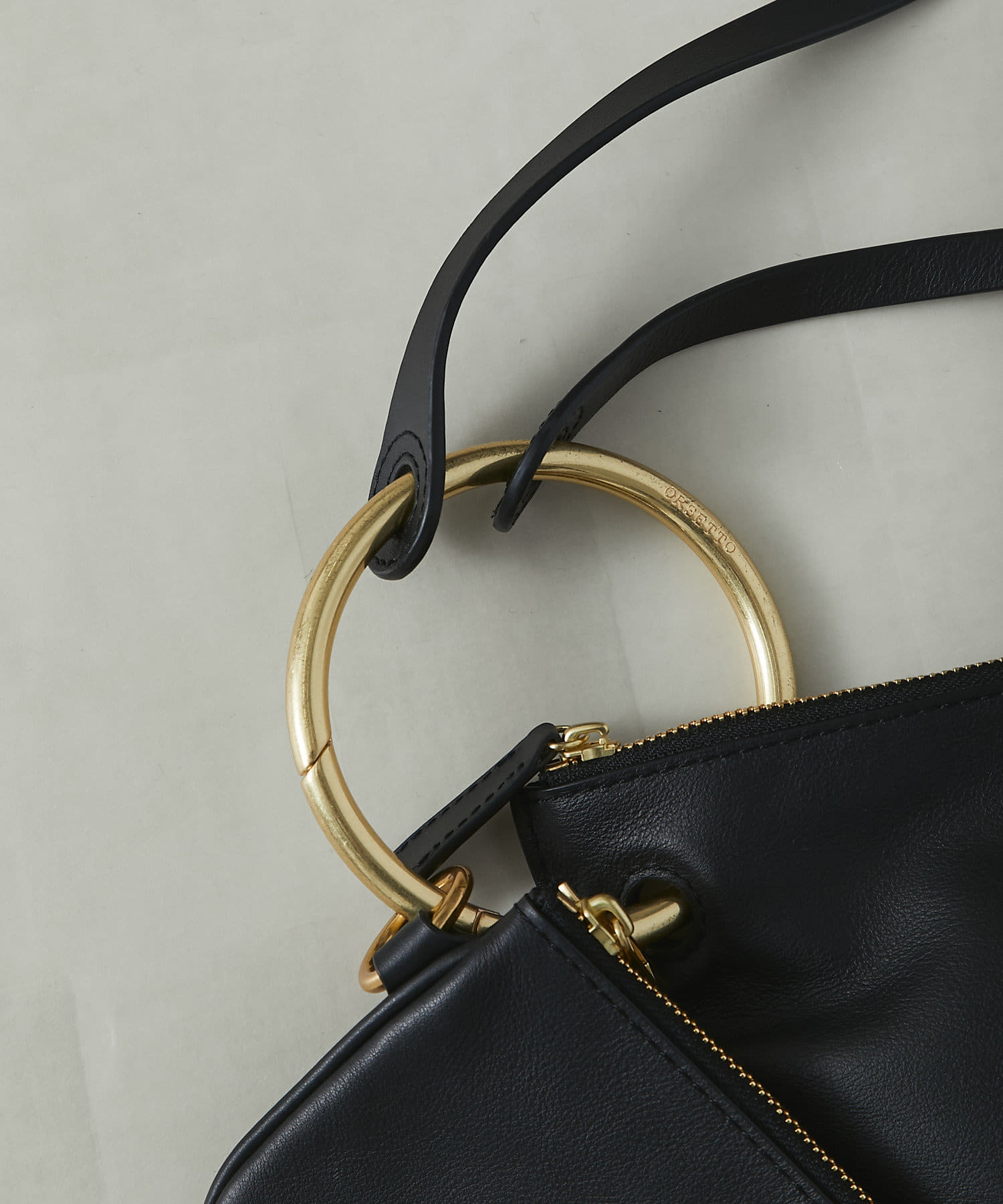 持ち手のゴールドリングがアクセントになって華やかに演出してくれます。