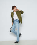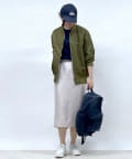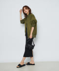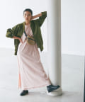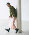 パンツスタイルはもちろんレディなスカートなど、フェミニンな着こなしにスパイスを効かせ、テイストをミックスしたスタイルがが今っぽくおススメです。カラーも落ち着いたカーキなため、シンプルなTシャツとデニム合わせでも品と趣のある大人のカジュアルコーデに仕上がります。