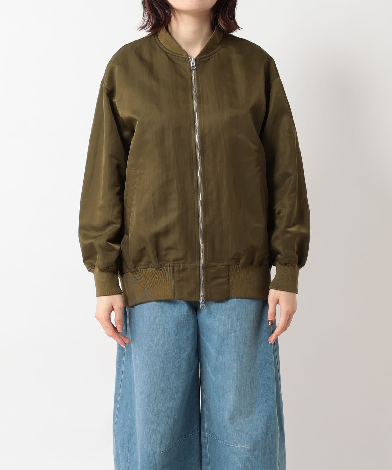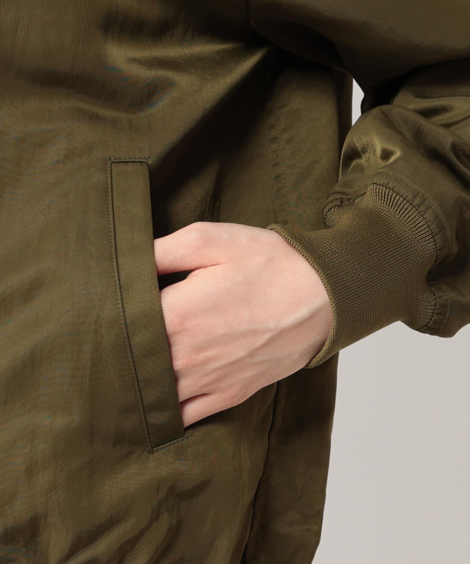 フライトジャケットにインスパイアされたブルゾンは、丸みのあるバックコクーンフォルムにアレンジし、洗練された大人のカジュアルテイストに仕上げています。ドロップショルダーで抜け感のあるサイズ感と絶妙な着丈はバランスが取りやすく、ボトムスを選ばずコーディネートしていただけます。上品な光沢感で肉厚のナイロンタフタにヴィンテージ加工を施した素材を使用しているため、サラリと羽織るだけでこなれ感た印象に。今季活躍すること間違いなしのアイテムです。