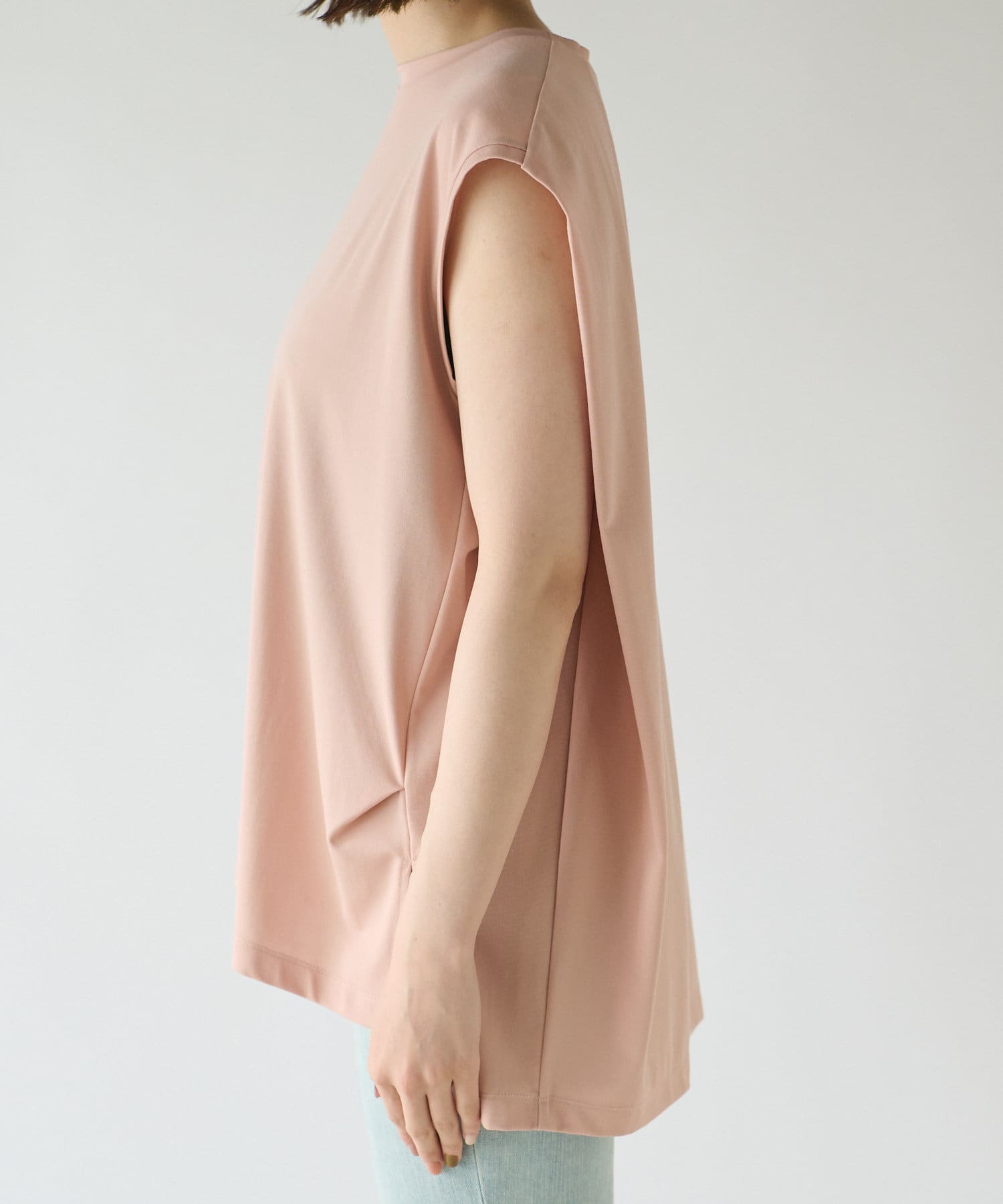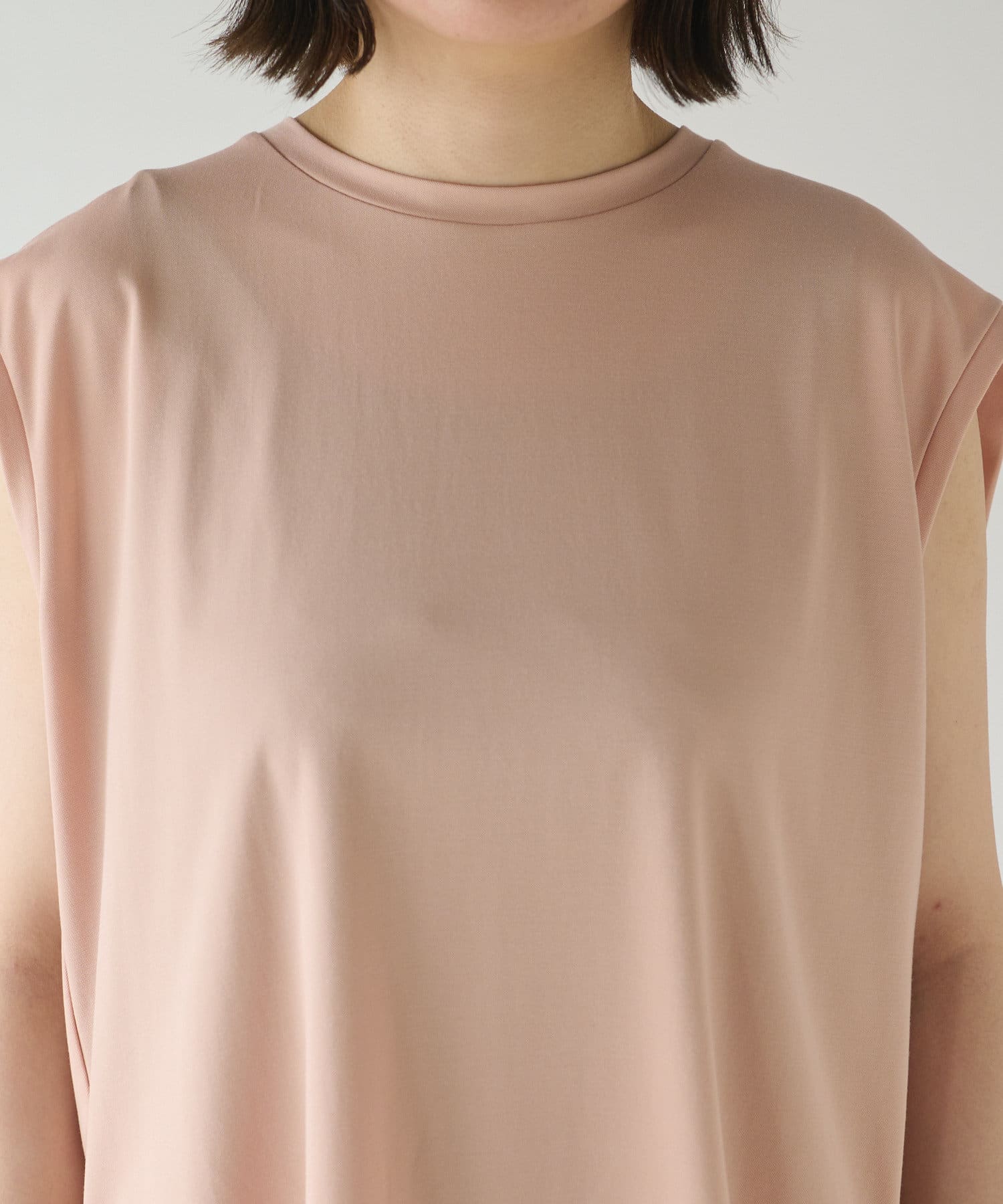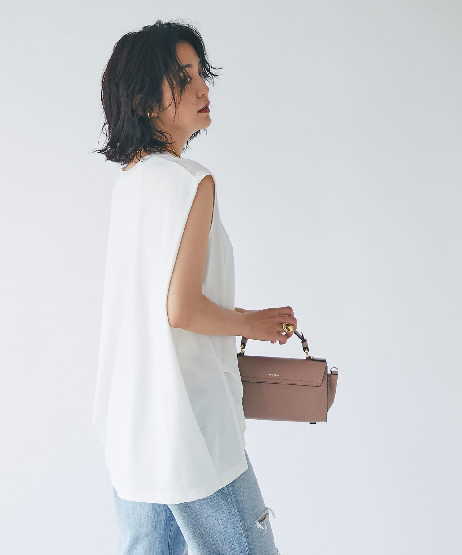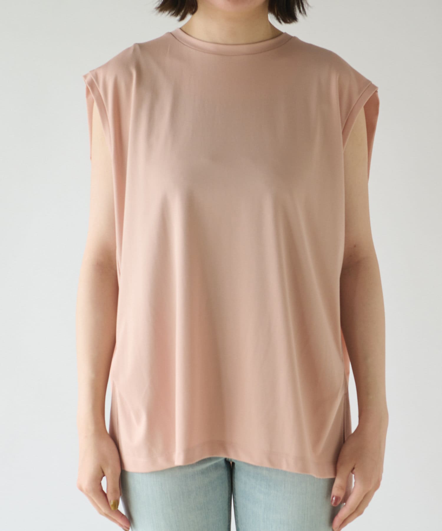 ノースリーブながらカジュアルになり過ぎず1枚でシンプルに着ても決まります。
